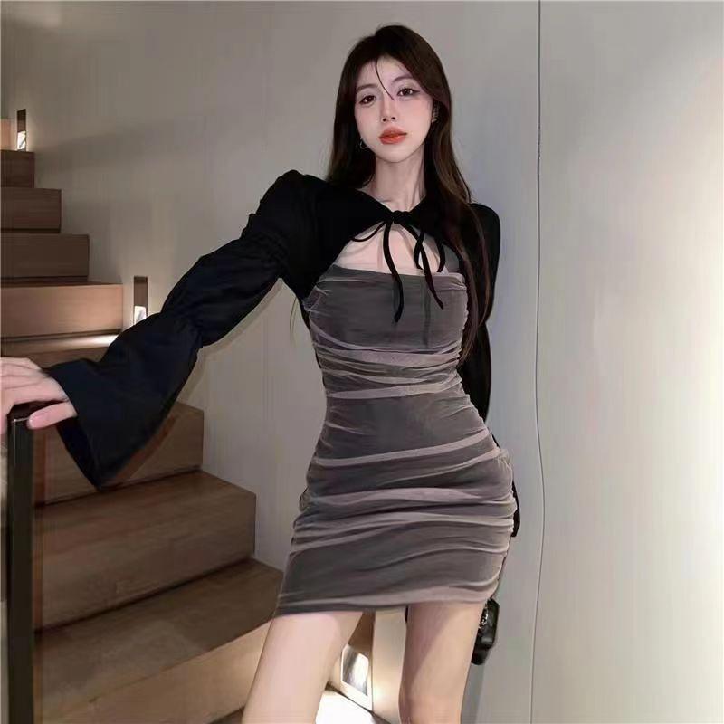 Falda Sexy Puro Deseo Dulce 2025 Primavera Nuevo Temperamento Malla Slim Fondo Cadera Vestido Ropa de Mujer