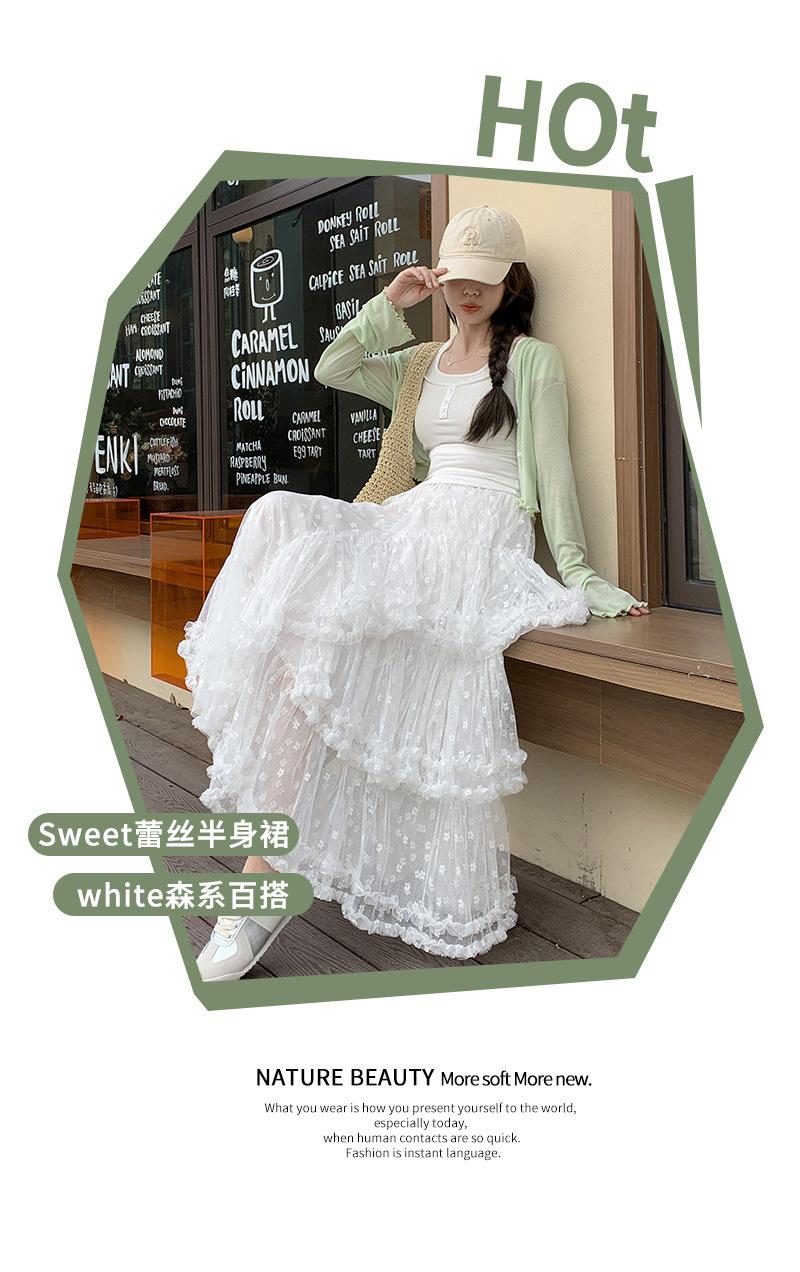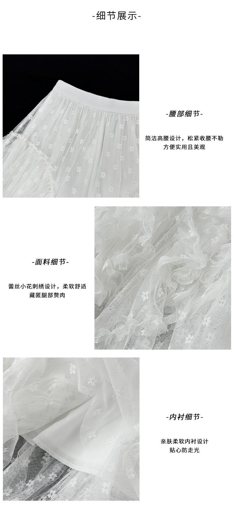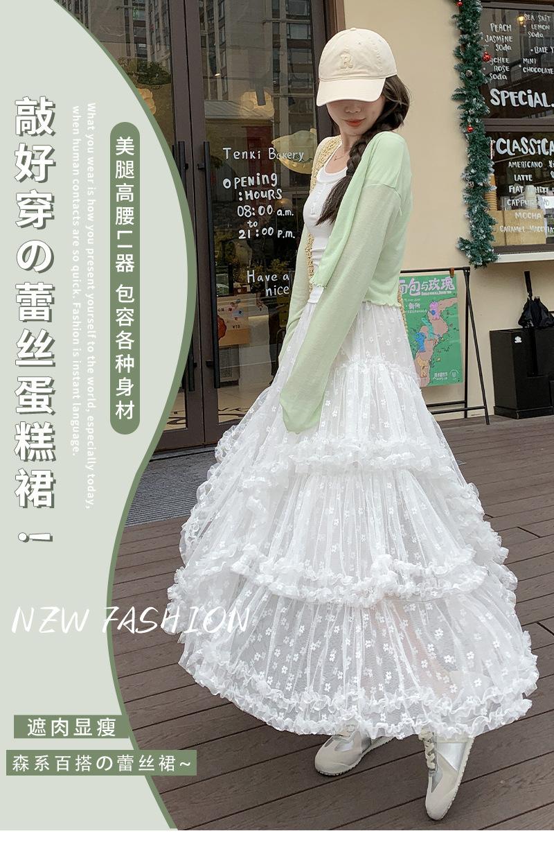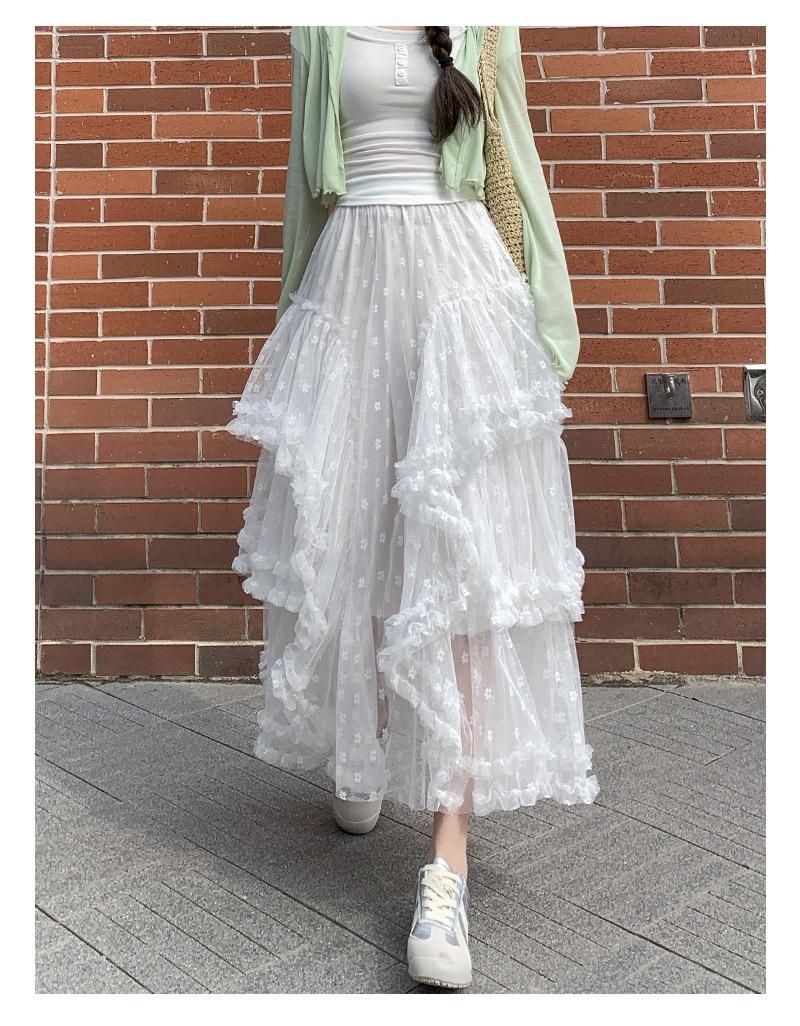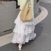 Primavera y verano nueva falda de gasa falda de gasa blanca para mujer midi línea A cintura alta delgada grande abullonada falda pastel