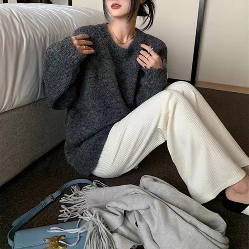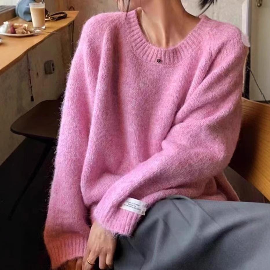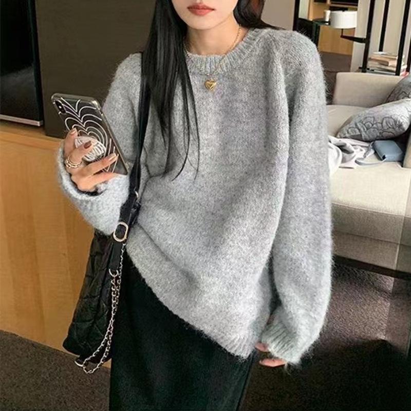 Suéter de punto holgado con cuello redondo estilo perezoso para mujer, suéter de otoño e invierno, nueva moda coreana, suéter de punto combinable.
