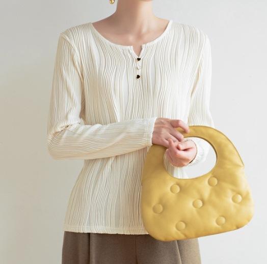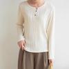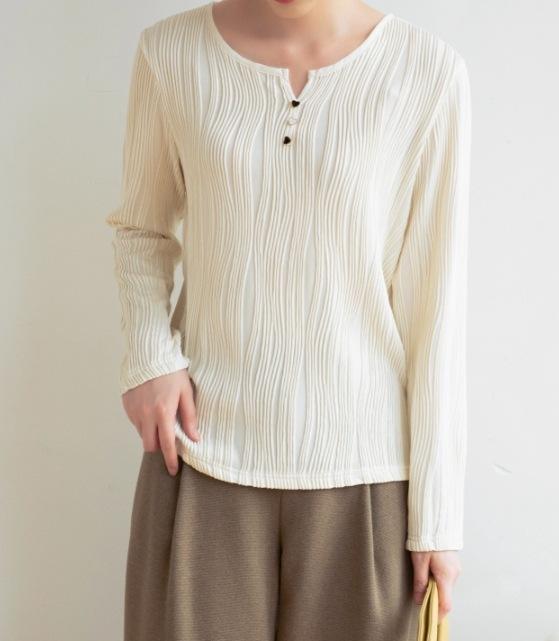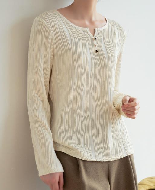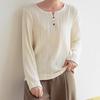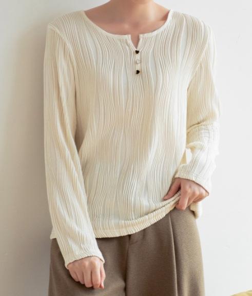 Camiseta de manga larga con cuello redondo y botones para mujer, nueva colección otoño 2025, temperamento para ir al trabajo, sencilla y texturizada