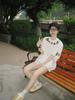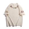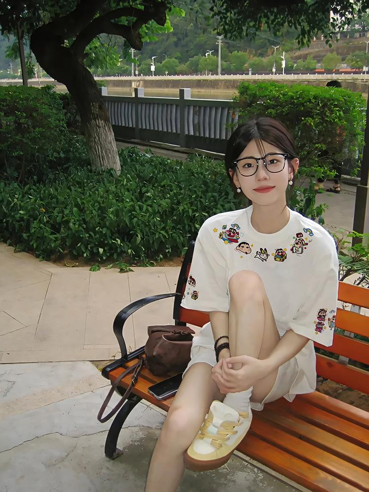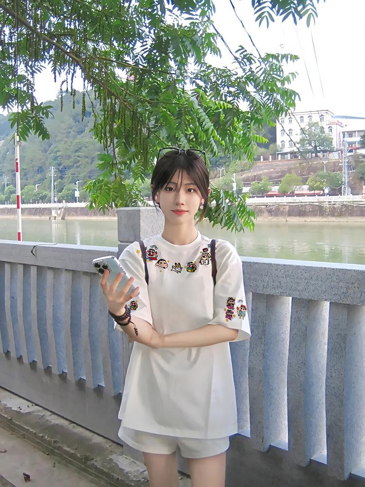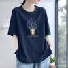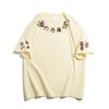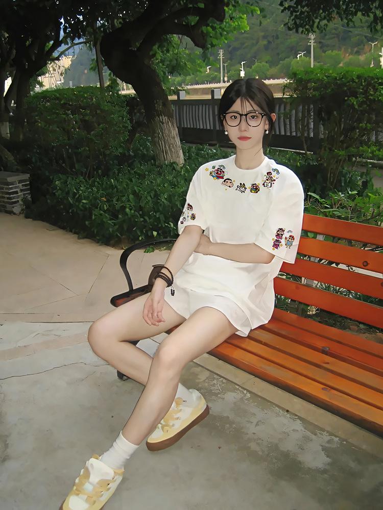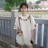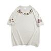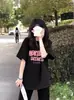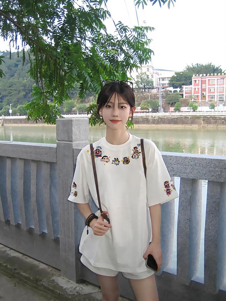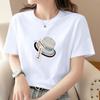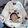 Camiseta holgada de manga corta con estampado de dibujos animados para mujer, verano 2025, de algodón blanco, con hombros descubiertos y media manga.