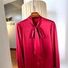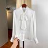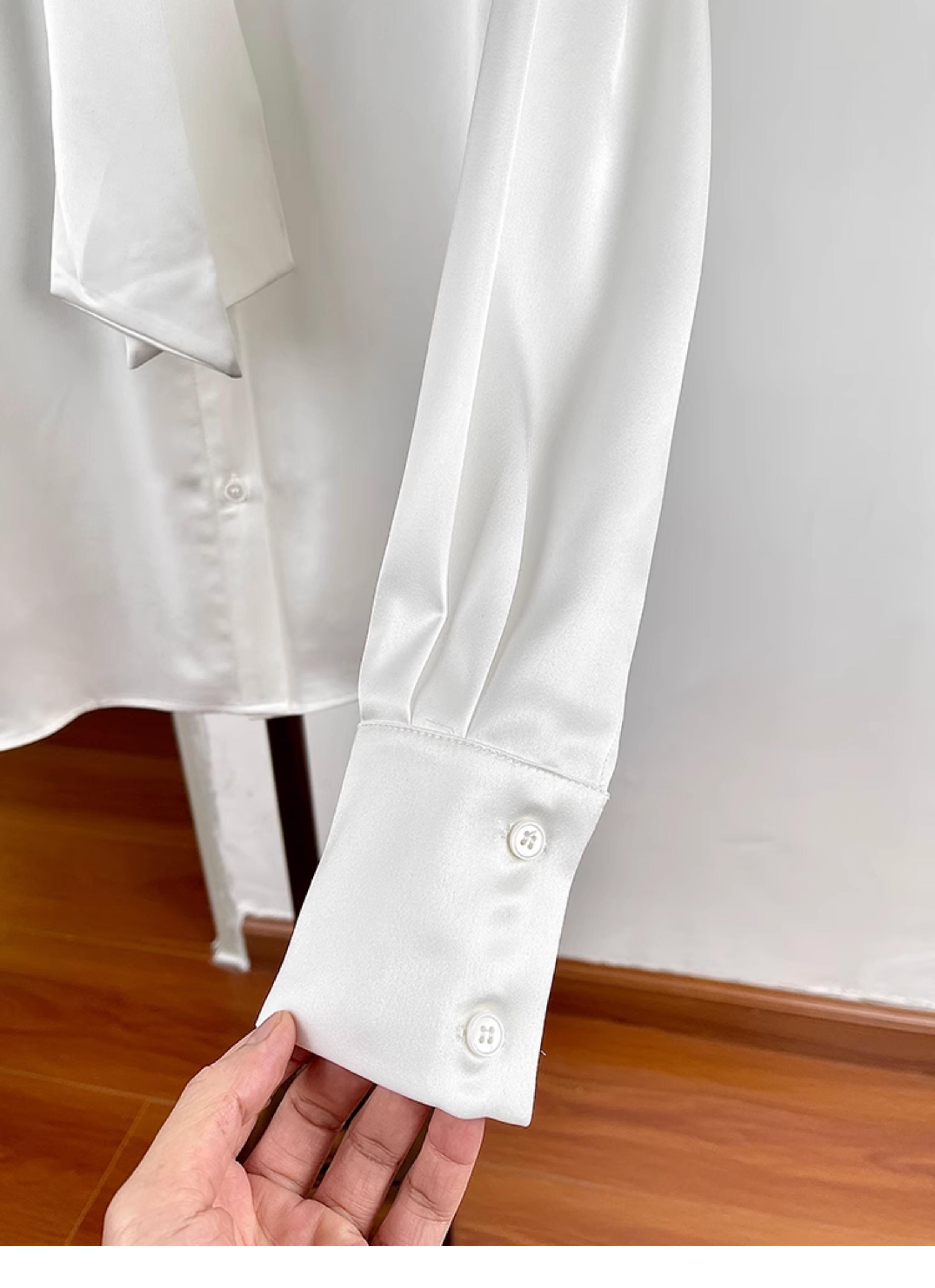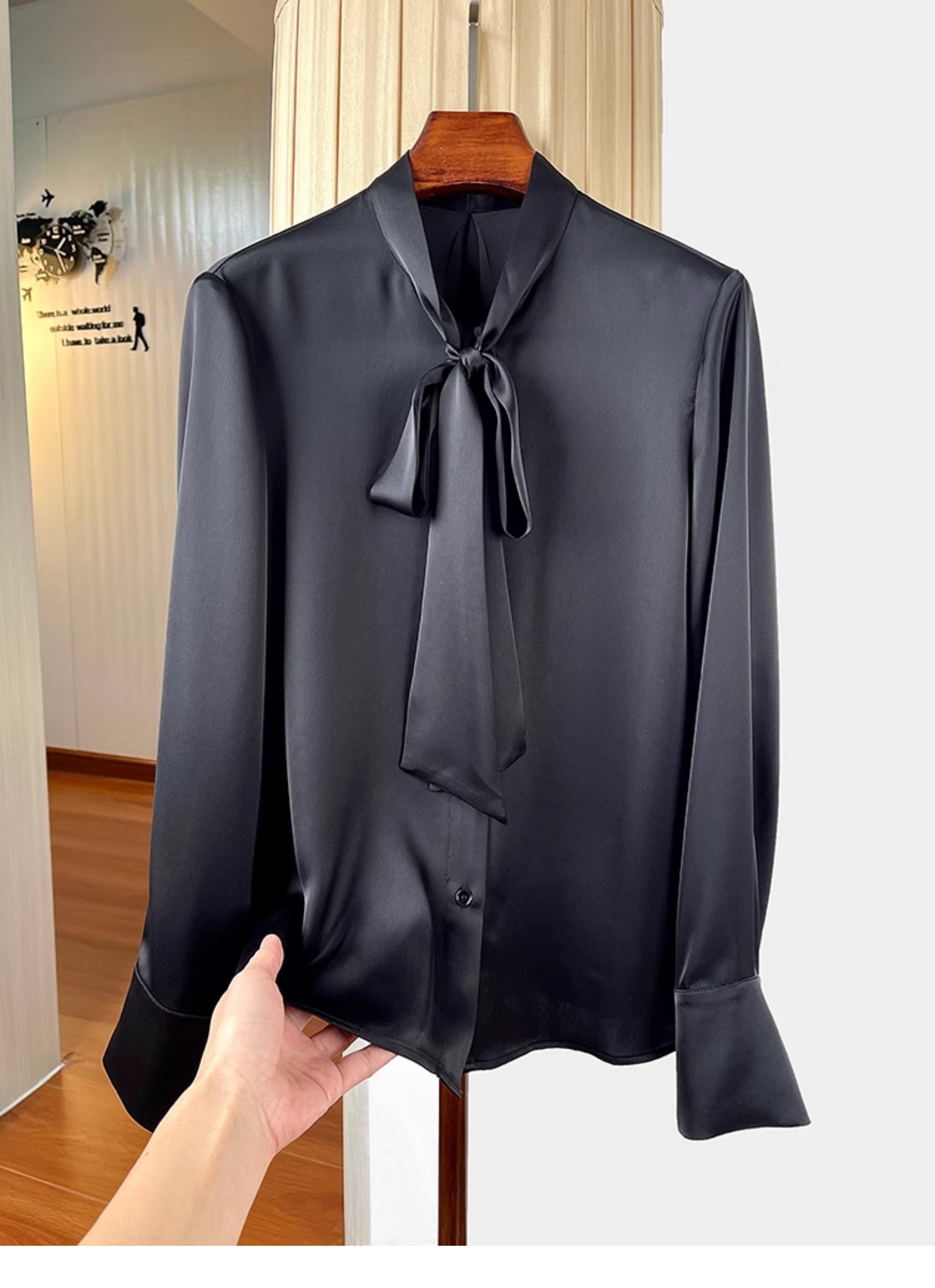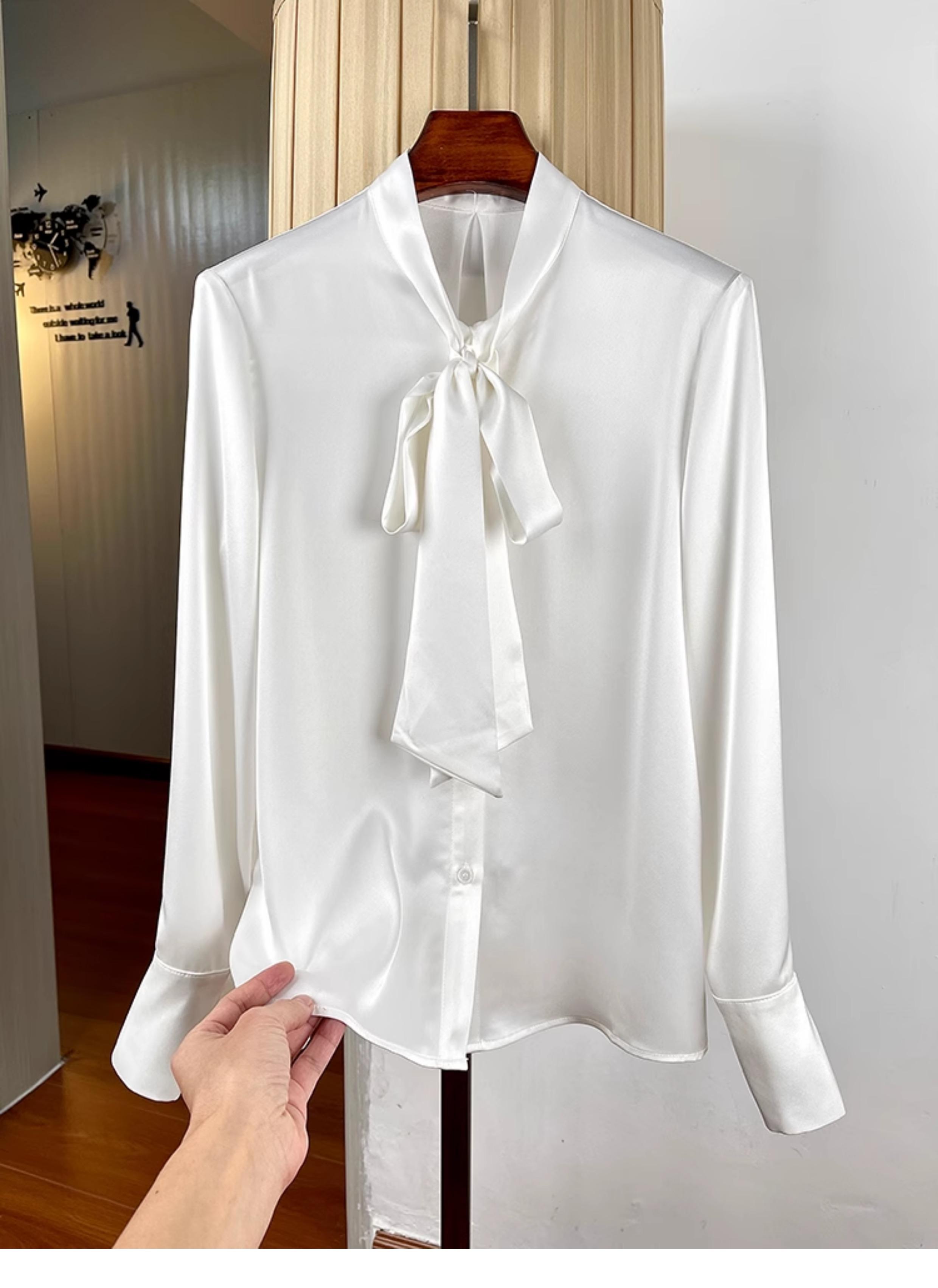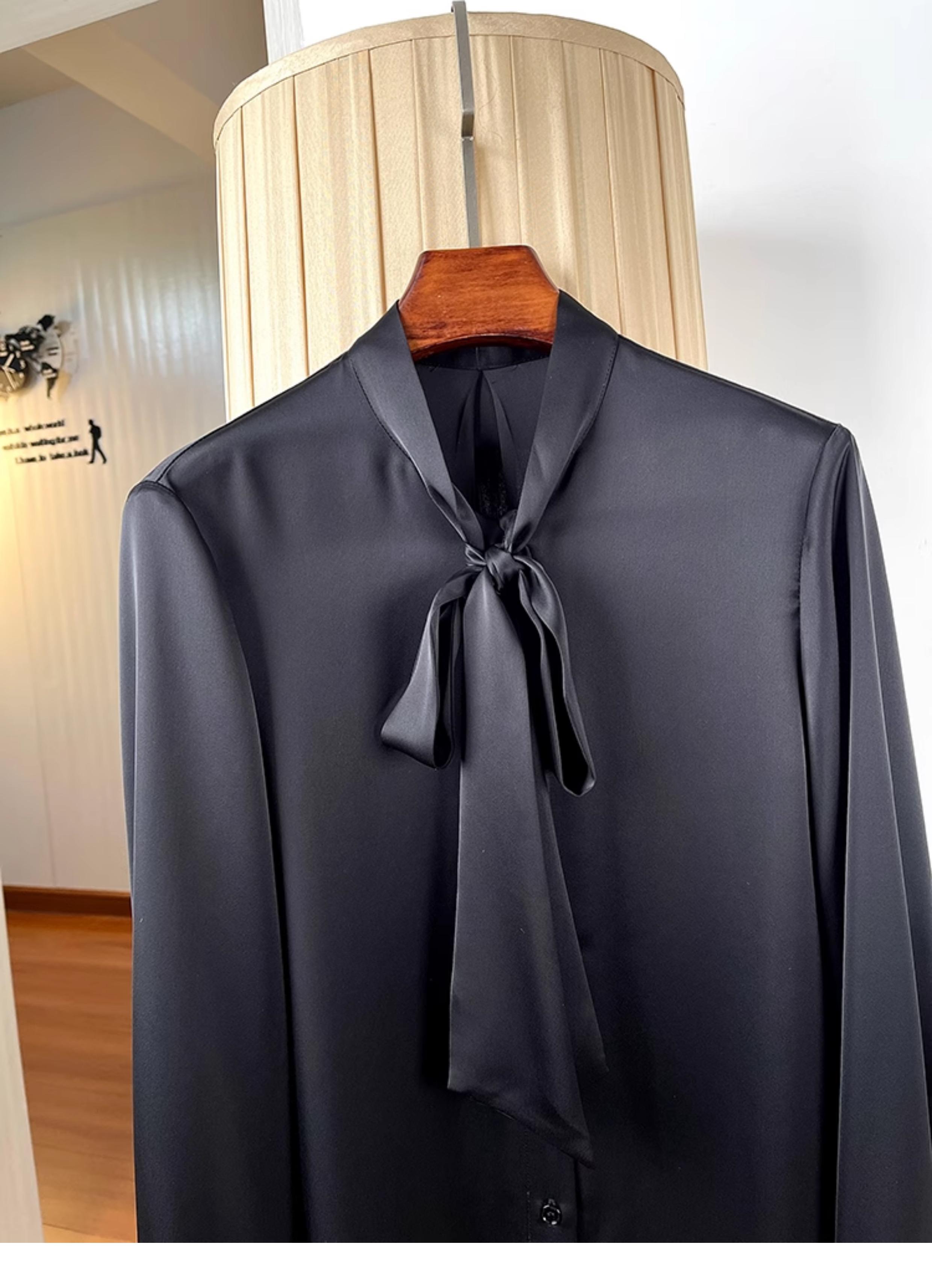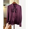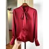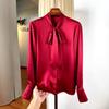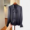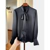 2025 Primavera y Verano Nuevo Elegante Suelto Seda Acetato Lazo Cinta Manga Larga Camisa Top Mujer