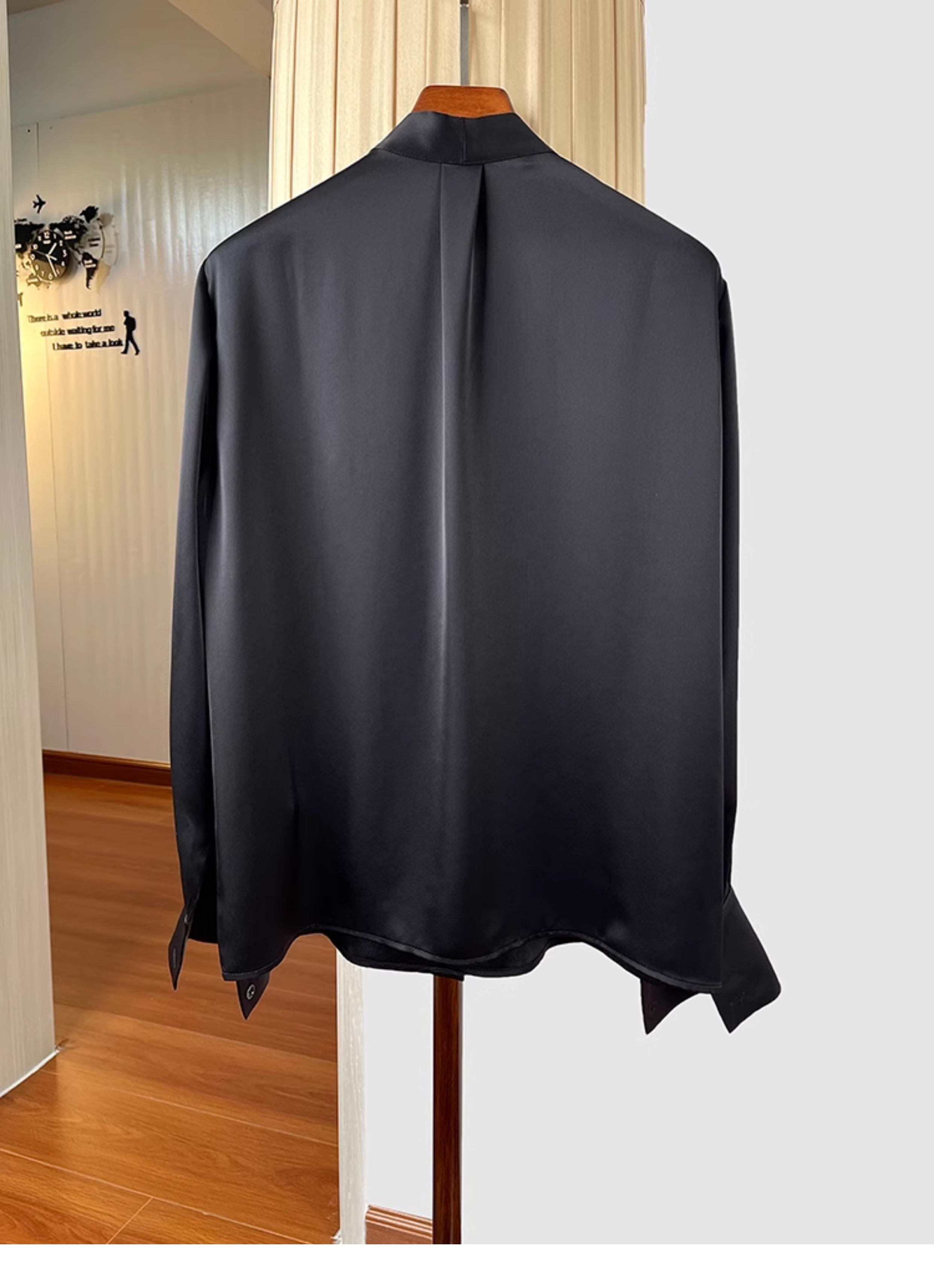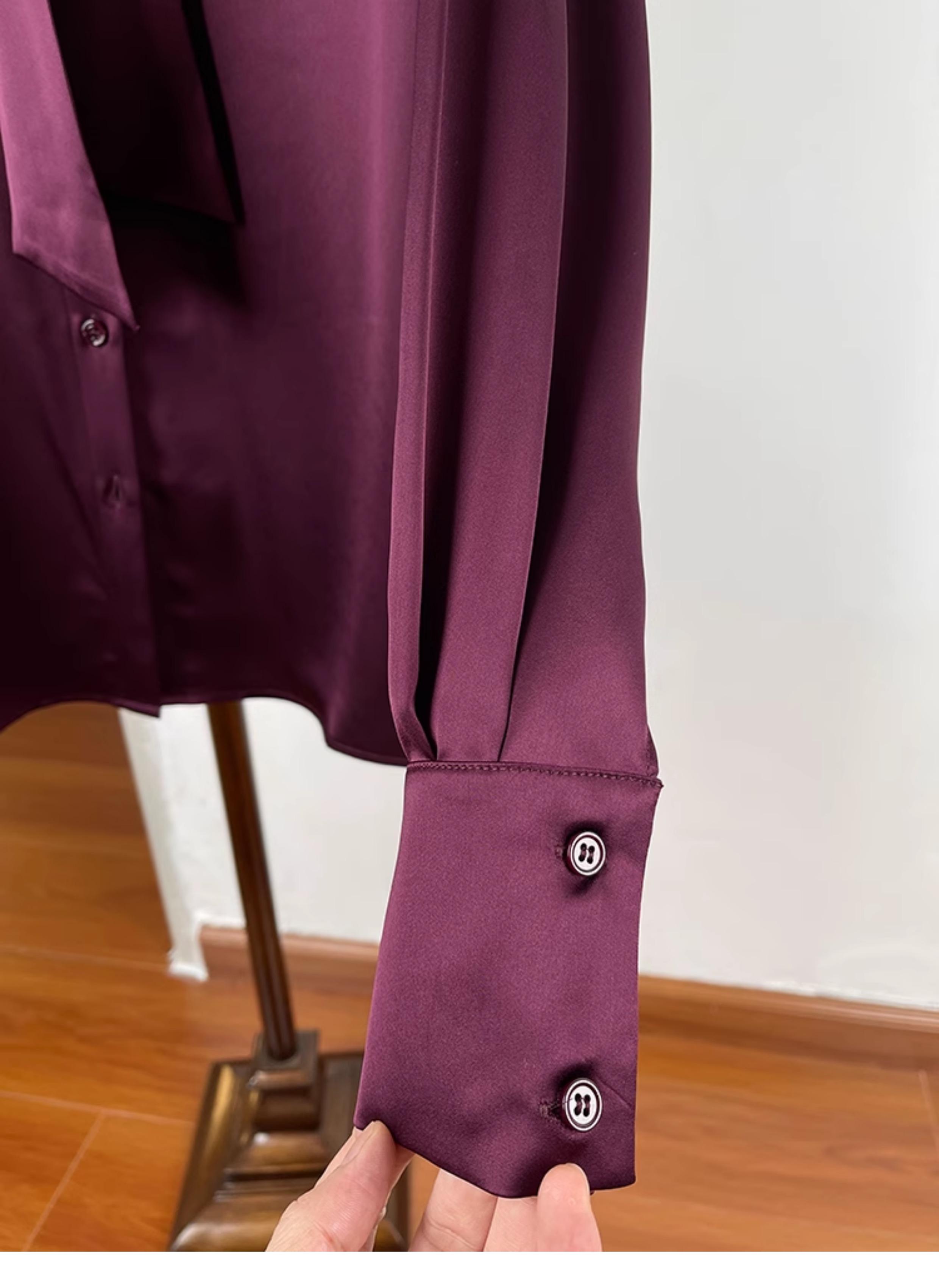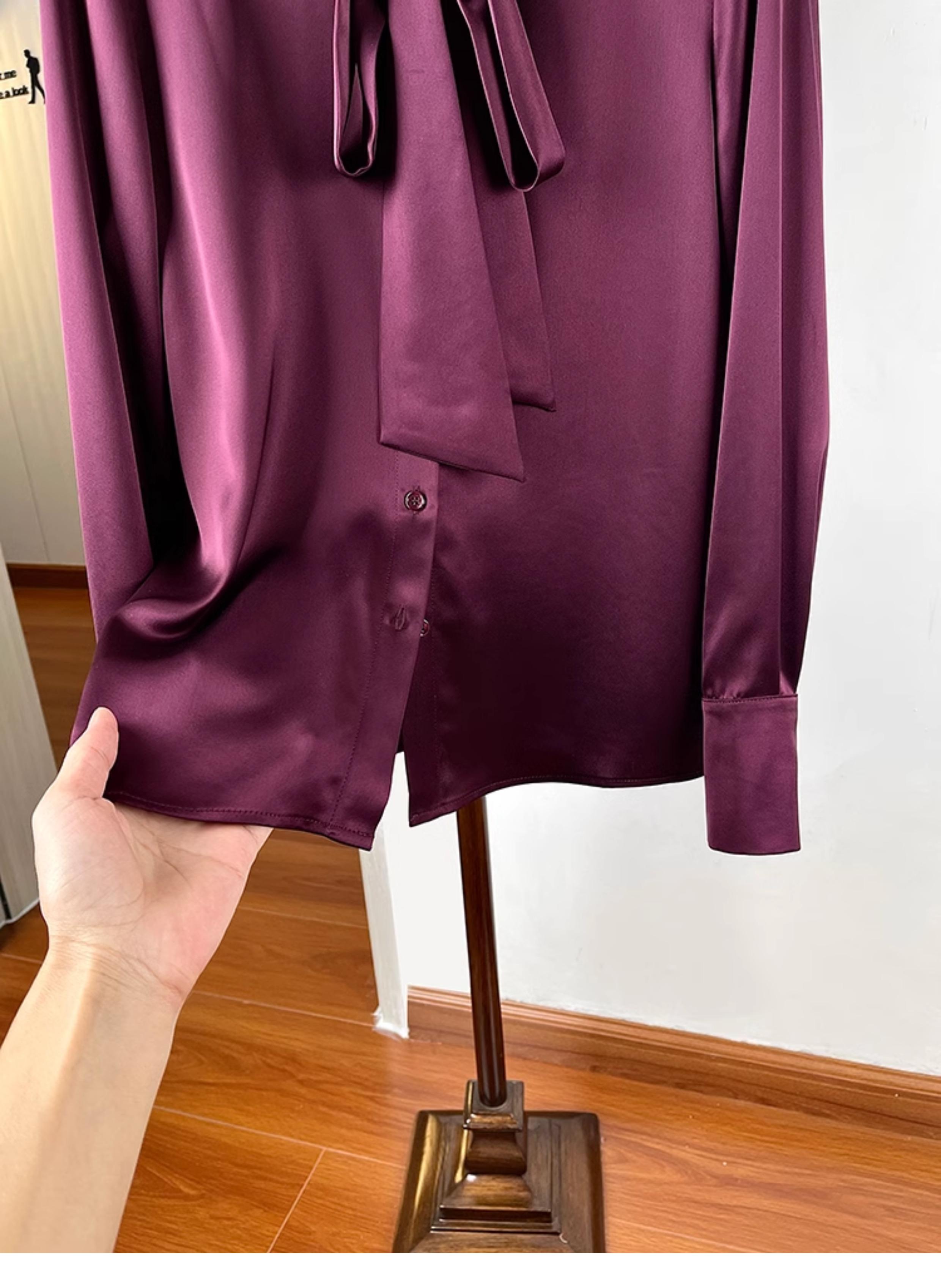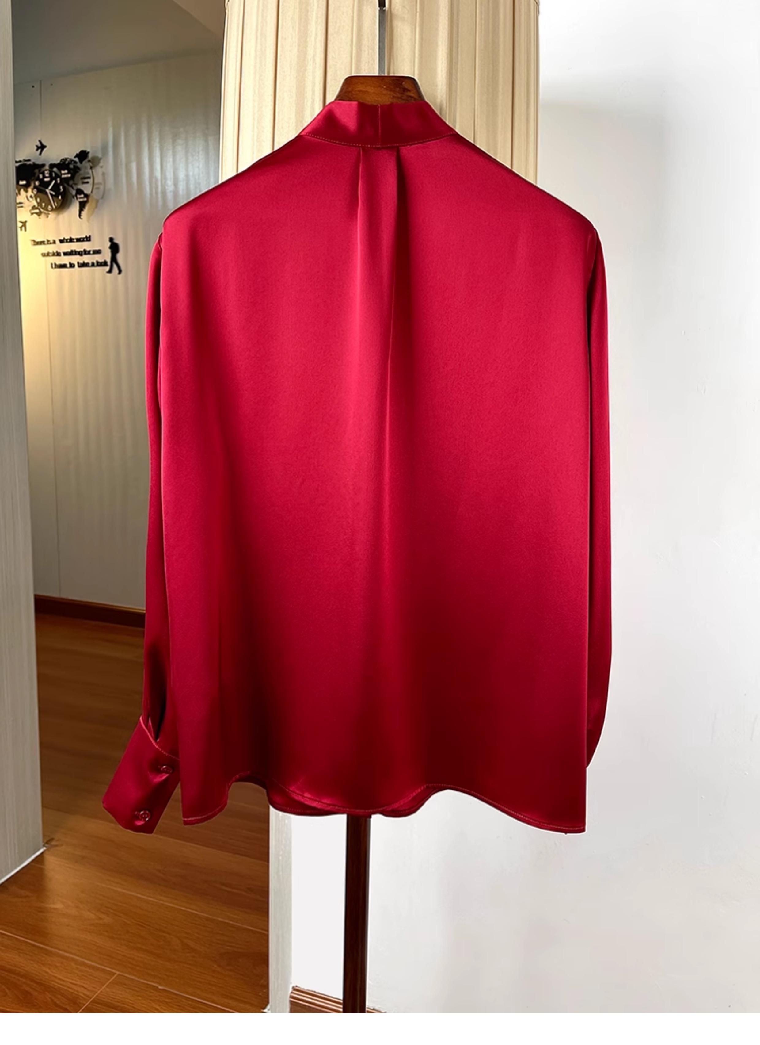 2025 Primavera y Verano Nuevo Elegante Suelto Seda Acetato Lazo Cinta Manga Larga Camisa Top Mujer