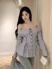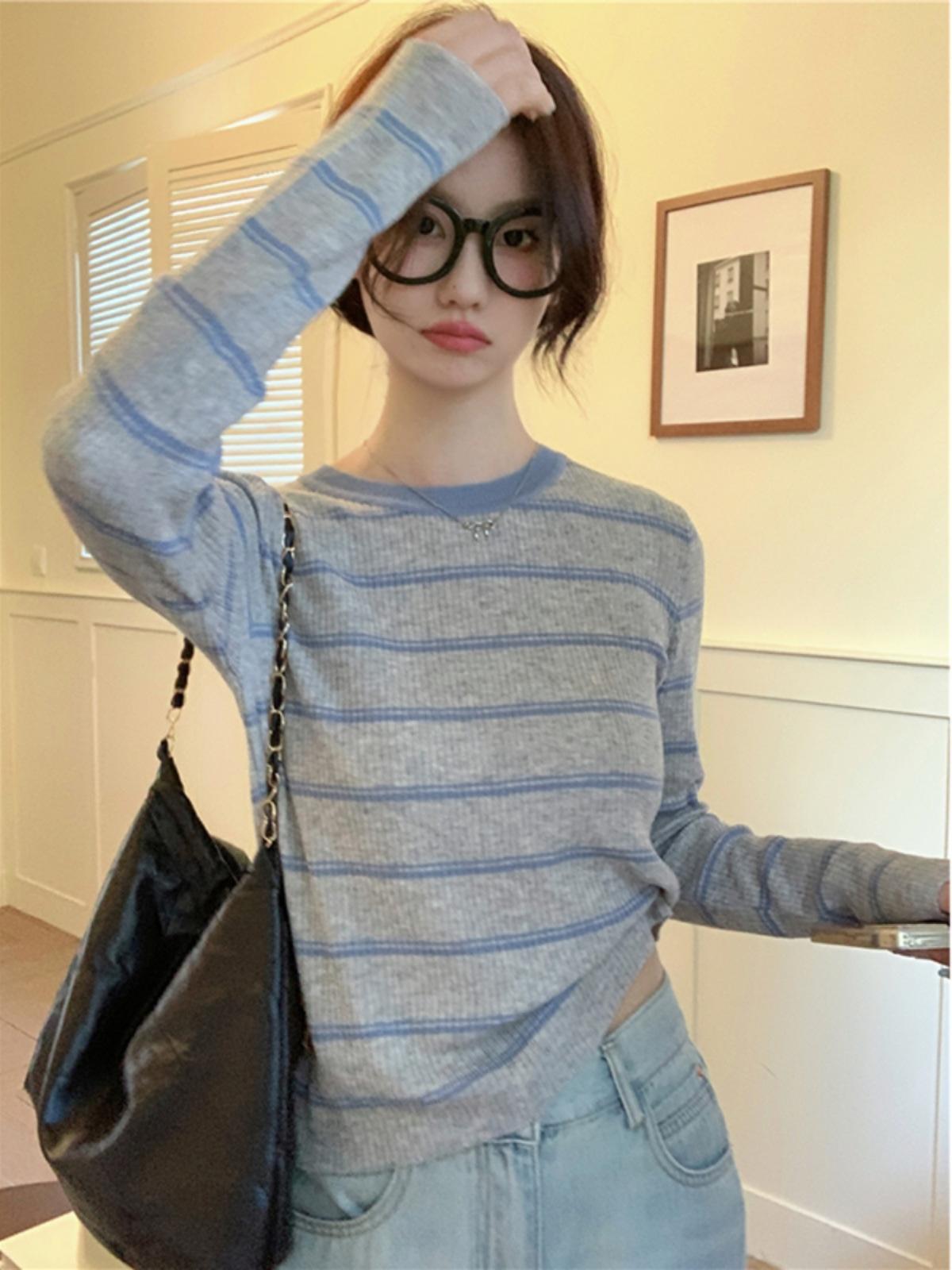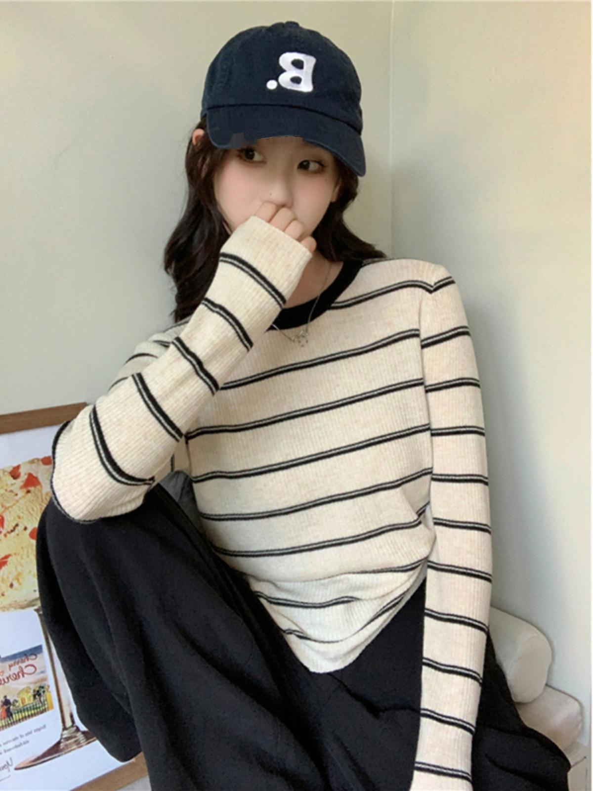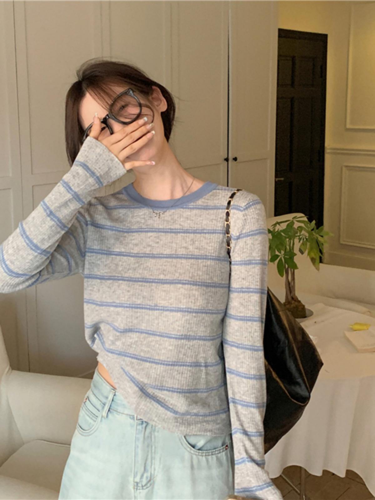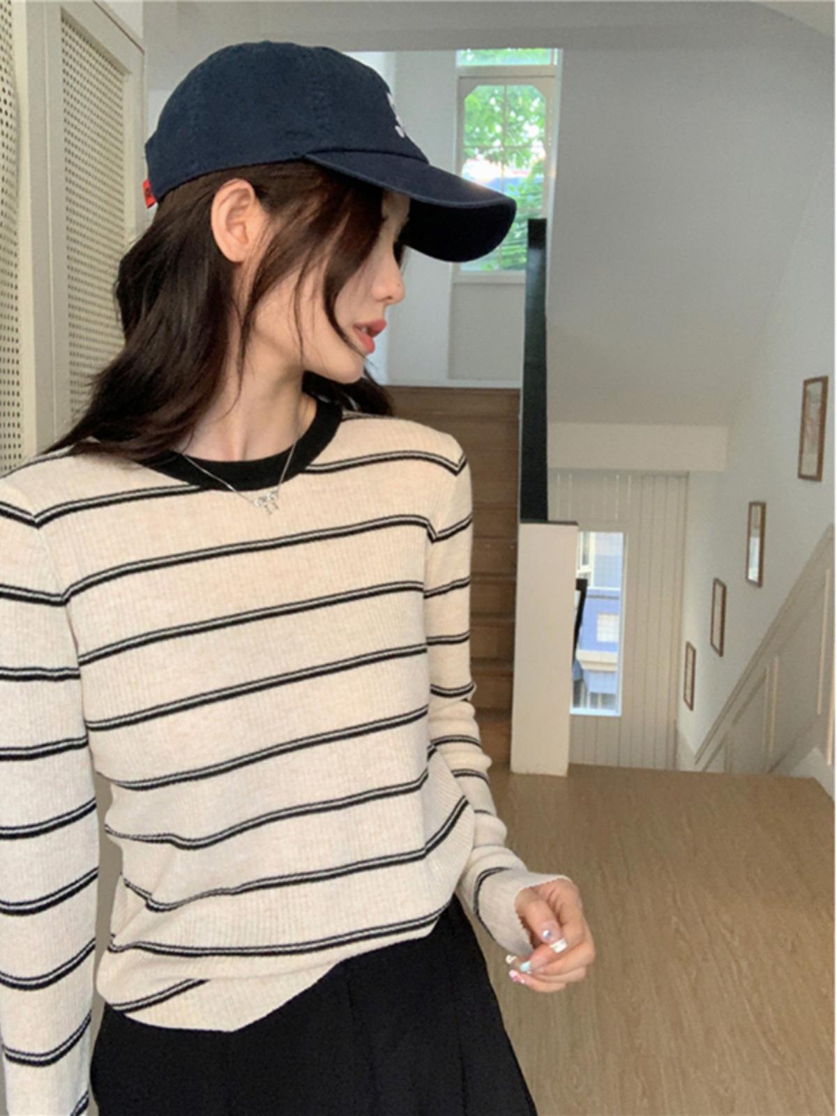 Camiseta ajustada con cuello redondo y costuras de rayas de colores contrastantes, estilo Spice Girls Pure Desire, para principios de otoño 2024