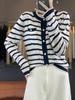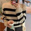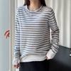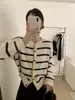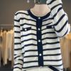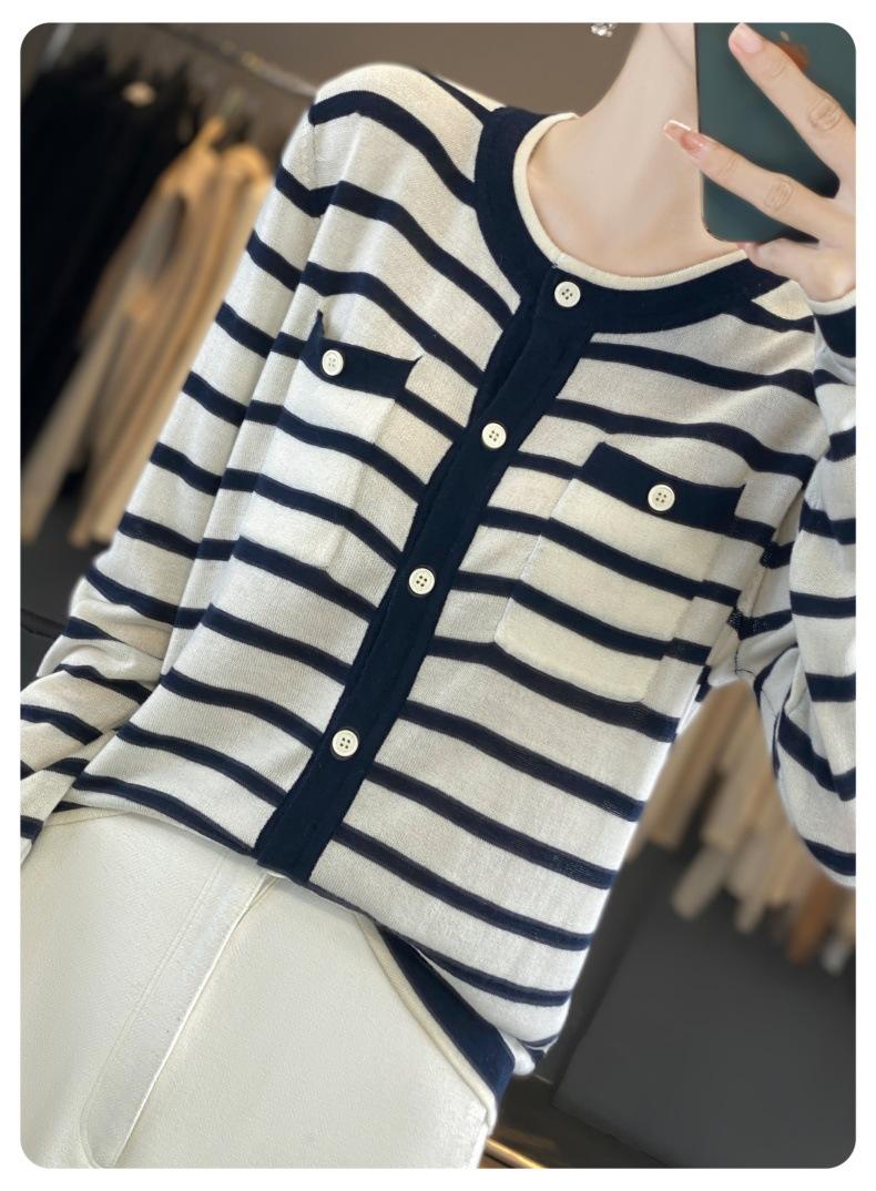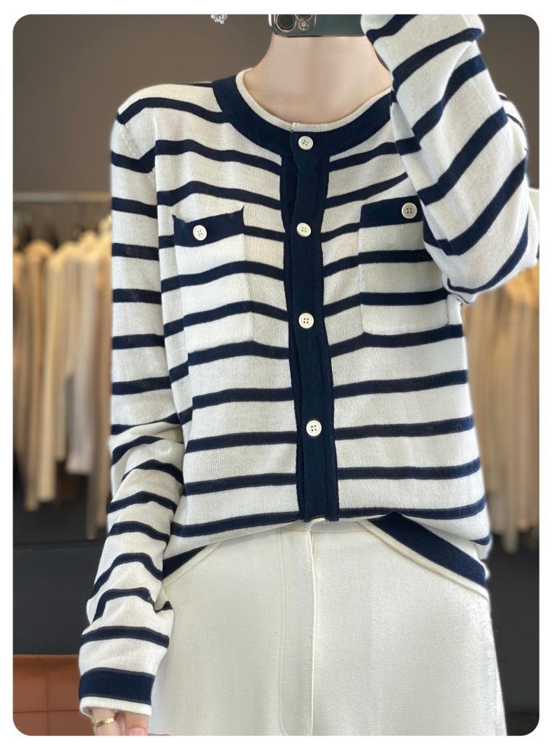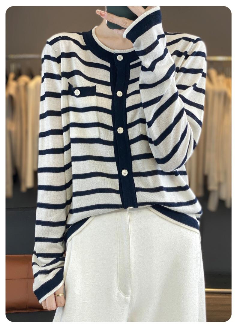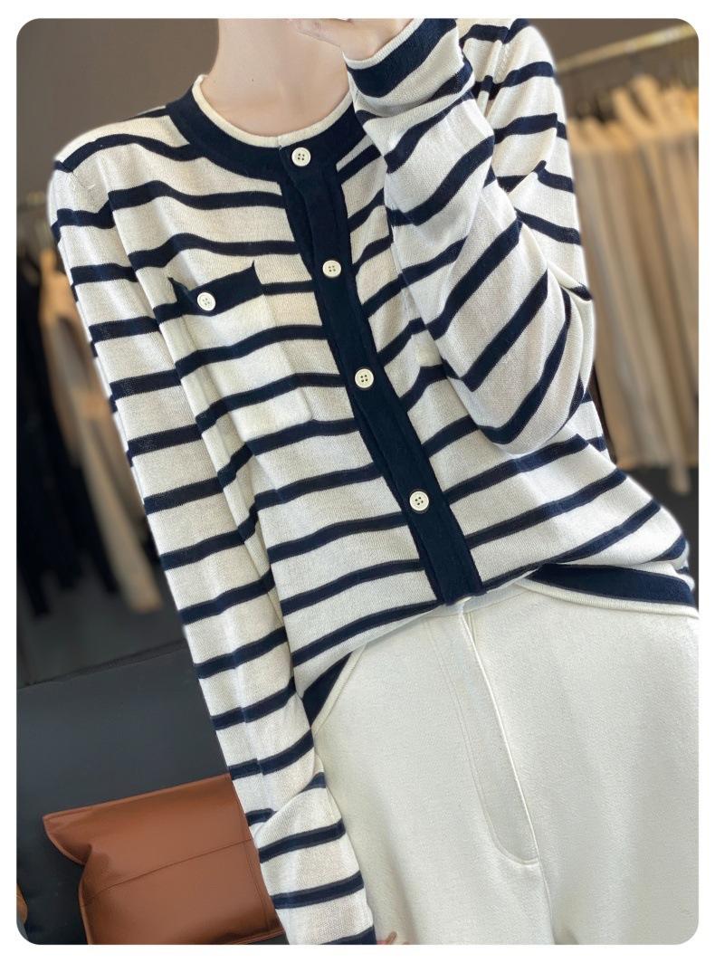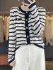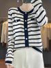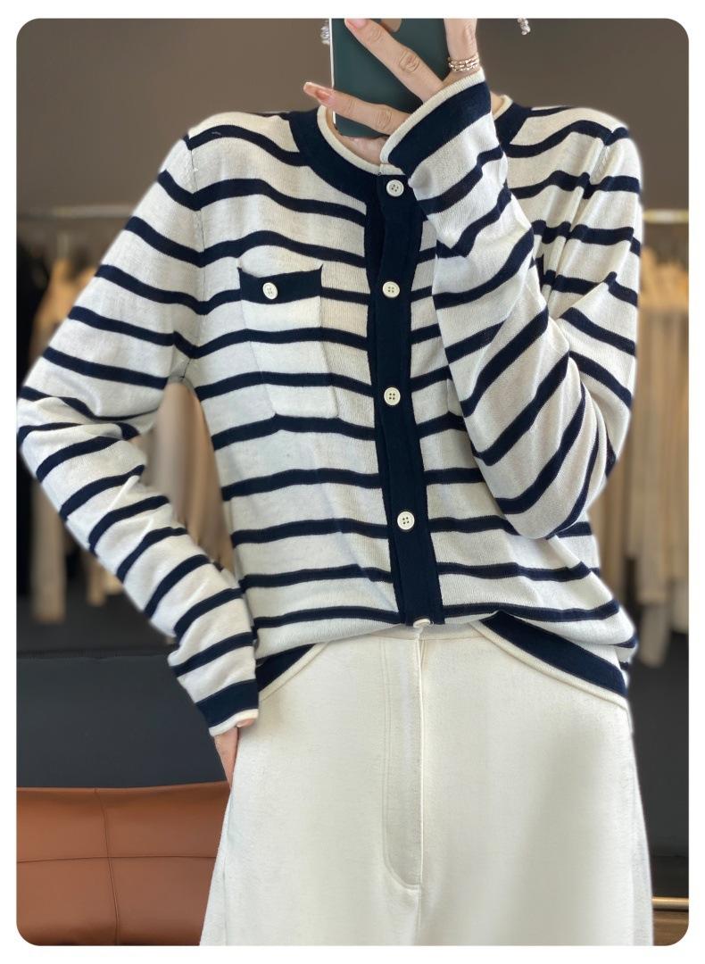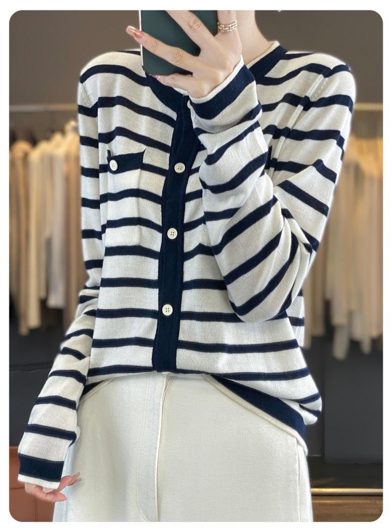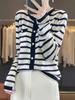 Suéter de punto para mujer, cárdigan de primavera y otoño, sencillo, de lana, clásico, informal, a rayas, cuello redondo, nuevo, color en contraste, manga larga.