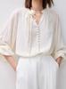 Camisa francesa de gasa blanca con botones para mujer, primavera y otoño de 2025, elegante y con diseño Sense.