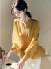 Camisa amarilla nueva primavera 2025, de alta calidad, ligera, de lujo, antiedad, estilo extranjero, ajustada, súper bonita, única y hermosa.