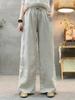 Pantalones Casuales de Lino para Mujer Primavera y Verano 2025 Moda Simple Versátil con Cordones Sueltos de Pierna Ancha Rectos DK601-1