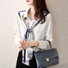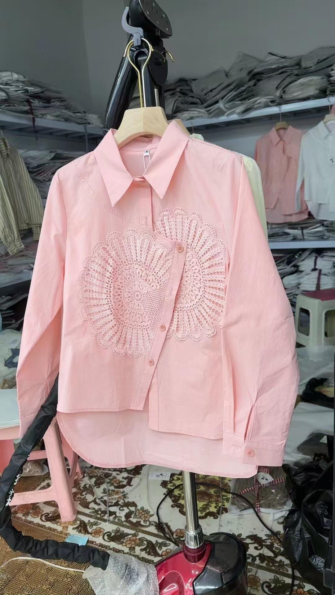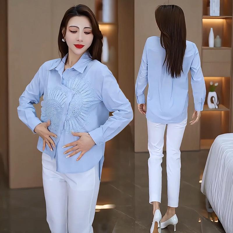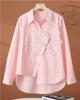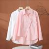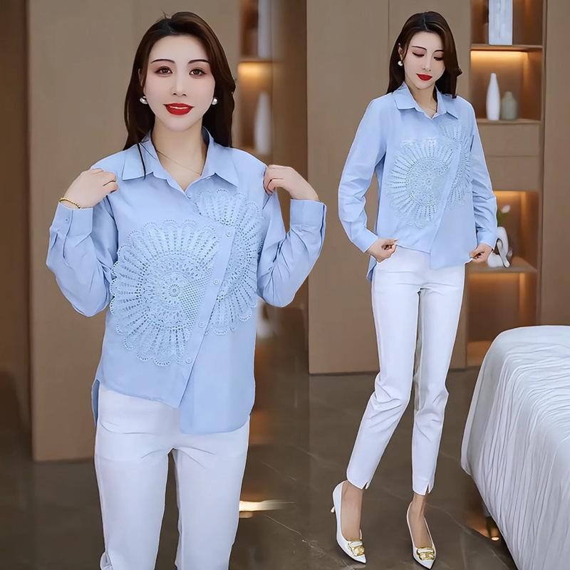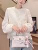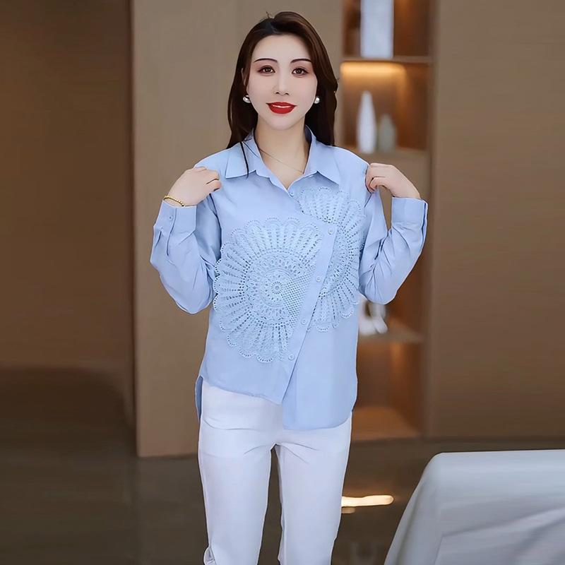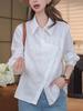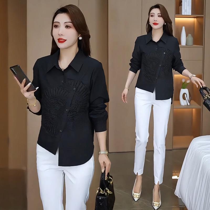Camisa blanca para mujer 2025, nuevo diseño, costuras de encaje, suelta, a la moda, reductora de edad, top apilado