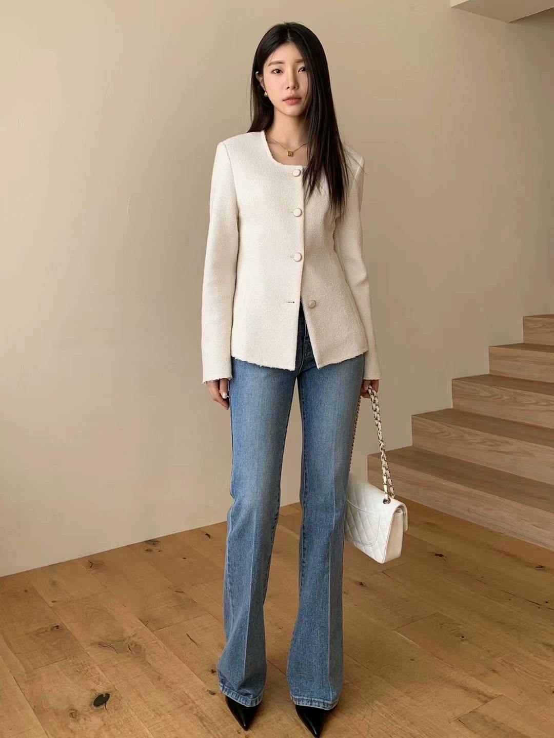Piernas delgadas y rectas,La parte superior del cuerpo es muy elegante.