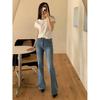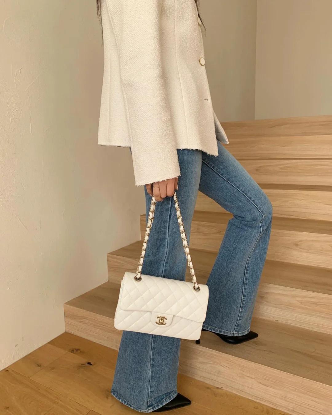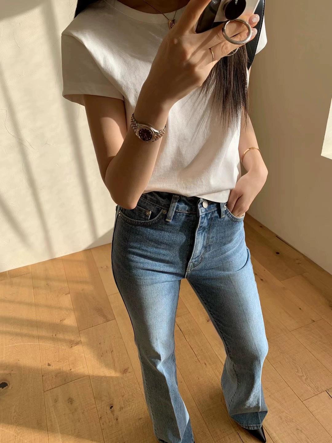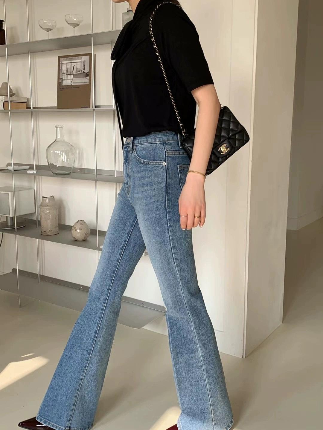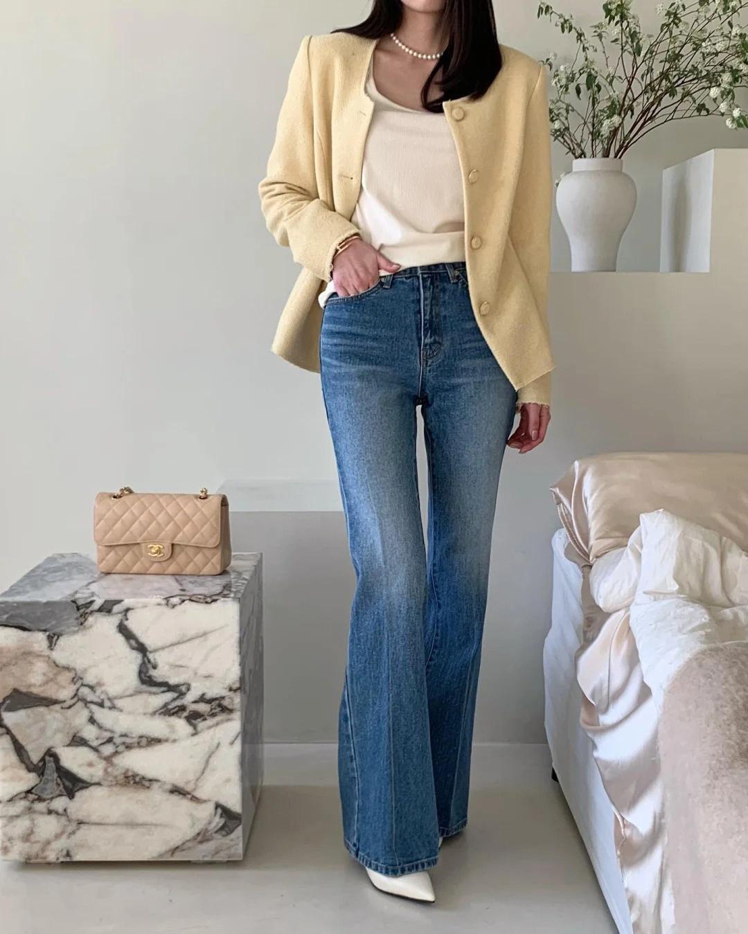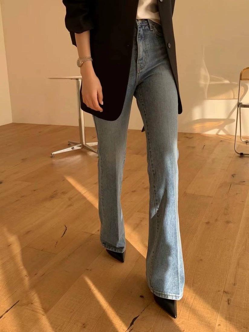 El diseño de pantalones acampanados modifica las líneas de las piernas.