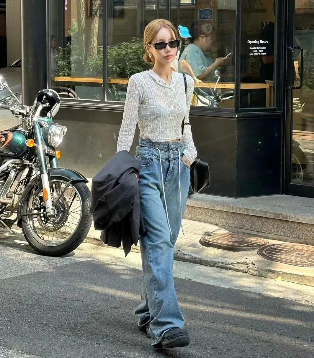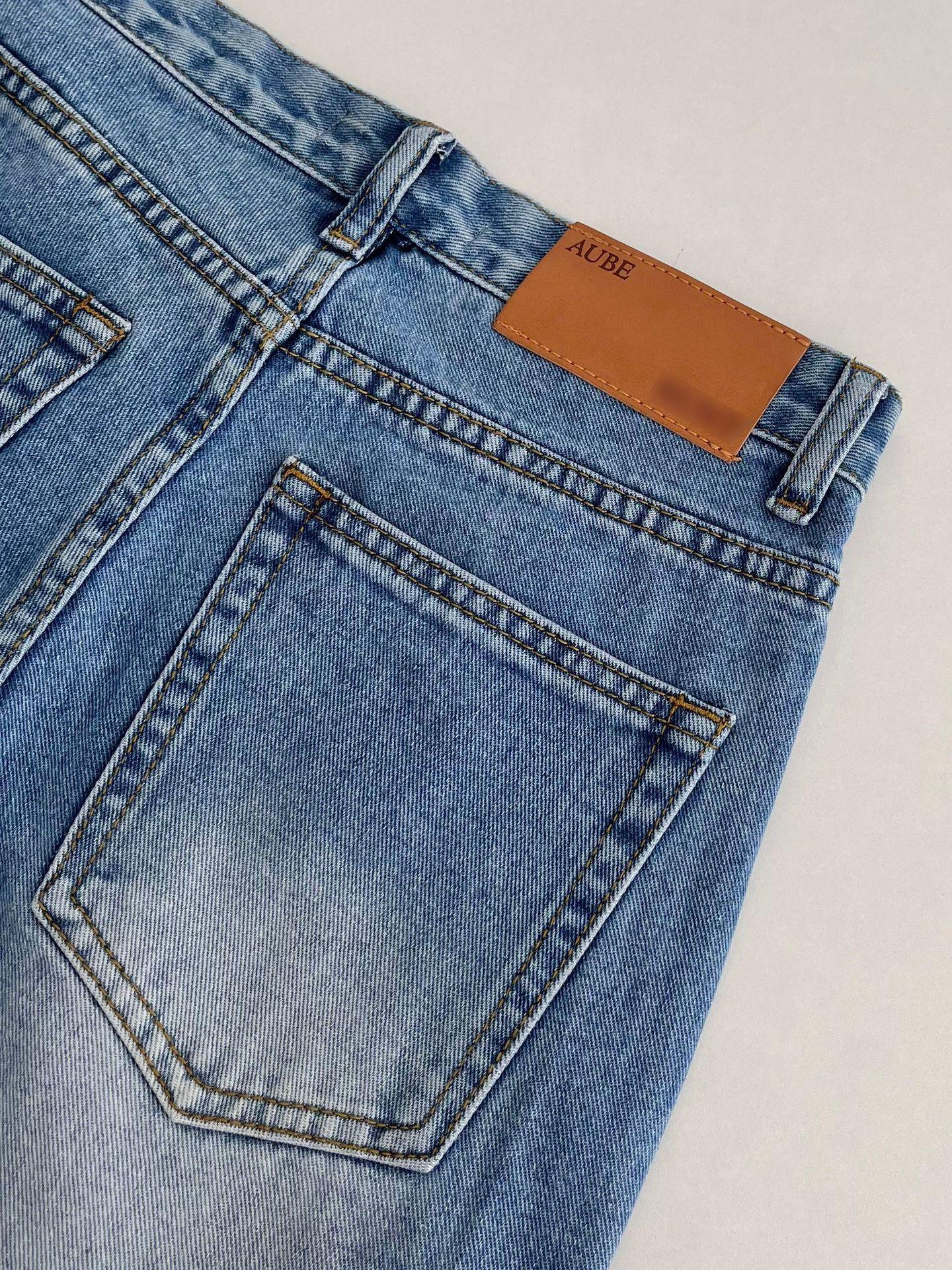El proceso de lavado + tratamiento de blanqueo del cuerpo del pantalón añade un toque retro.