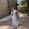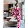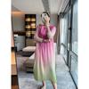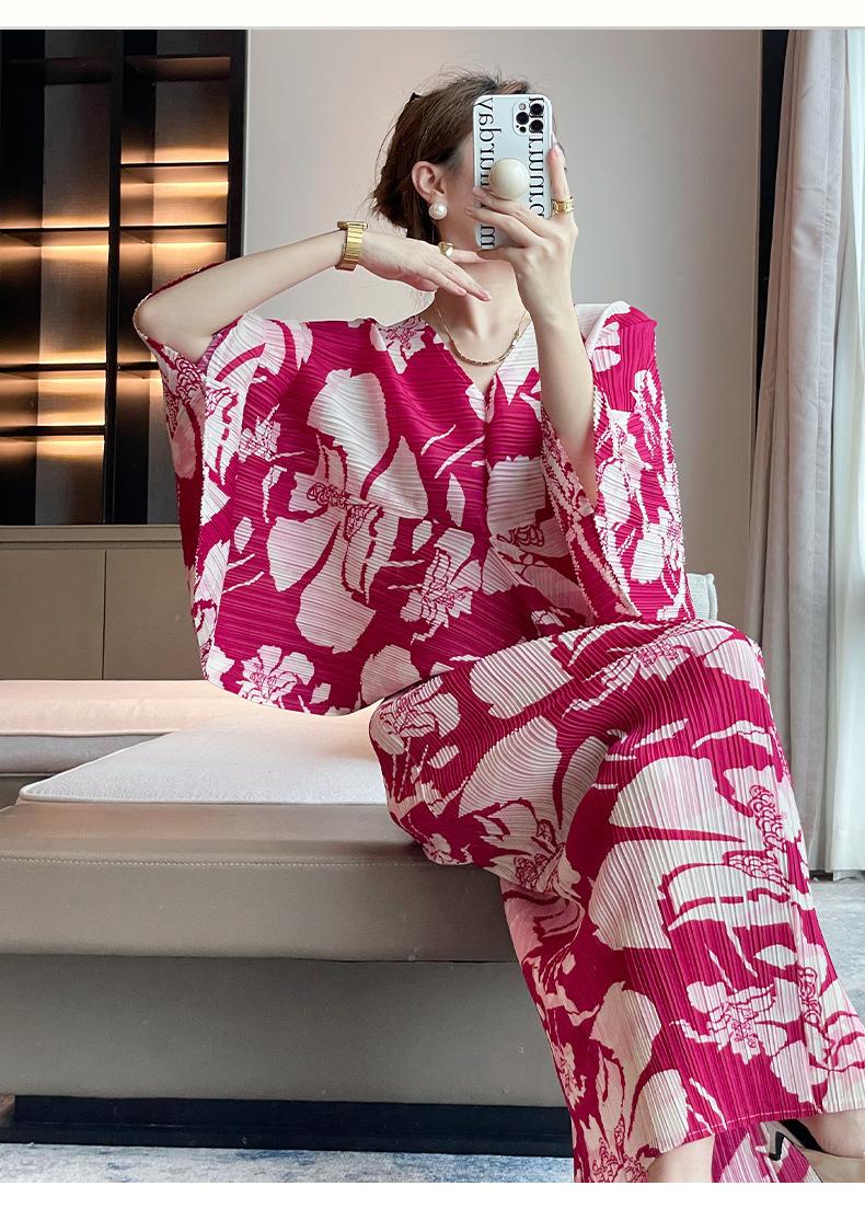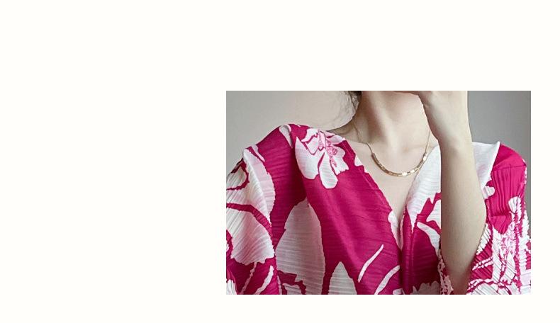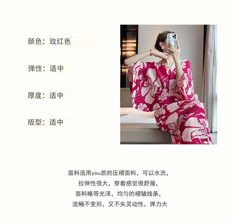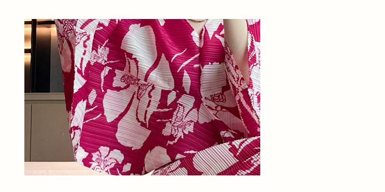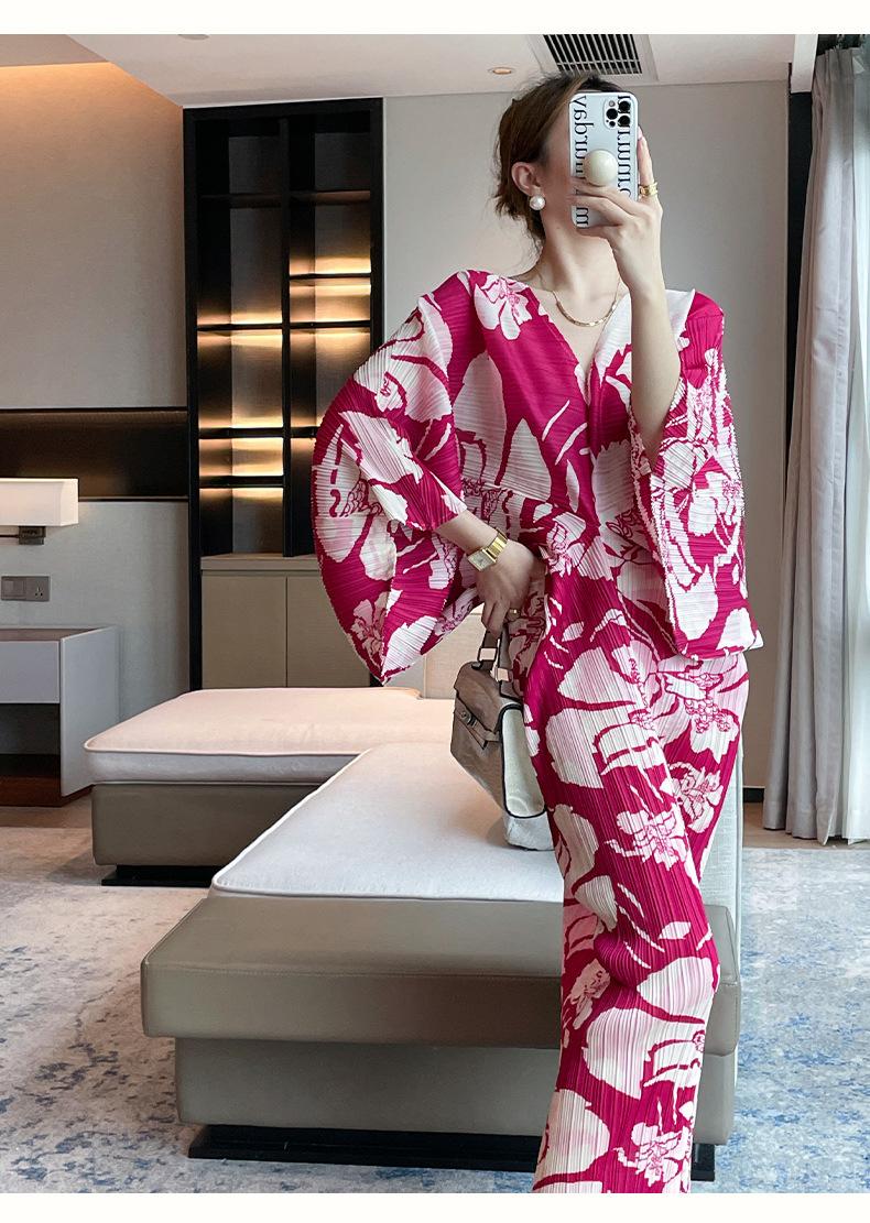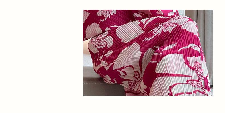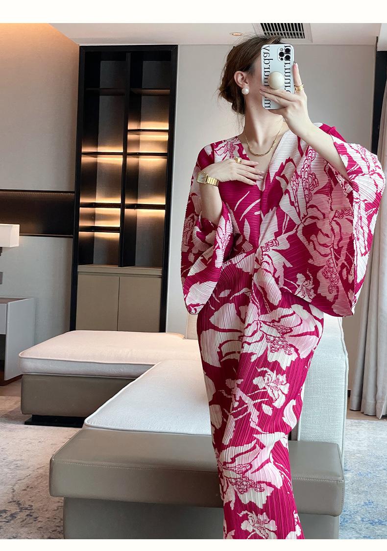 Miyake Otoño Nuevo Vestido Largo Estampado Suelto Cuello en V Entallado Adelgazante Plisado Elegante Vestido de Alta Gama
