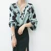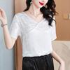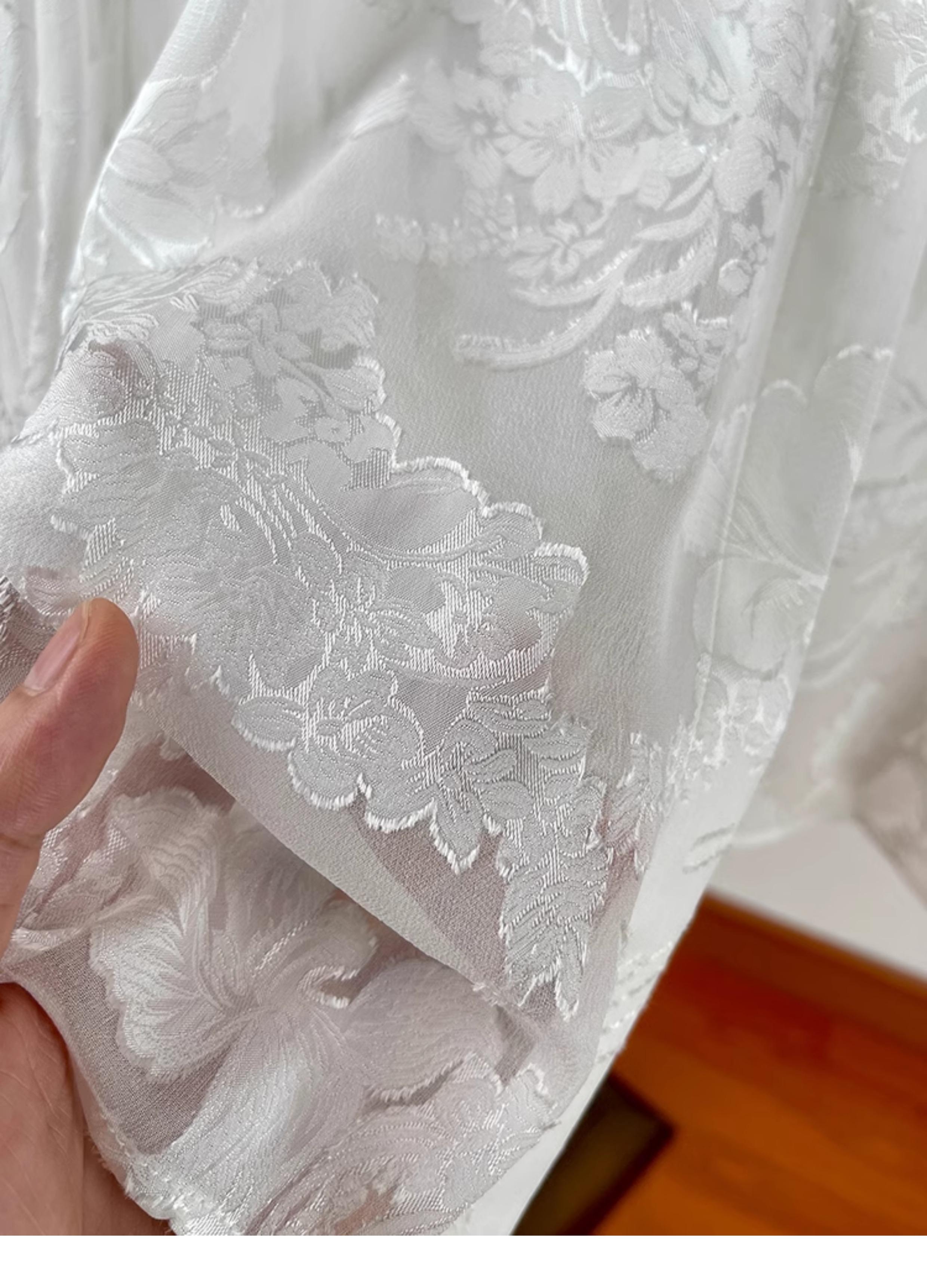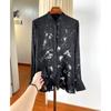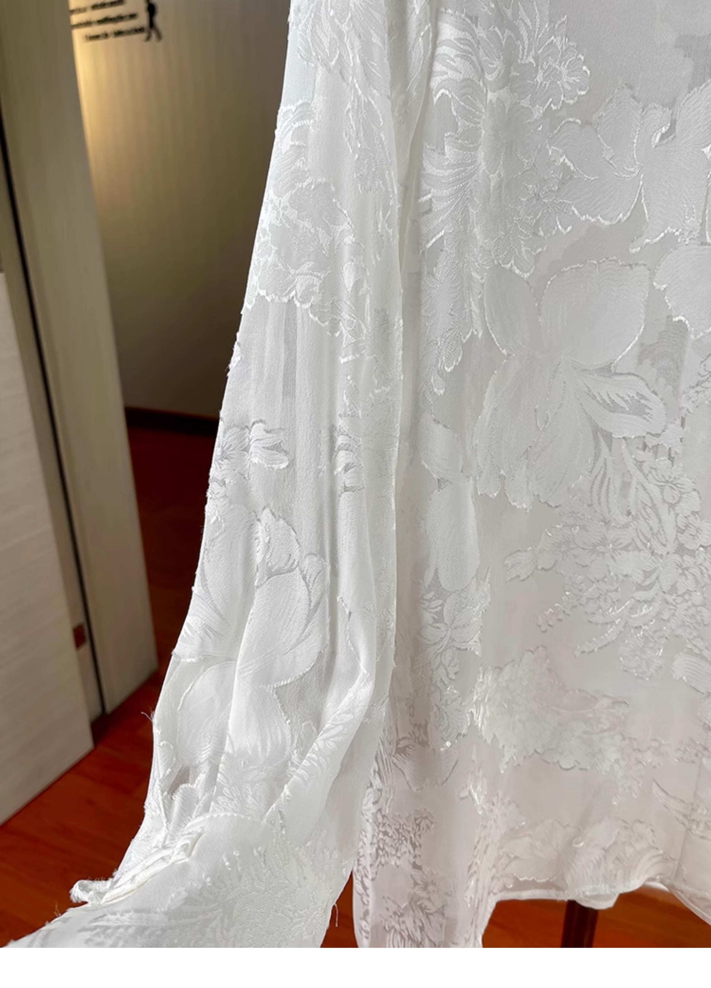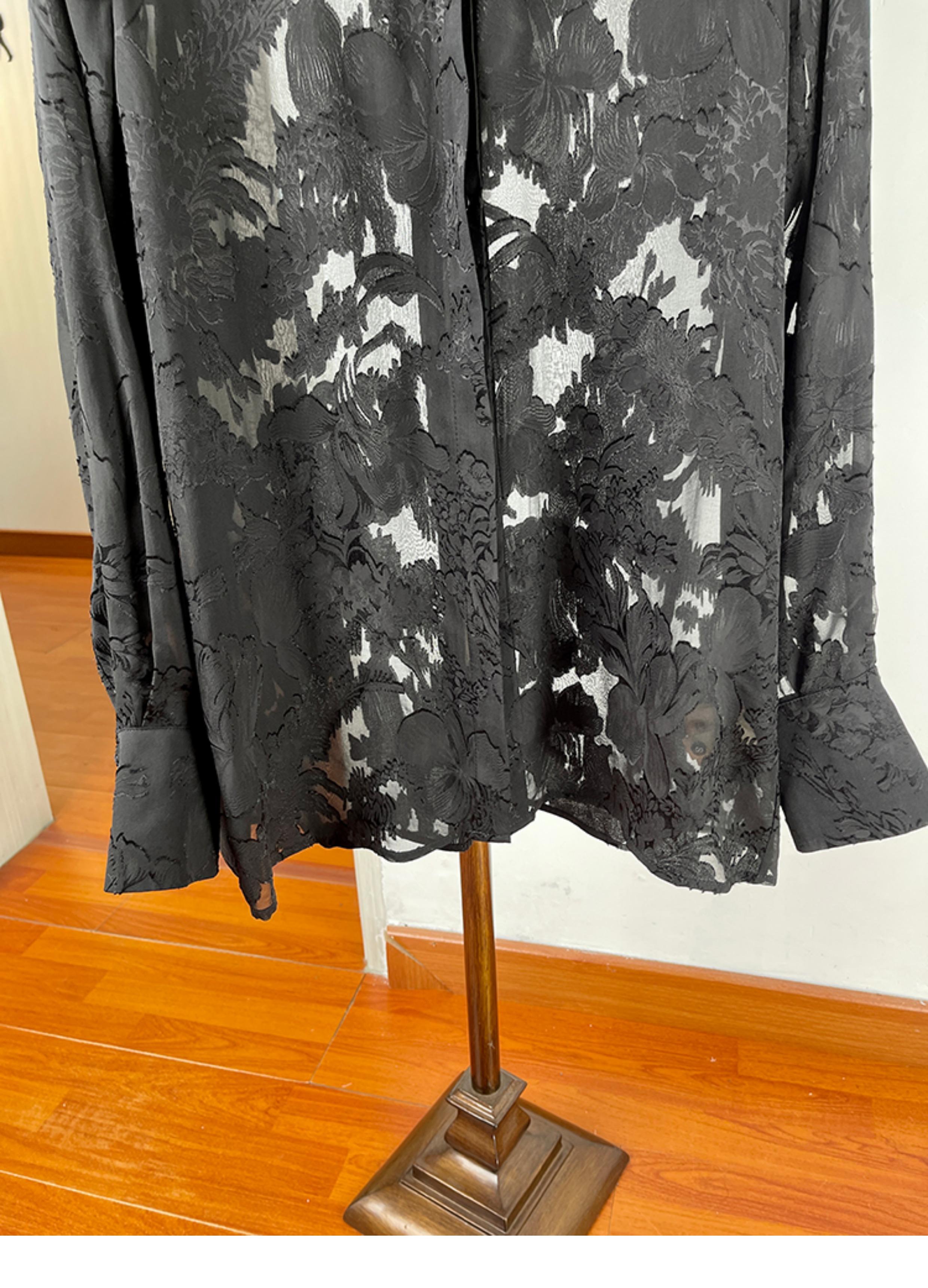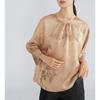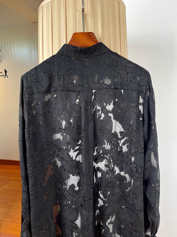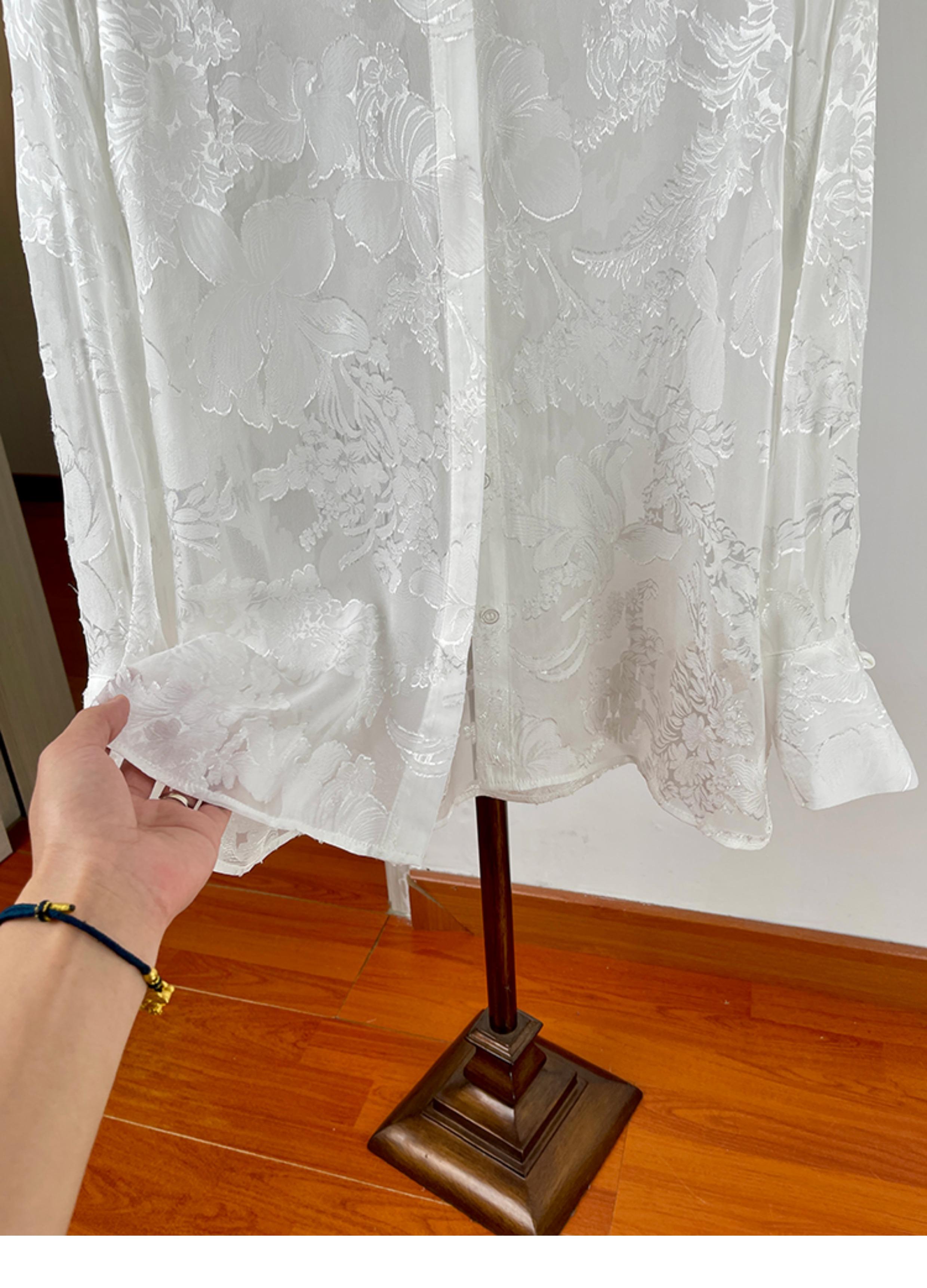 Camisa de seda hueca con flores quemadas, estilo nacional ligero, de manga larga y cuello holgado, con botones, de jacquard y seda morera, para mujer