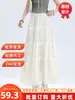 Falda de Encaje Blanco Falda Pastel Falda de Verano para Mujer Nueva 2025 Falda Línea A Elástica de Cintura Alta