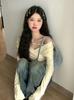 Camiseta de manga larga ajustada con cuello en V irregular y diseño de Spice Girls de otoño, estilo Pure Desire, sexy y nicho para mujer