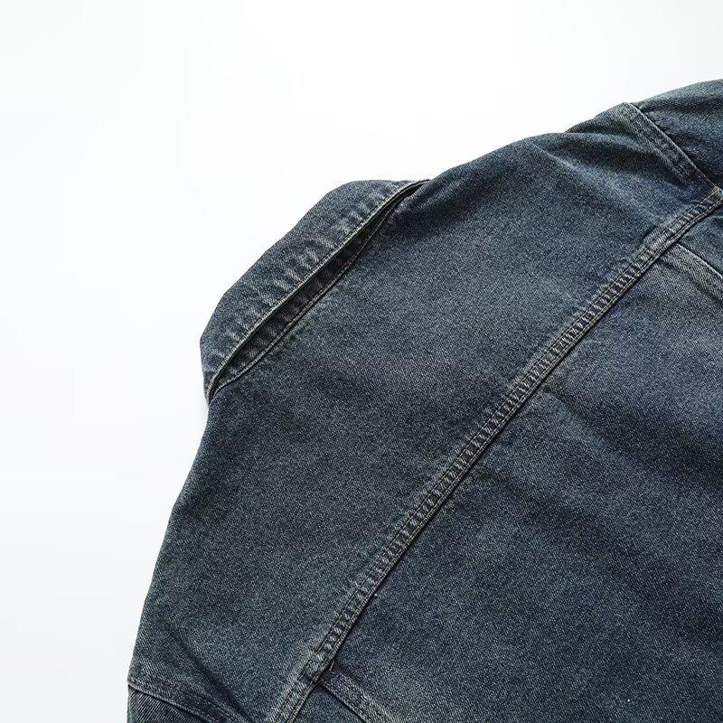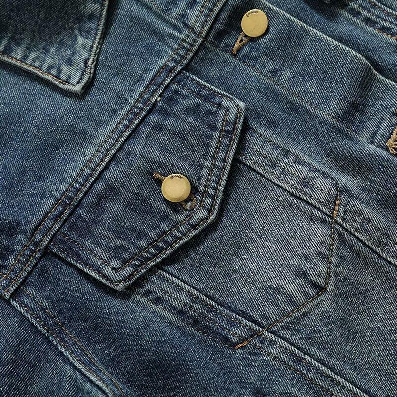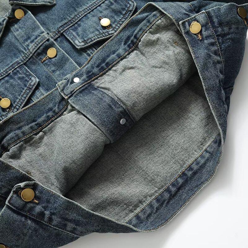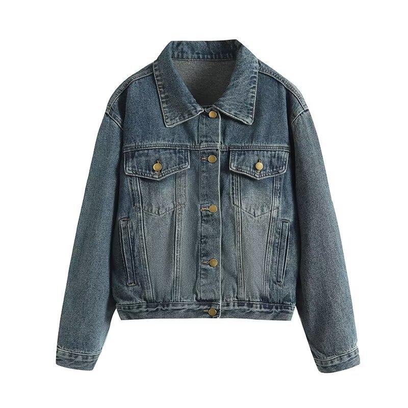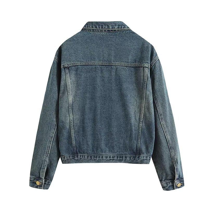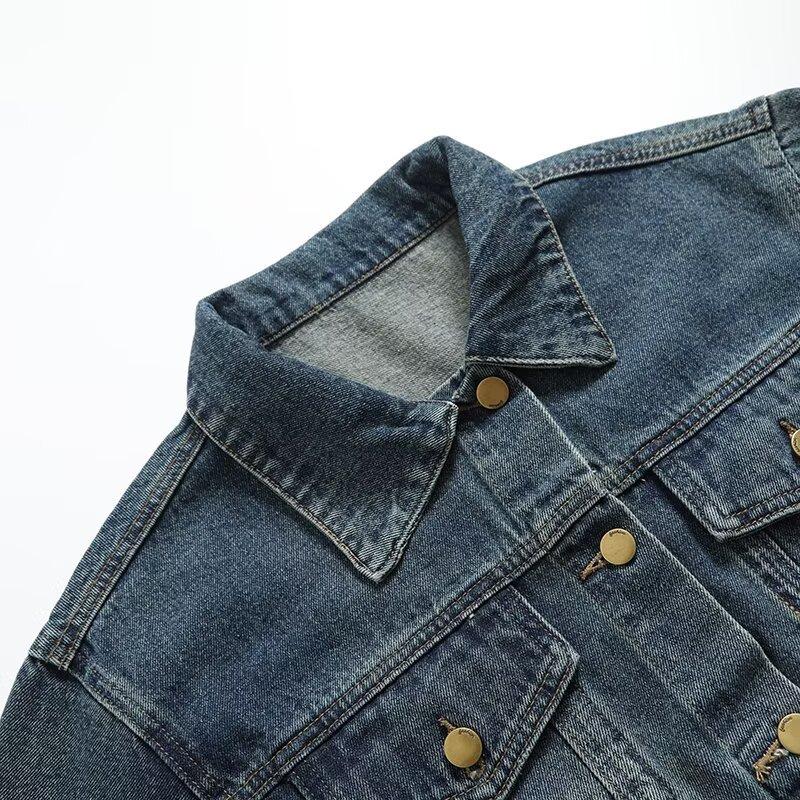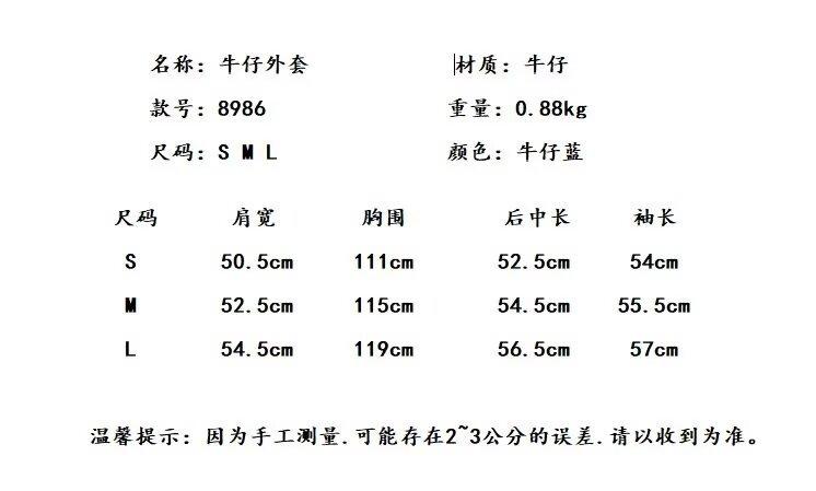 8986-25 Primavera Nuevo Estilo Europeo y Americano Lel Hebilla de Metal Bolsillo Moda Compras Casual Chaqueta Chaqueta de Mezclilla