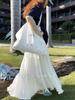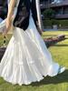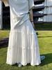 Falda Blanca para Mujer 2025 Nuevo Estilo Primavera Temprana Falda A-Line con Plisados y Empalmes Cintura Alta Look Adelgazante Súper Hada Falda Midi