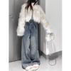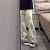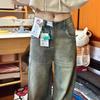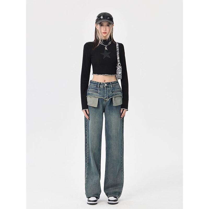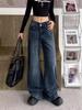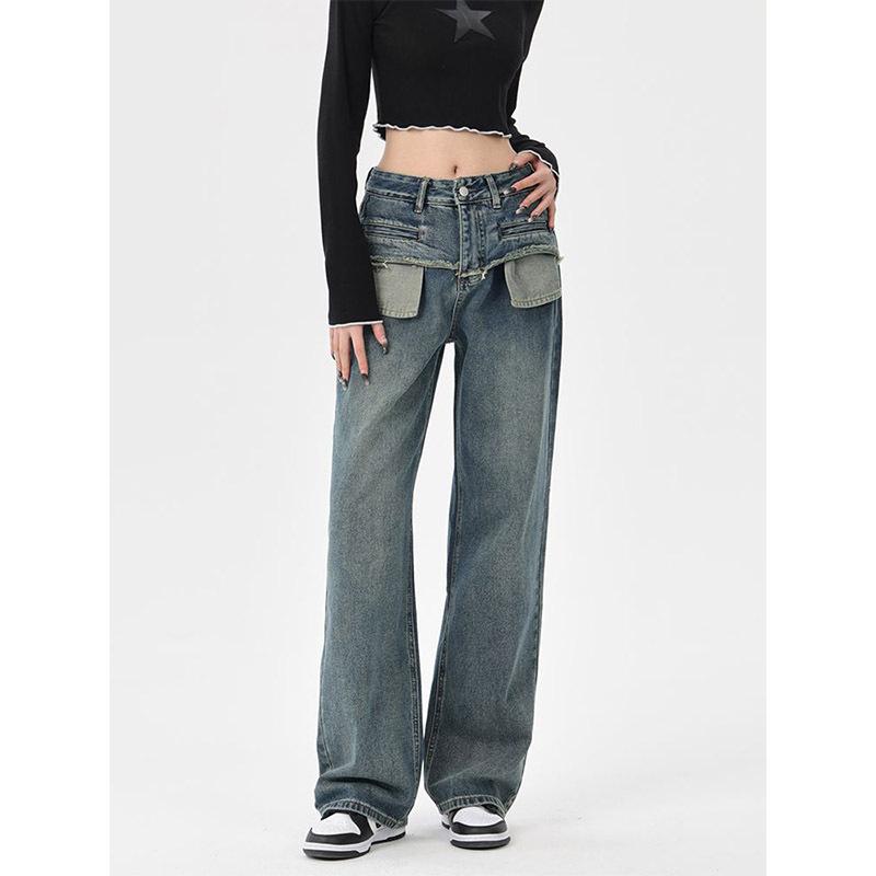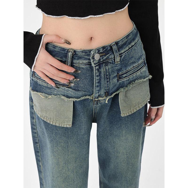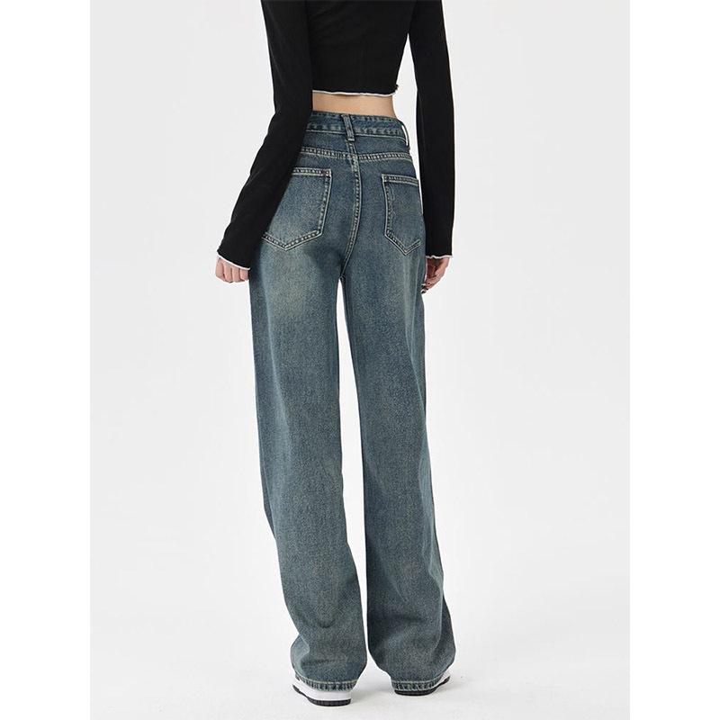 Pantalones vaqueros rectos desgastados y lavados estilo vintage americano para mujer, primavera y otoño, pantalones de fregado de pierna ancha con bolsillo y costuras para chica pequeña y sexy