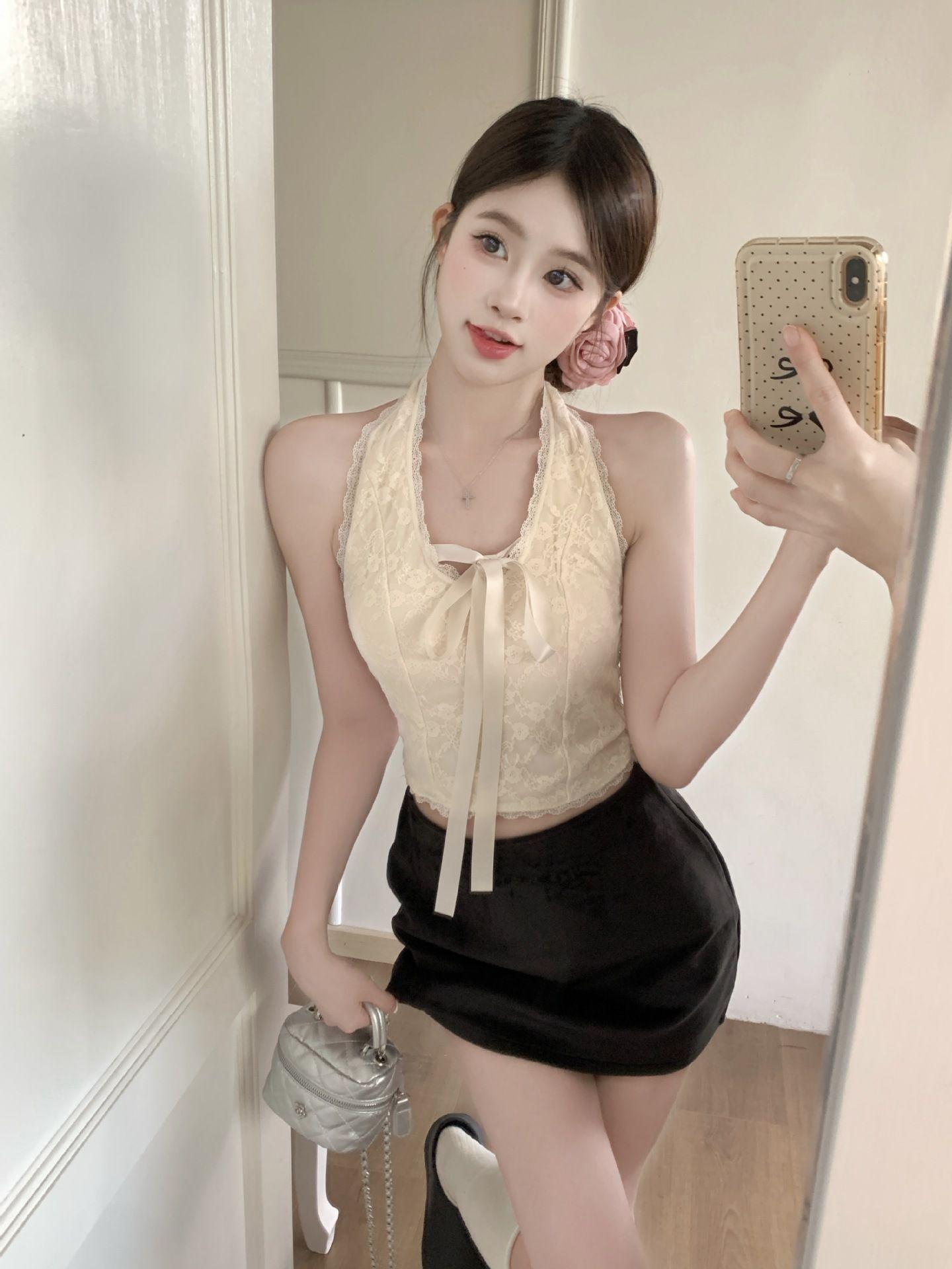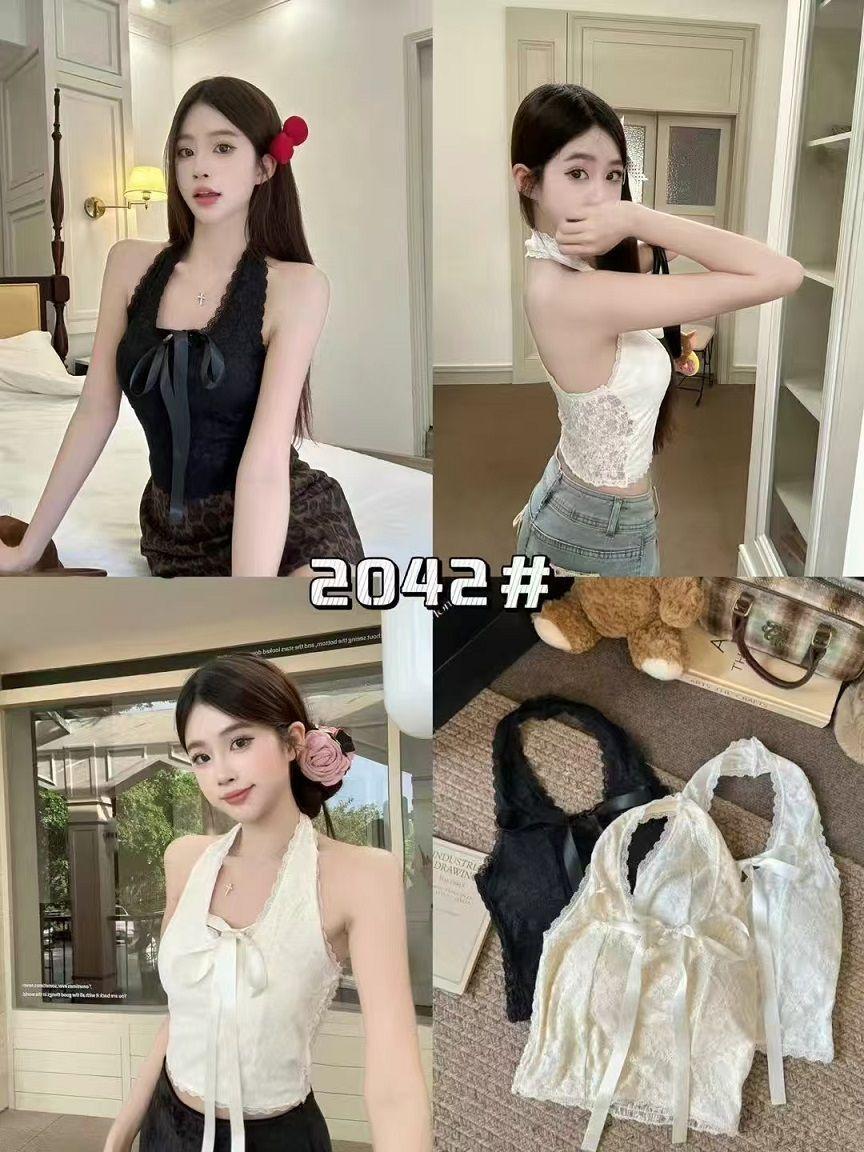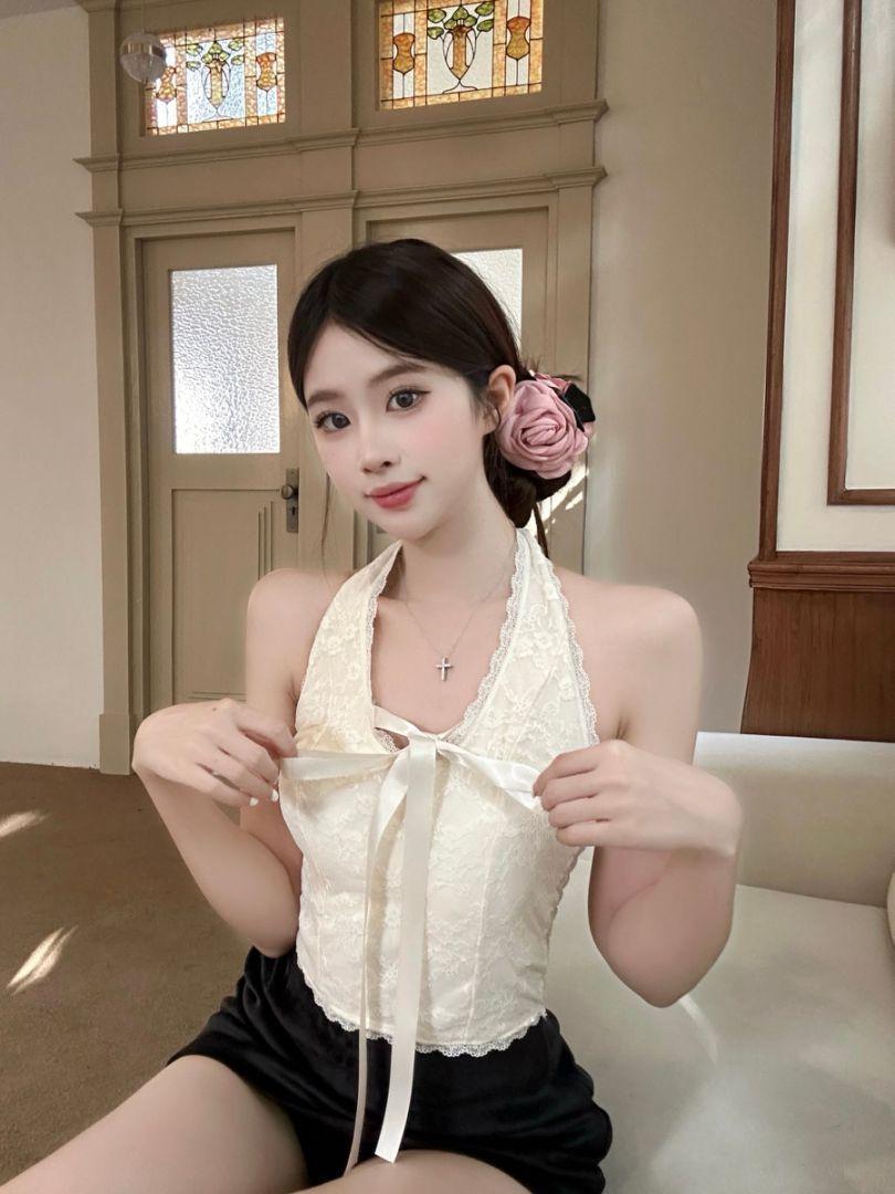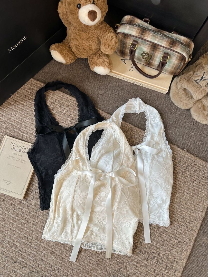 Camisola de encaje con escote en V y lazo para mujer, top de tubo sexy de verano, novedad de 2025