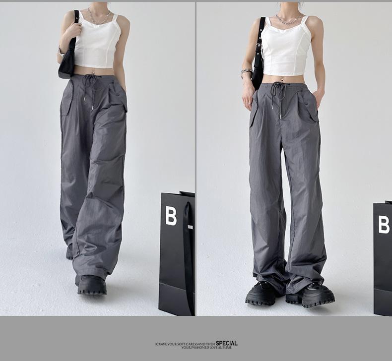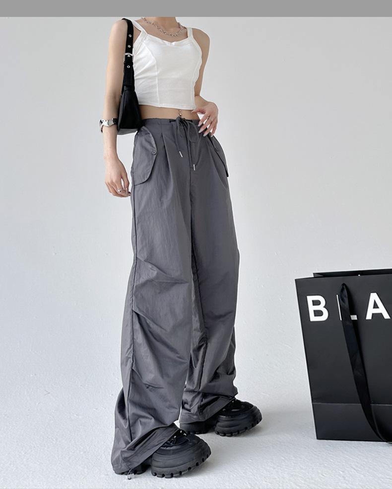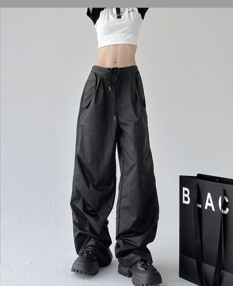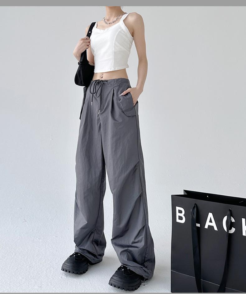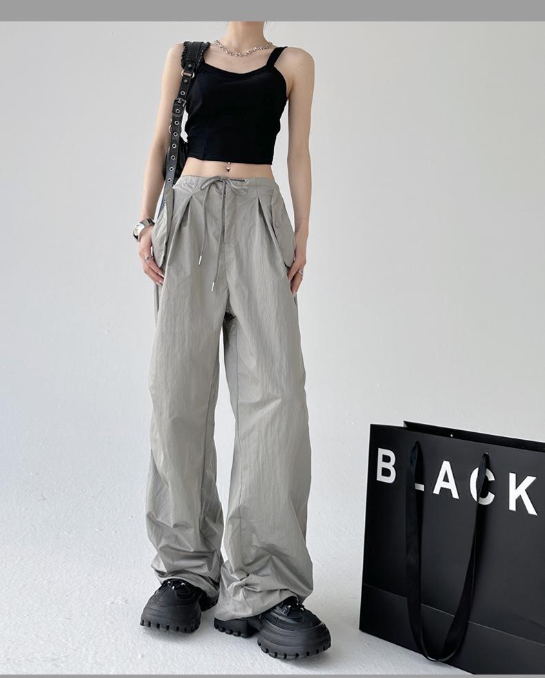 Monos de calle estilo americano para mujer, nuevos pantalones deportivos de verano finos, informales, holgados, de cintura alta, adelgazantes y de pierna ancha