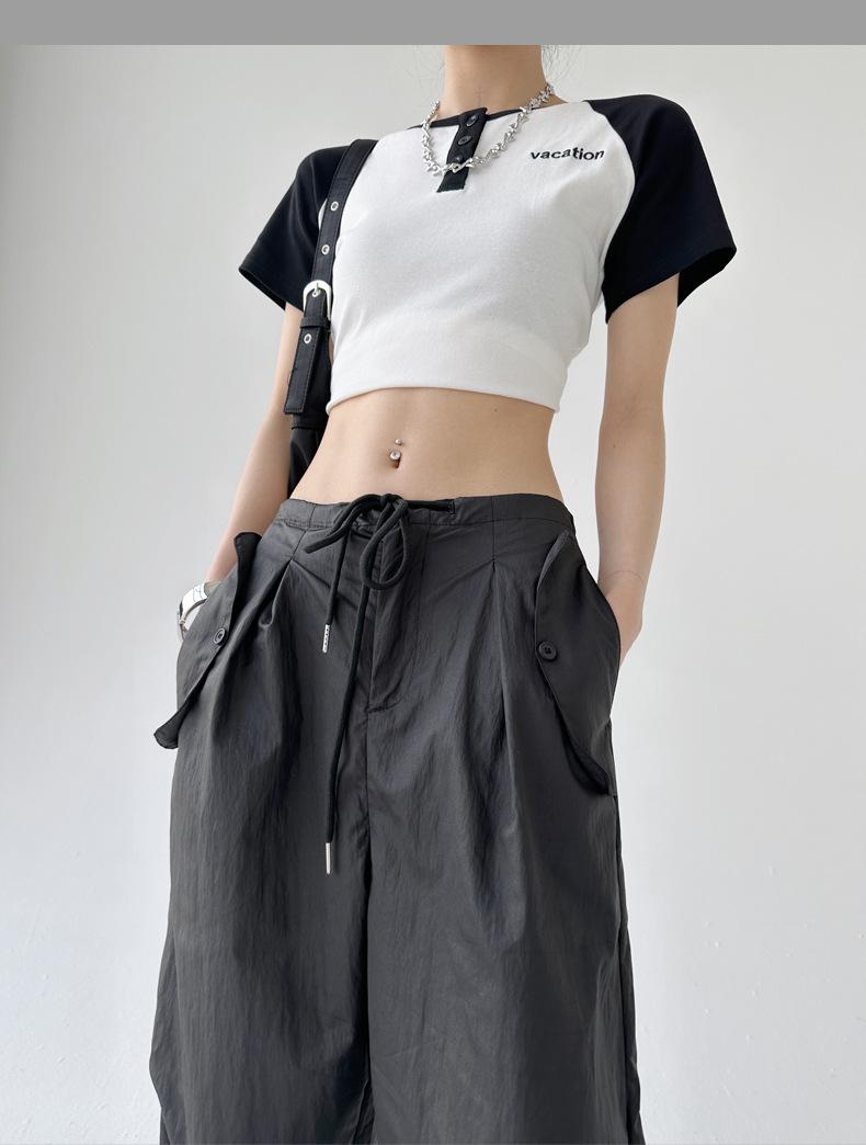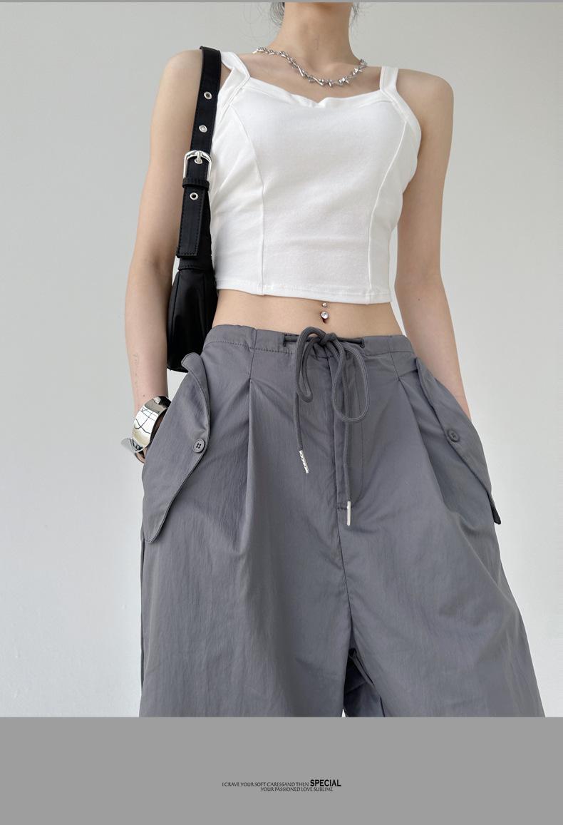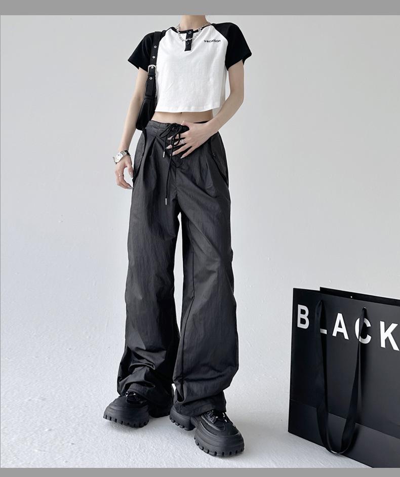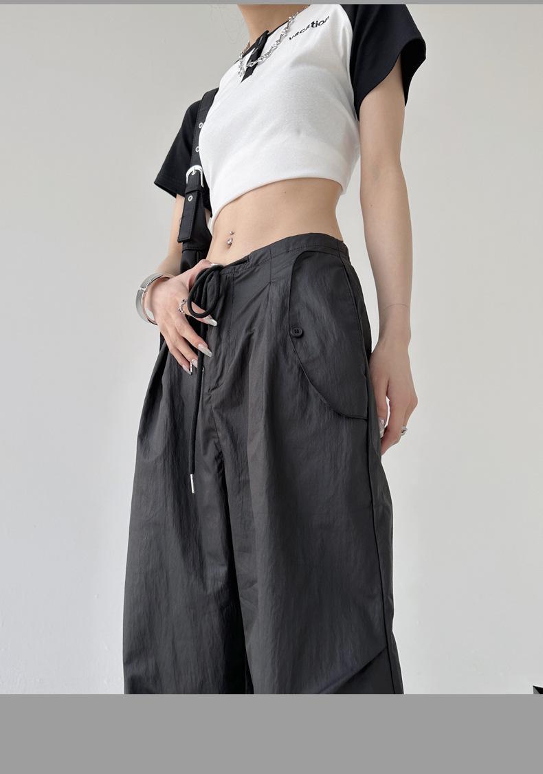 Monos de calle estilo americano para mujer, nuevos pantalones deportivos de verano finos, informales, holgados, de cintura alta, adelgazantes y de pierna ancha