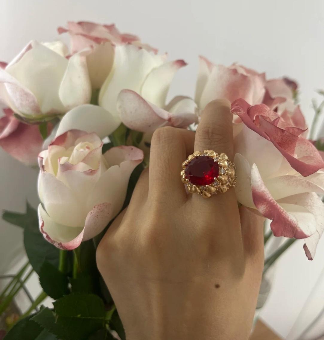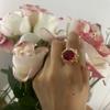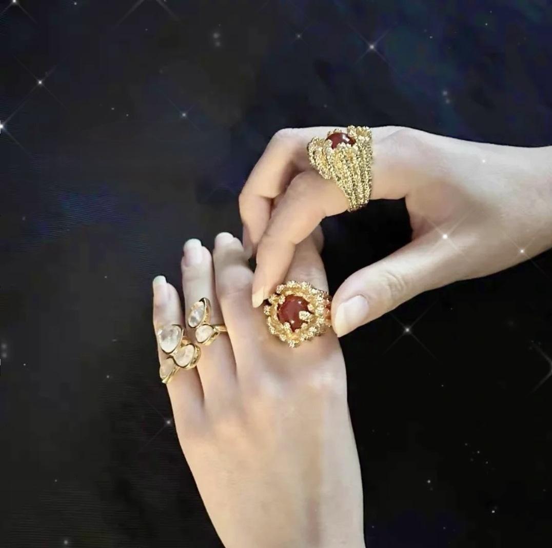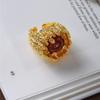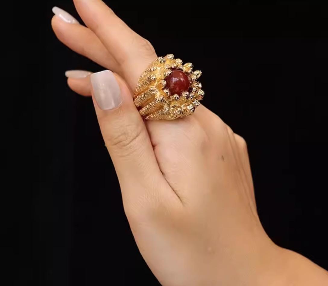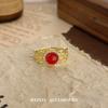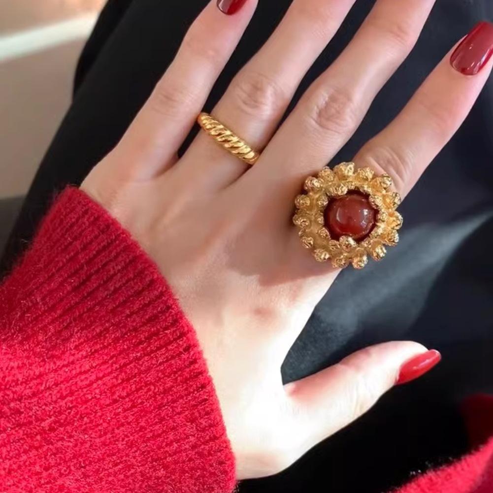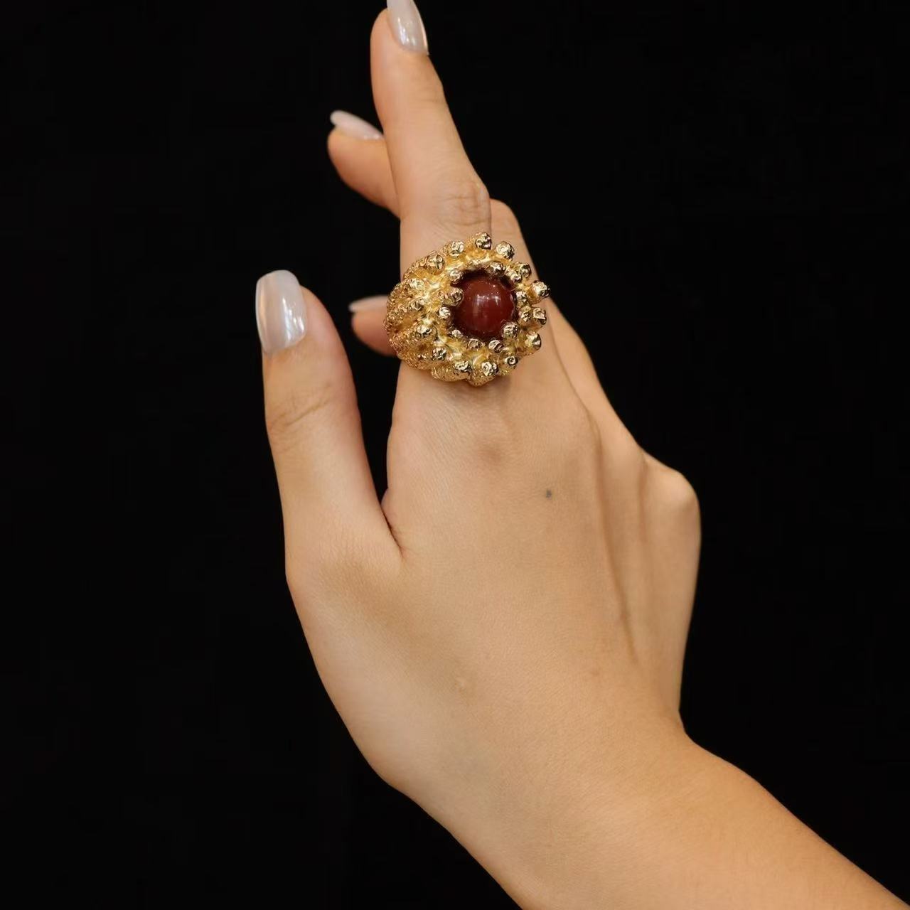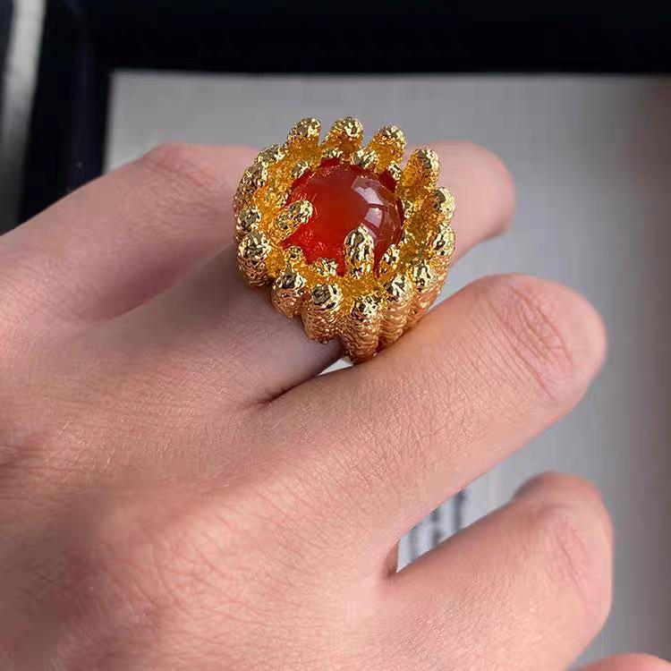 Anillo de ágata roja con diseño de nicho español para mujer, con textura y tallado, ligero, de lujo, de alta gama y con personalidad.