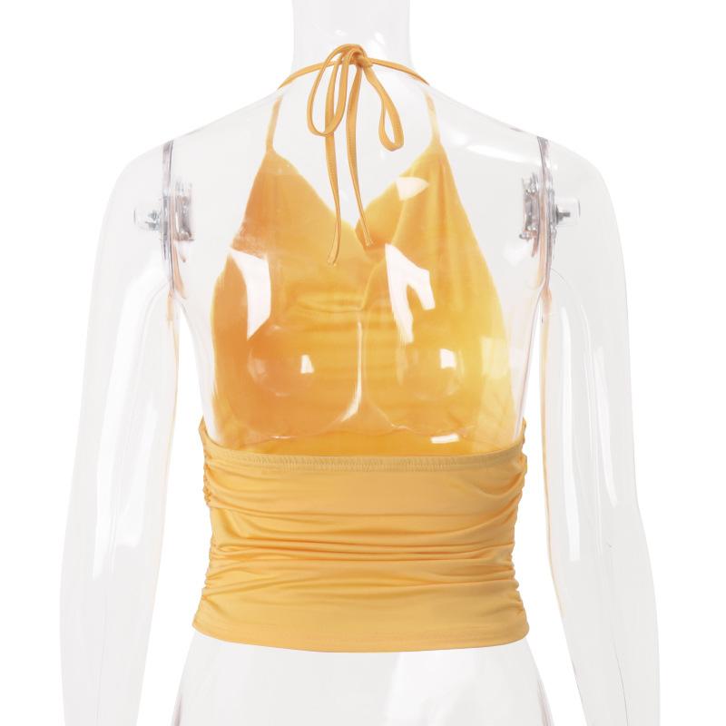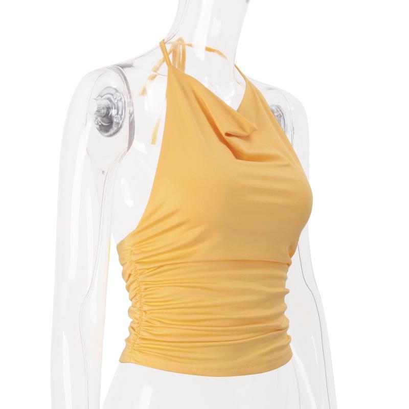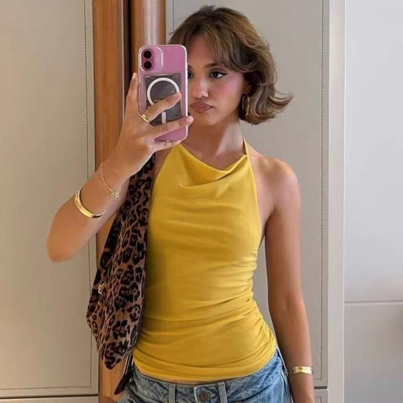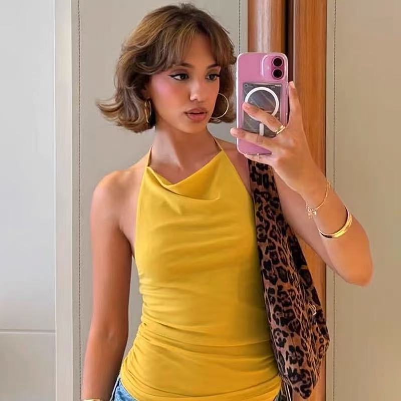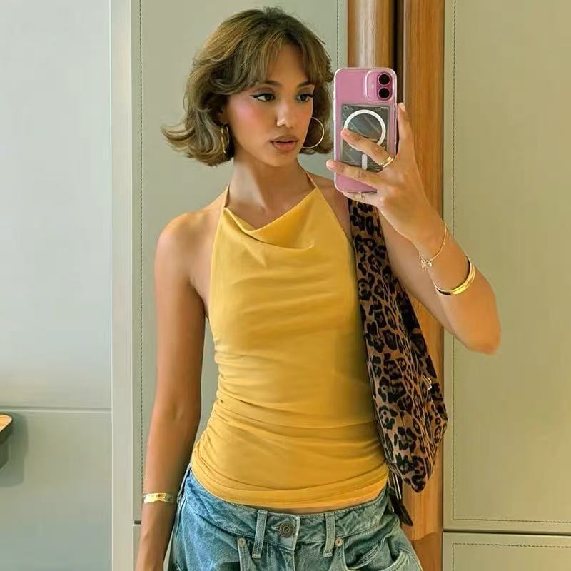 Top tipo chaleco corto de cuello alto, ajustado y sexy sin espalda, para mujer, nuevo de moda de verano 2025 europeo y americano transfronterizo