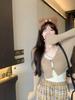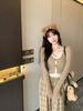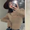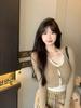 Sexy Nicho de Deseo Puro Diseño Versátil Camiseta de Manga Larga Sweet Spice Girl Otoño Costuras Cuello en V Cárdigan Tejido Top
