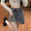 Falda de mezclilla nueva de cintura alta 2025 para mujeres pequeñas Anti-expuesta Primavera y verano Adelgazante Más fácil de combinar Falda línea A Falda corta