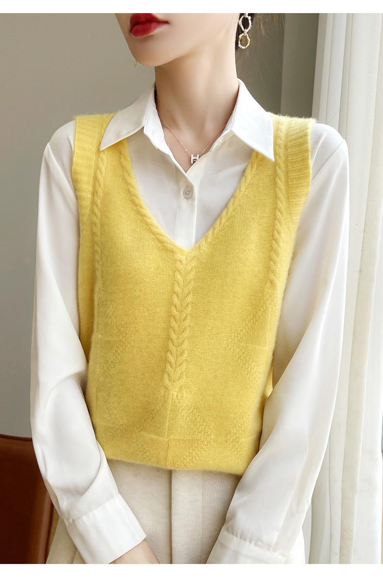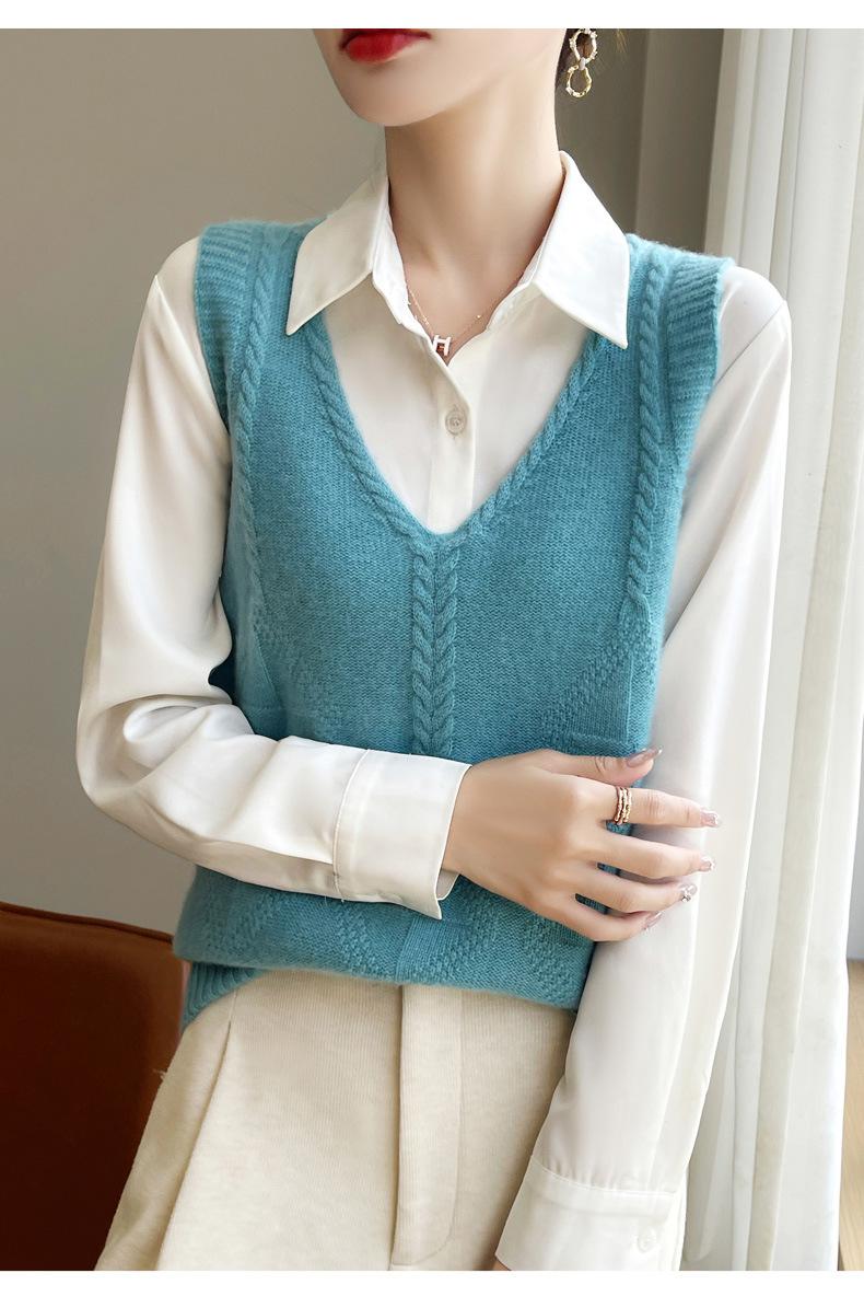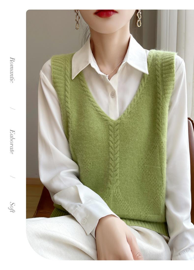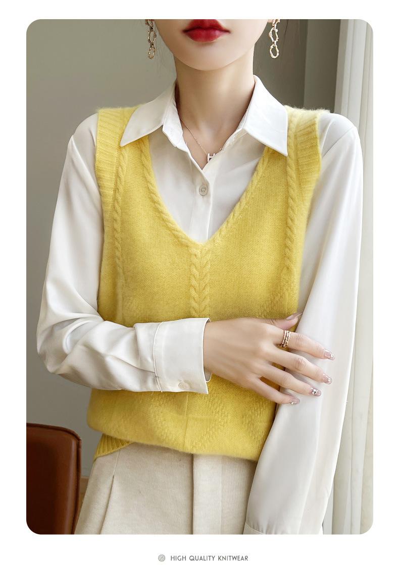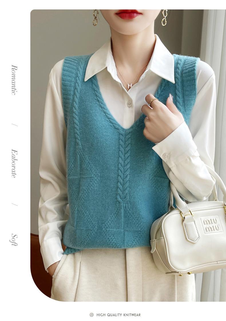Chaleco de punto con cuello en V y flores retorcidas de terciopelo Andy para mujer, top elegante, ligero y de lujo, a la moda, combinable con todo, para otoño e invierno.