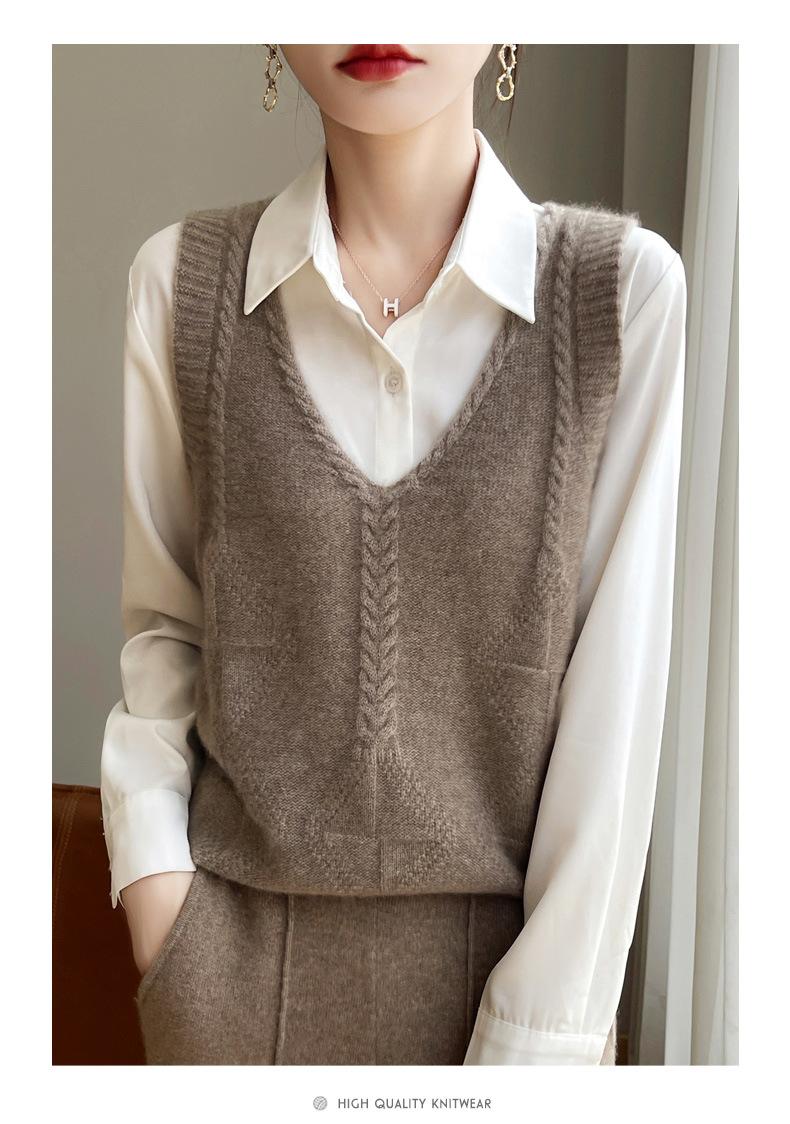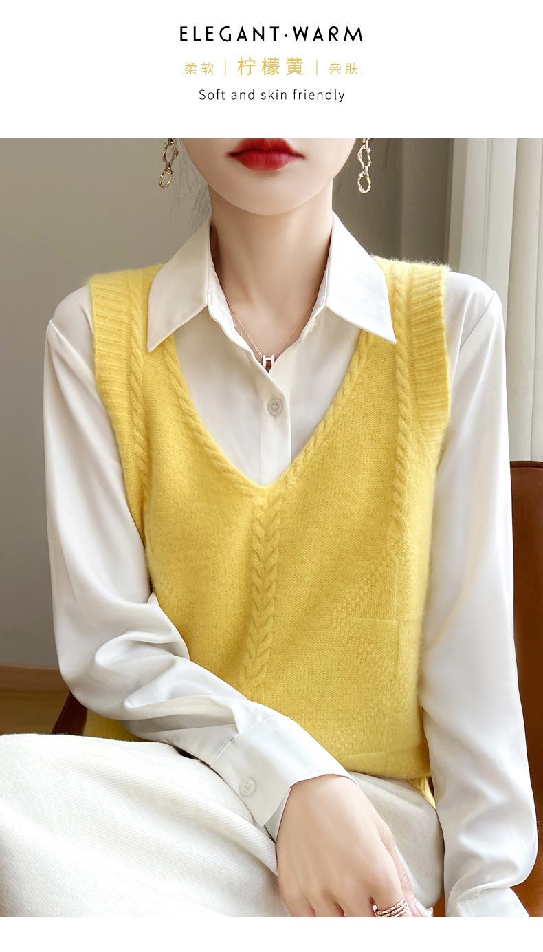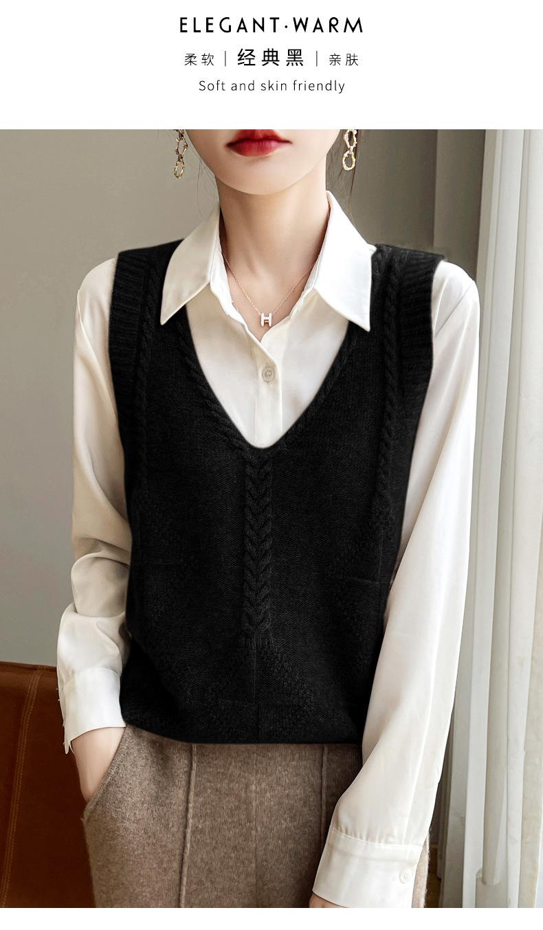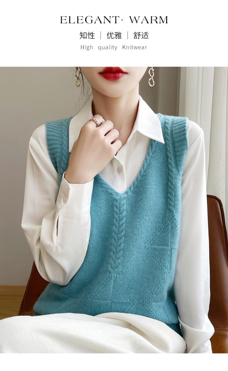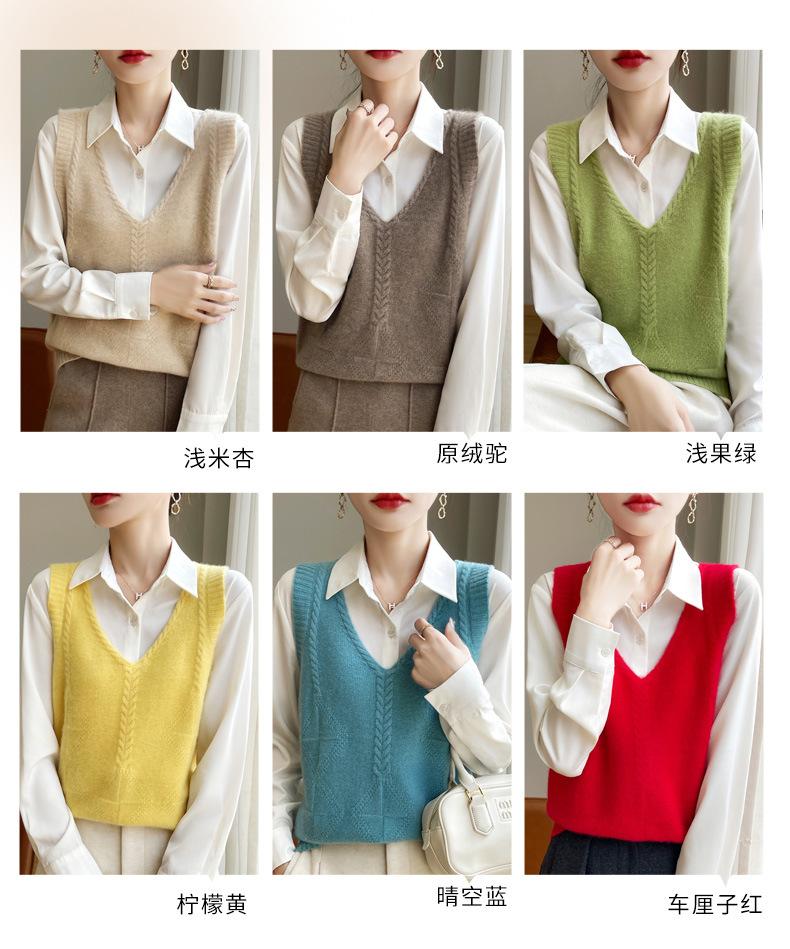 Chaleco de punto con cuello en V y flores retorcidas de terciopelo Andy para mujer, top elegante, ligero y de lujo, a la moda, combinable con todo, para otoño e invierno.