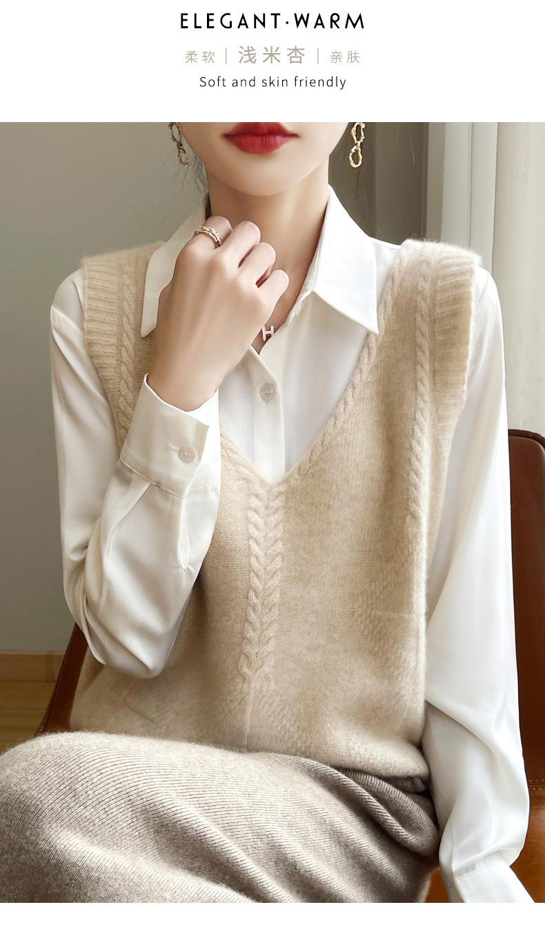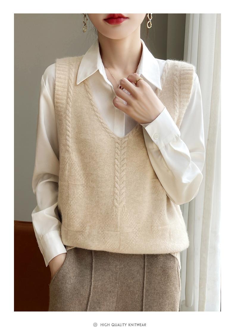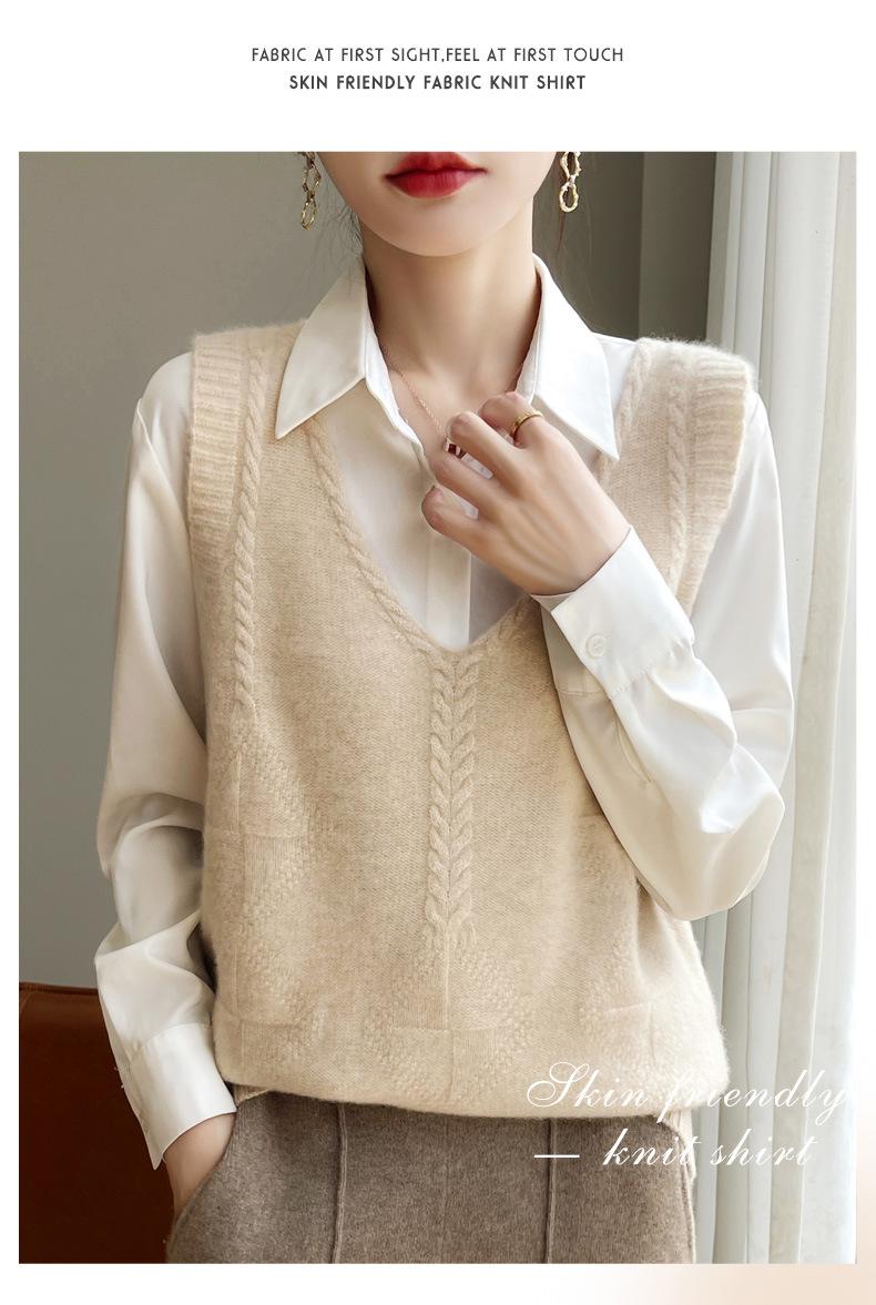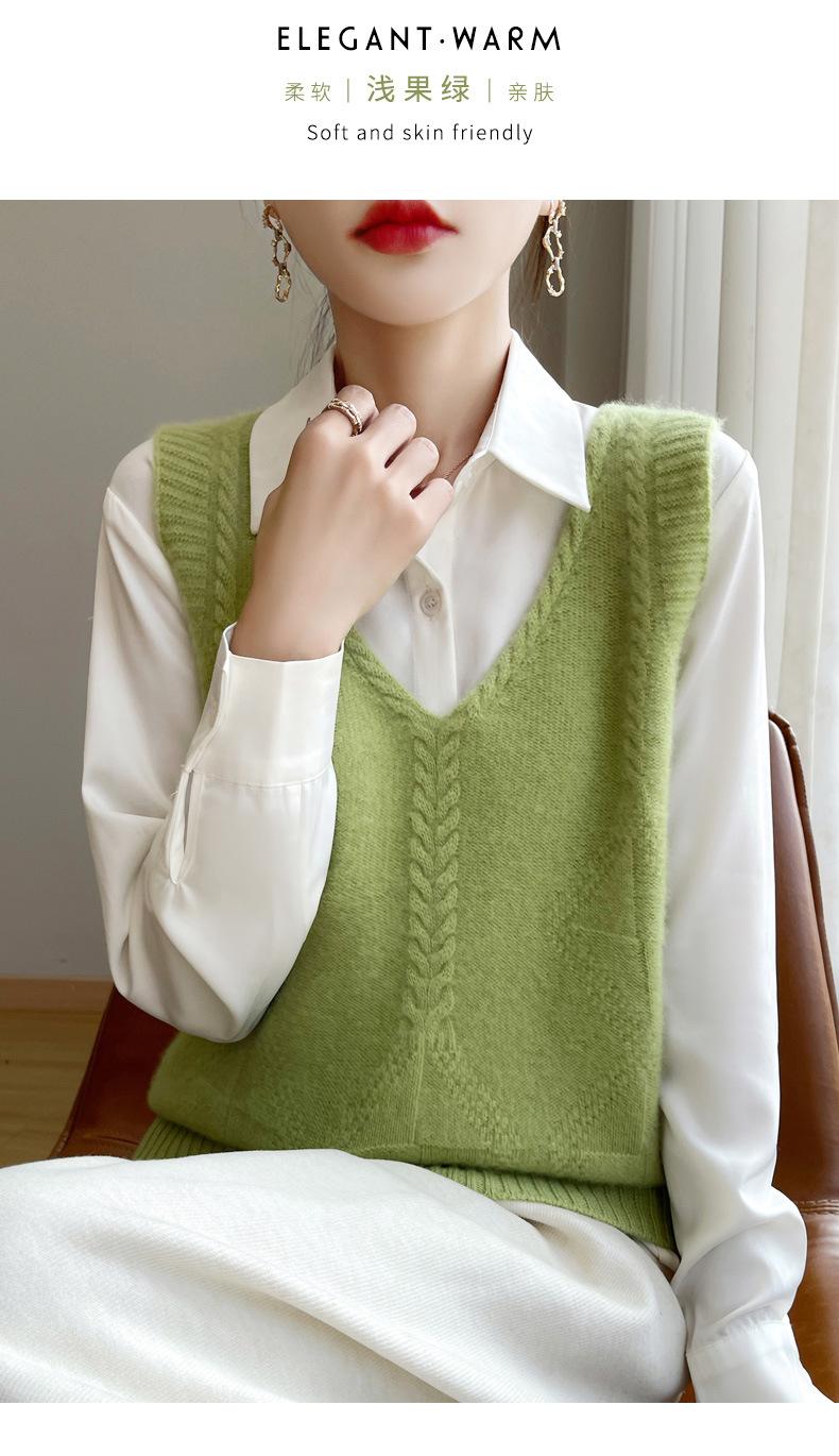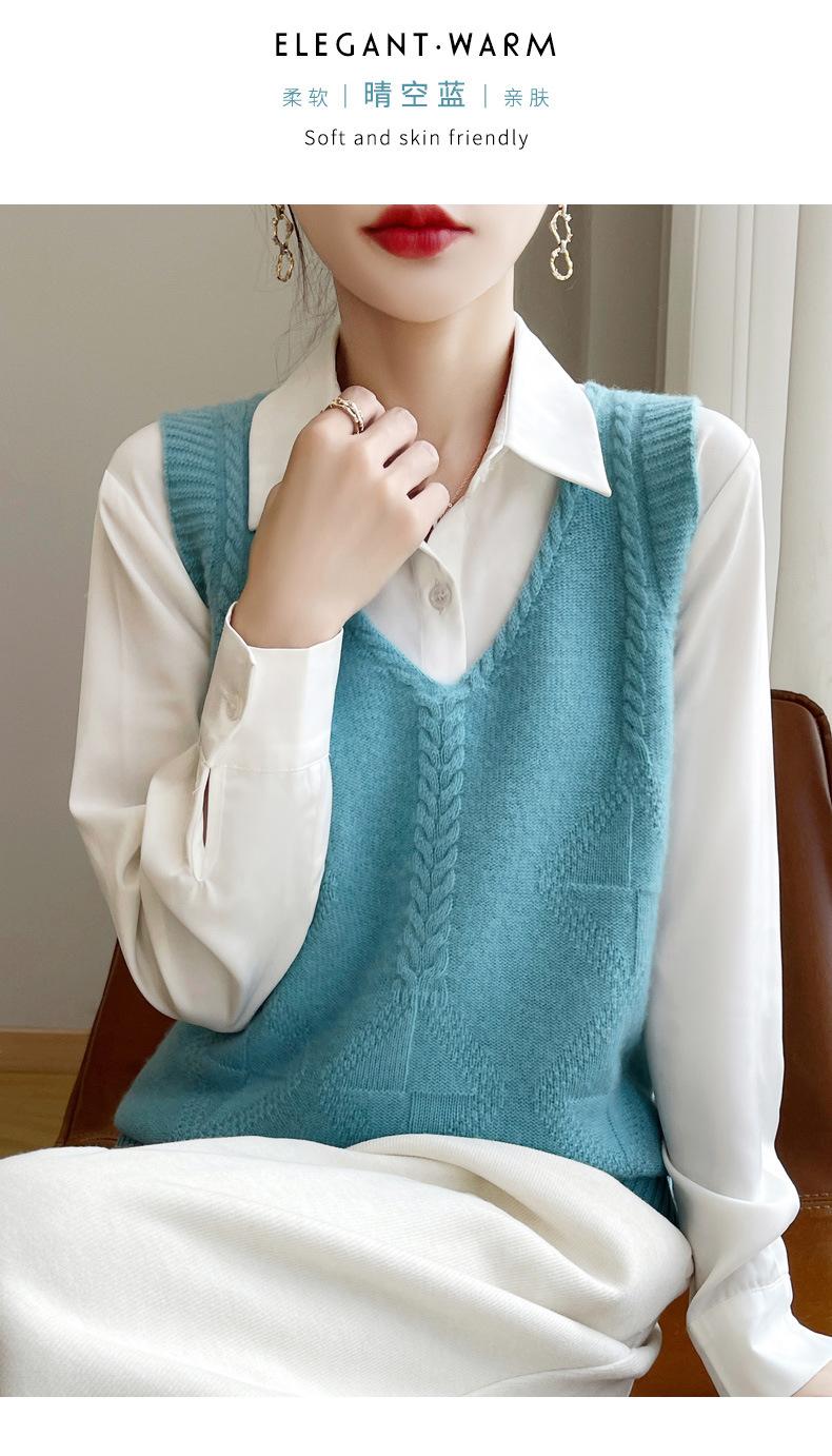Chaleco de punto con cuello en V y flores retorcidas de terciopelo Andy para mujer, top elegante, ligero y de lujo, a la moda, combinable con todo, para otoño e invierno.