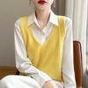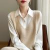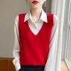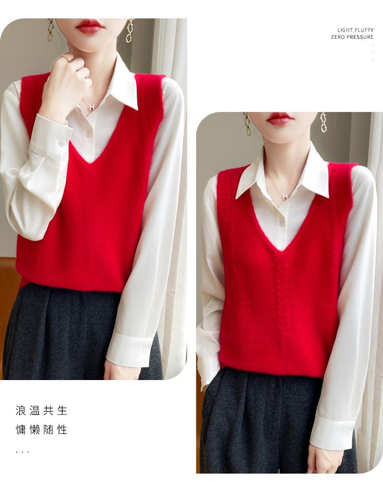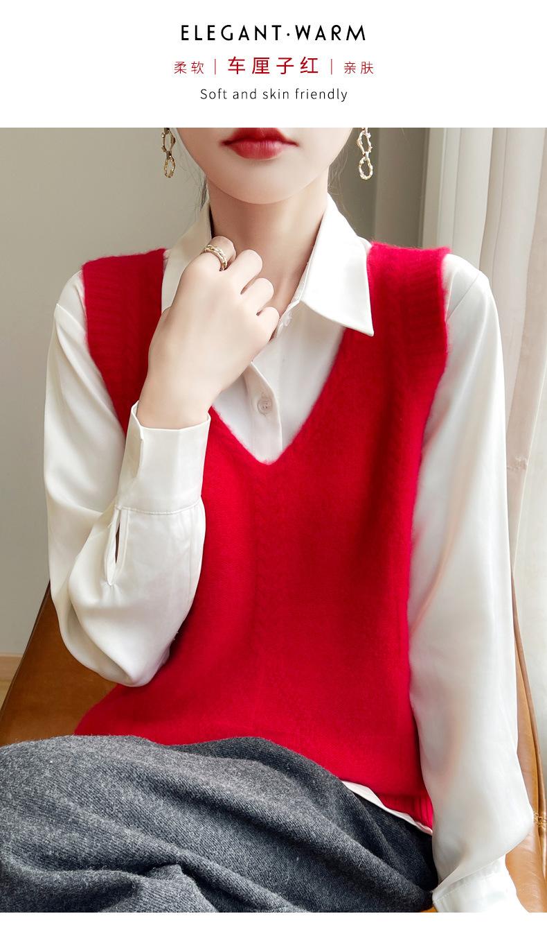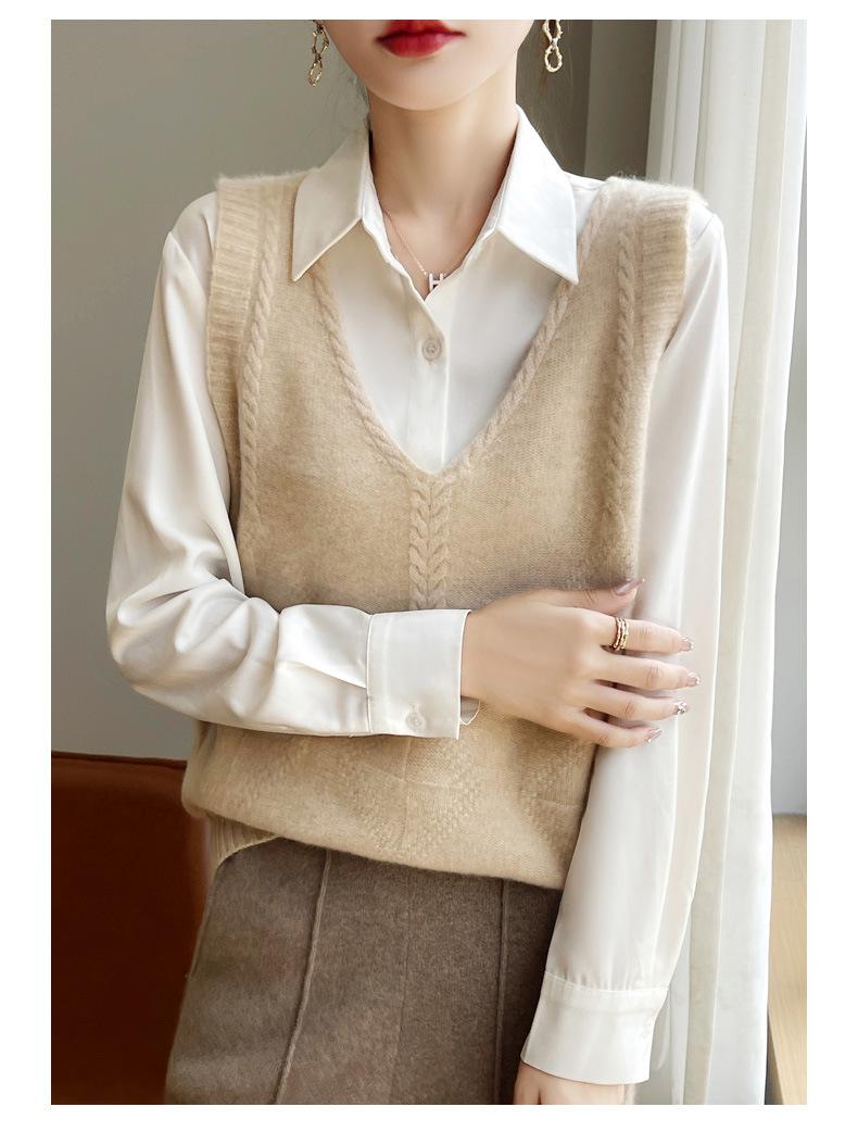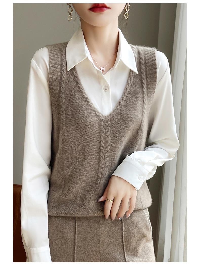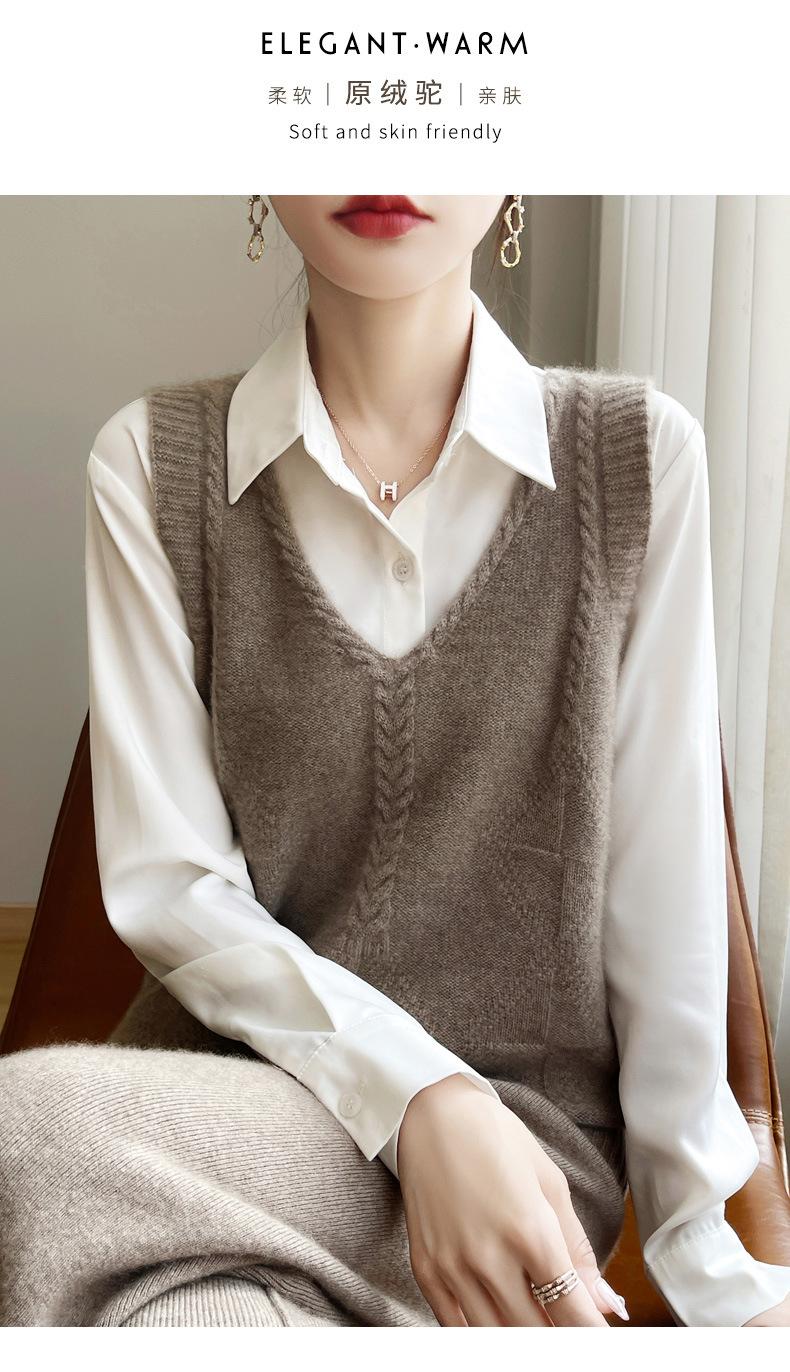 Chaleco de punto con cuello en V y flores retorcidas de terciopelo Andy para mujer, top elegante, ligero y de lujo, a la moda, combinable con todo, para otoño e invierno.