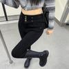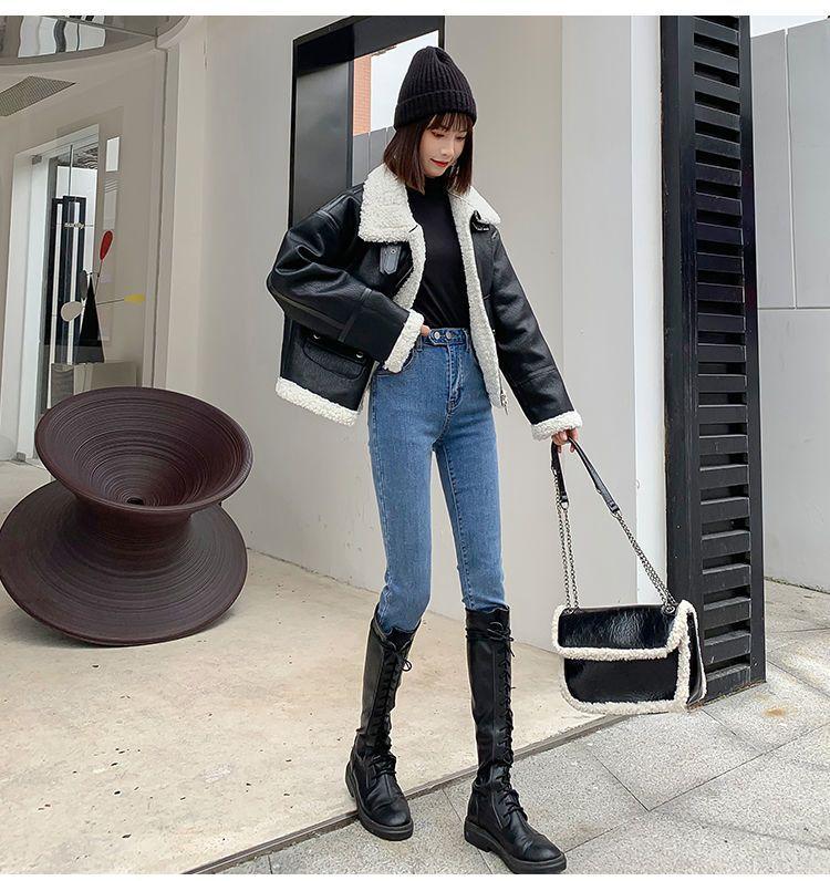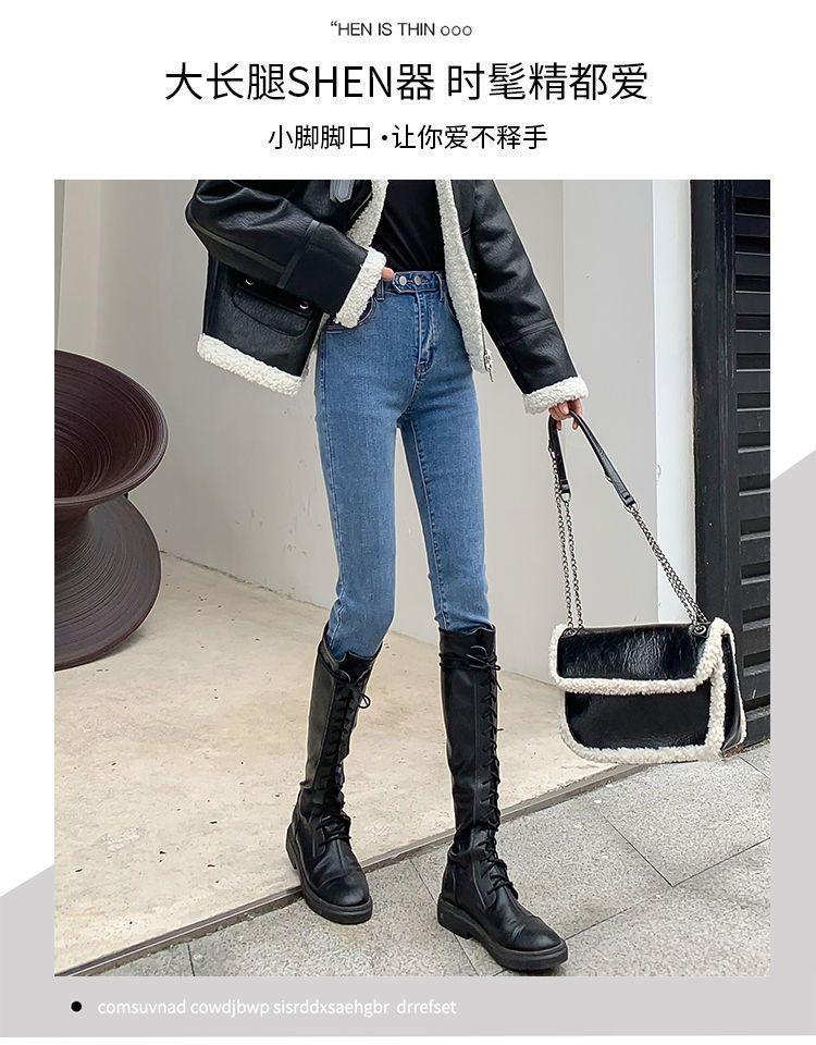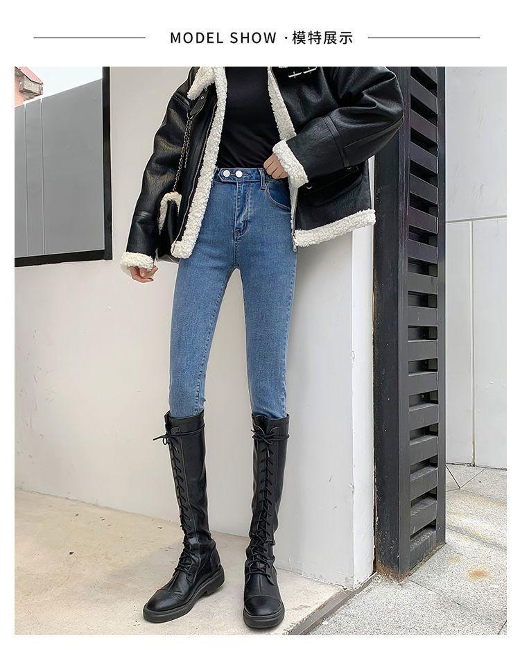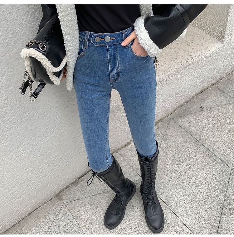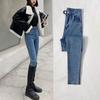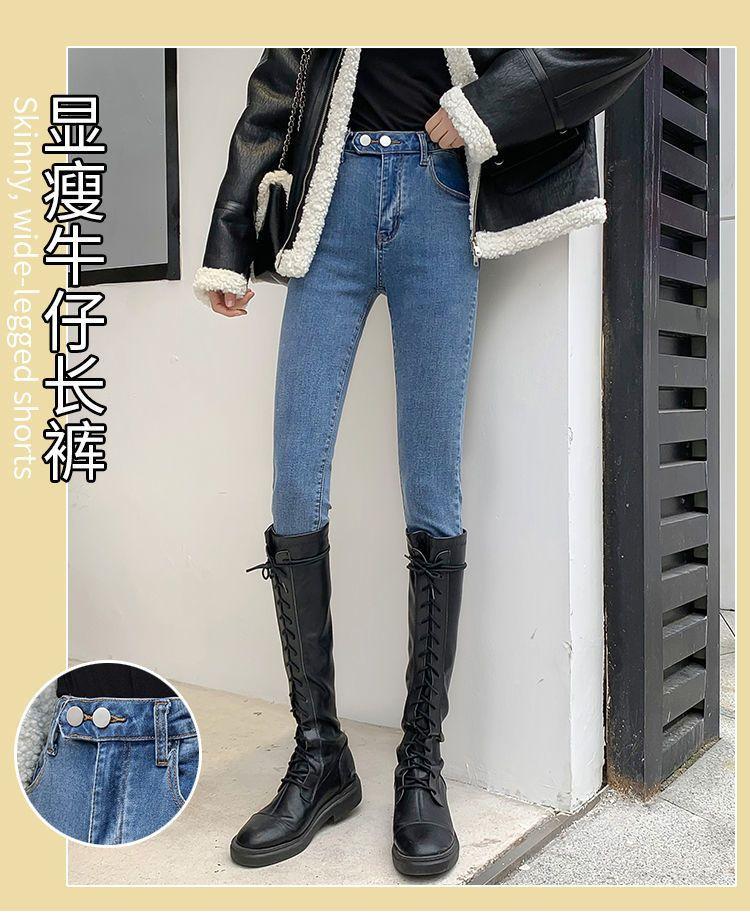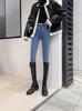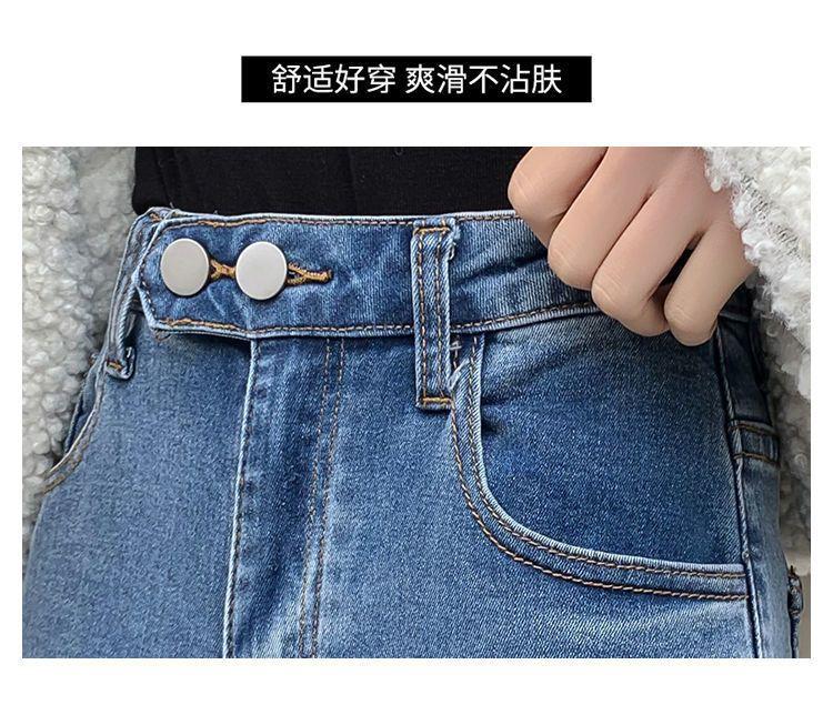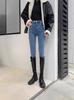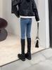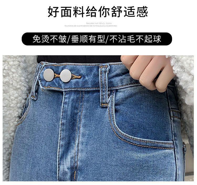 Pantalones vaqueros ajustados de primavera y otoño para mujer, cintura alta, doble hebilla, corte ajustado, vintage, pantalones cortos color rojo