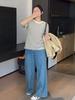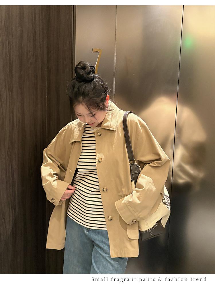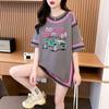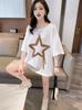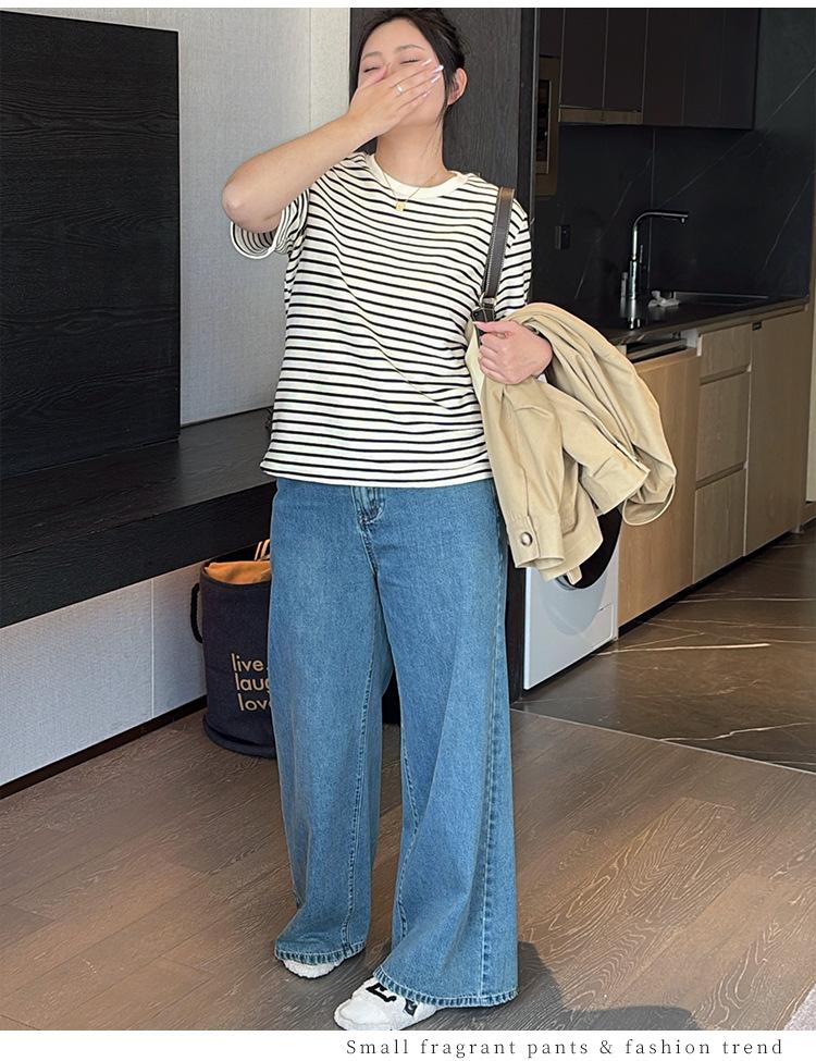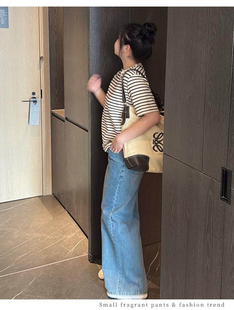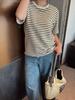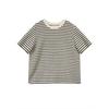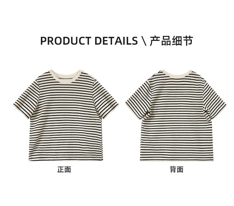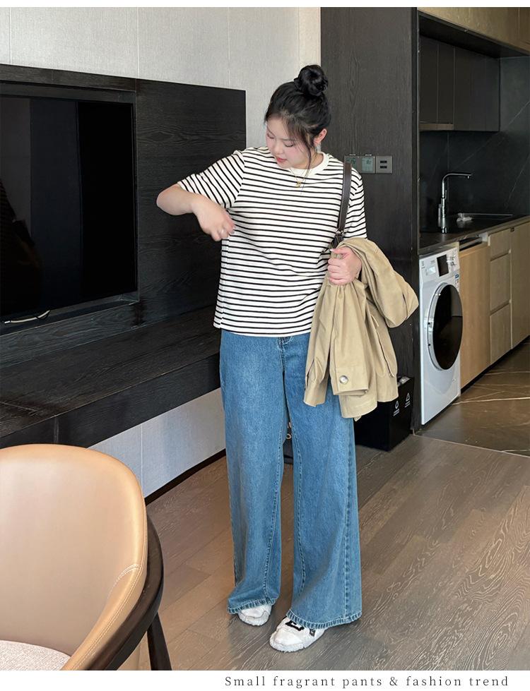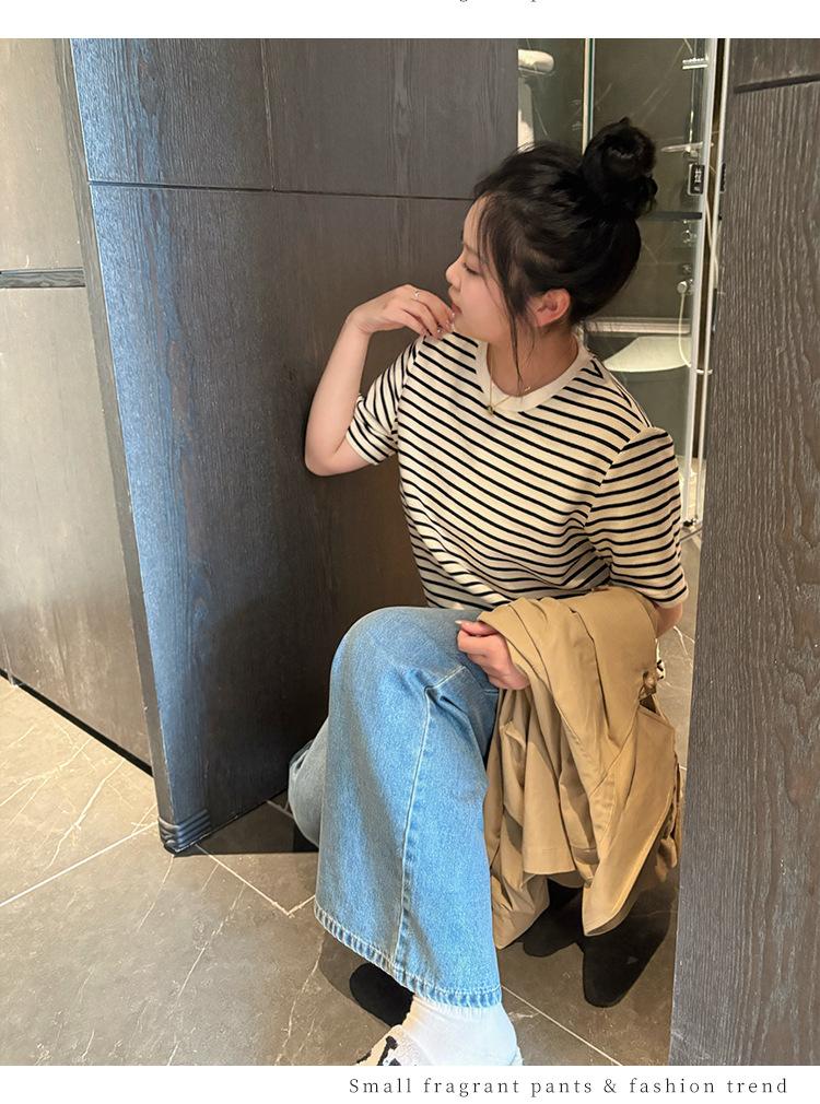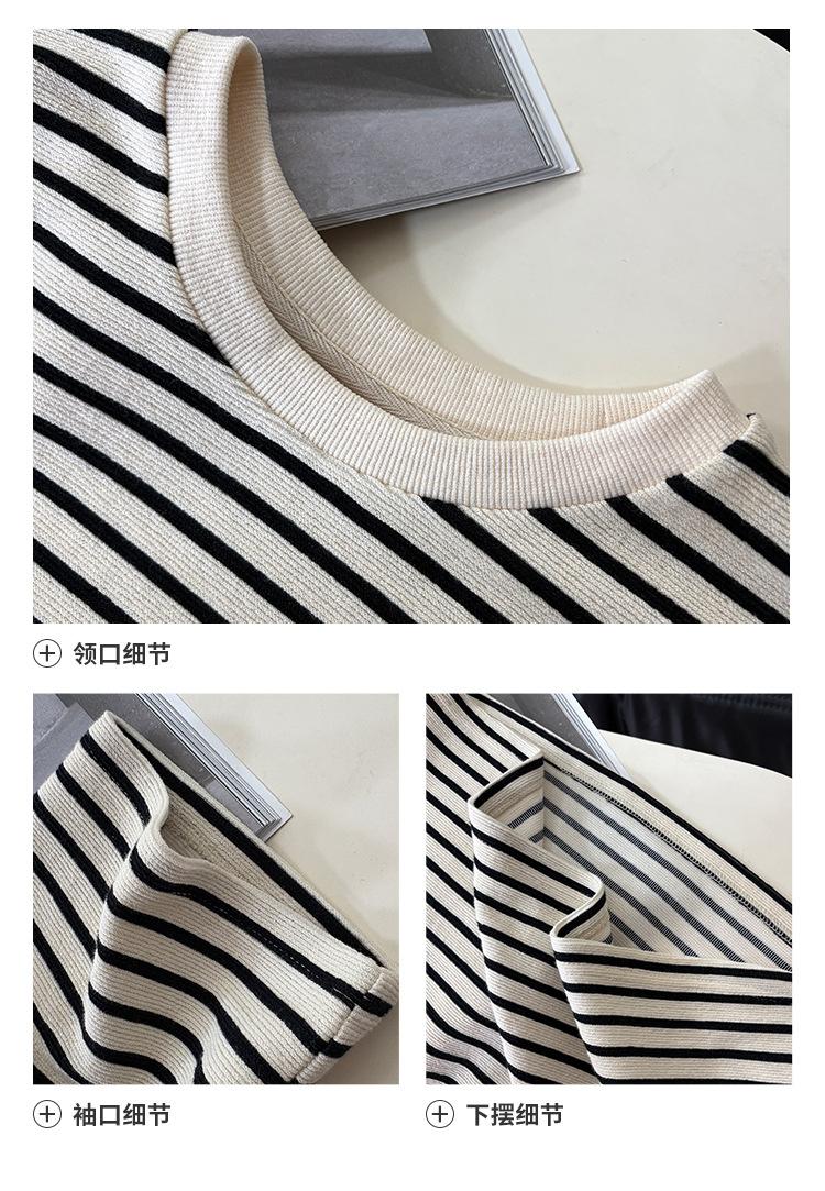 Camiseta de manga corta con cuello redondo y base pequeña para mujer, estilo vintage a rayas, nueva, de talla grande