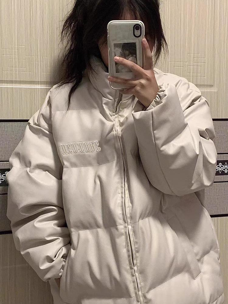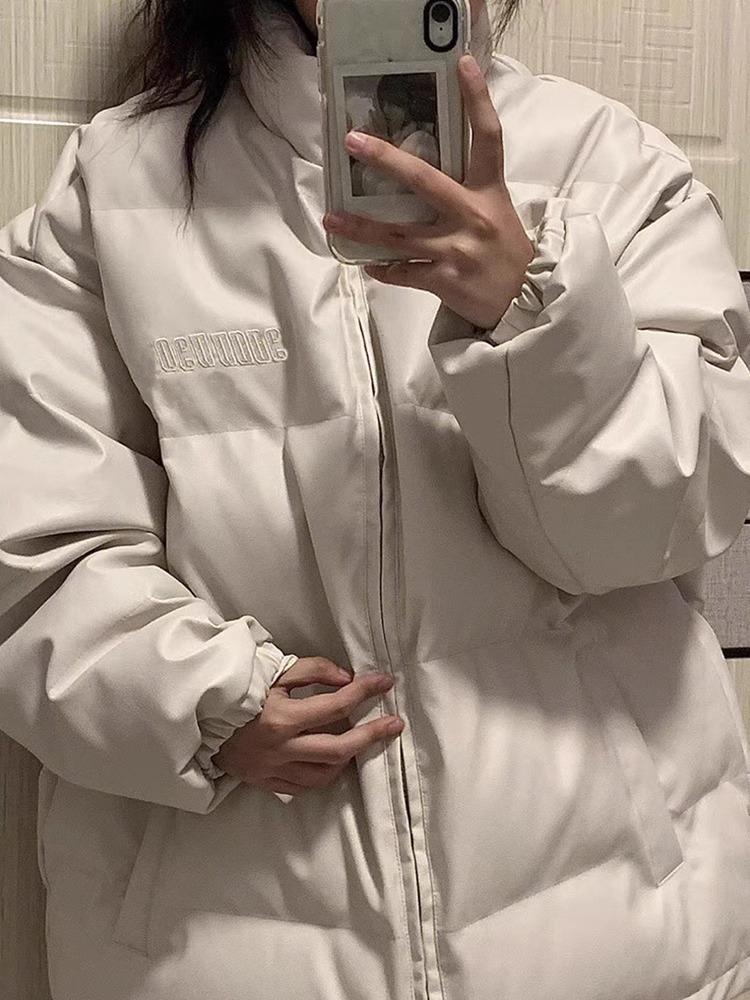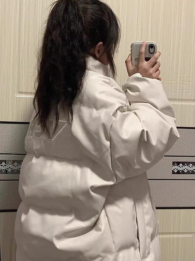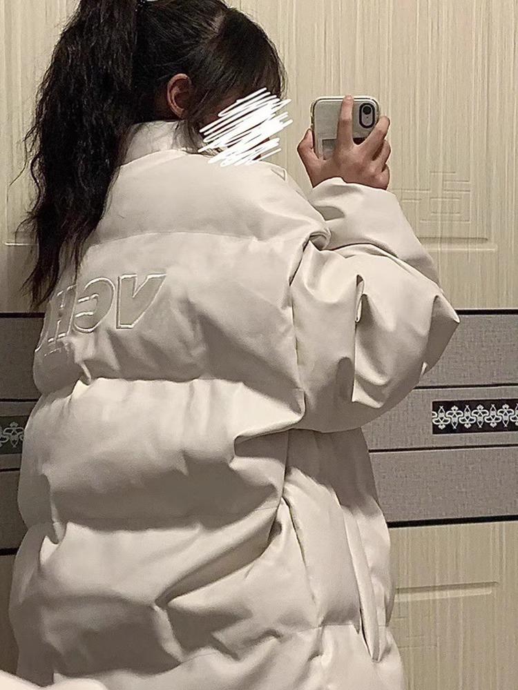 Abrigo acolchado de algodón con cuello estilo universitario, cálido, bordado con letras, para mujer, invierno, nuevo, vintage, holgado, para estudiantes.