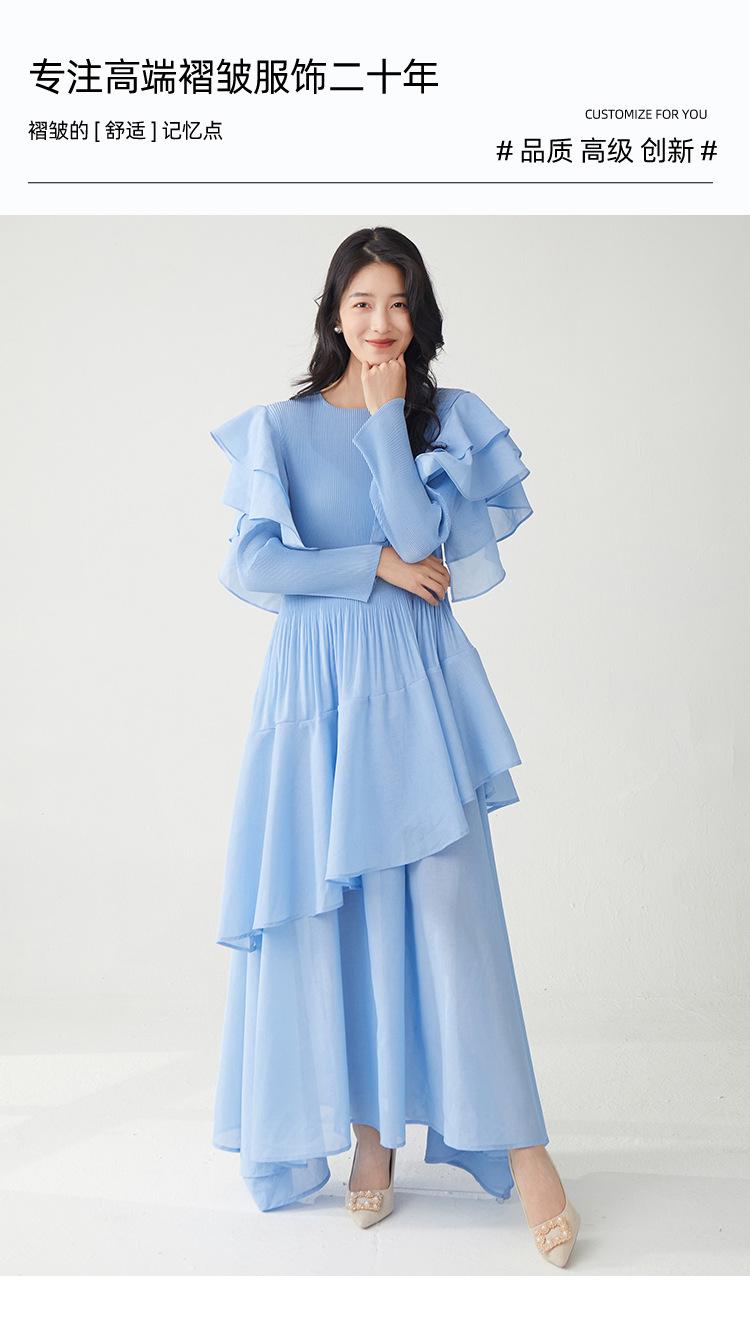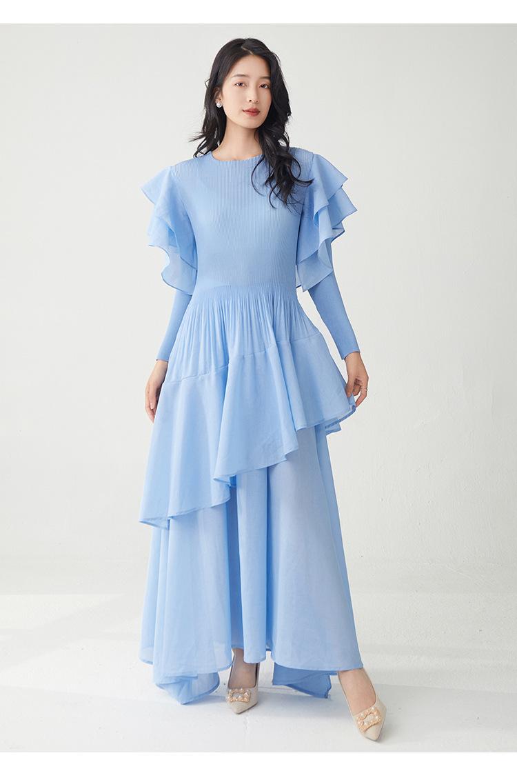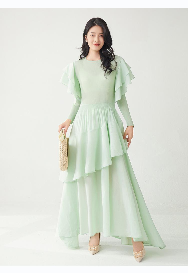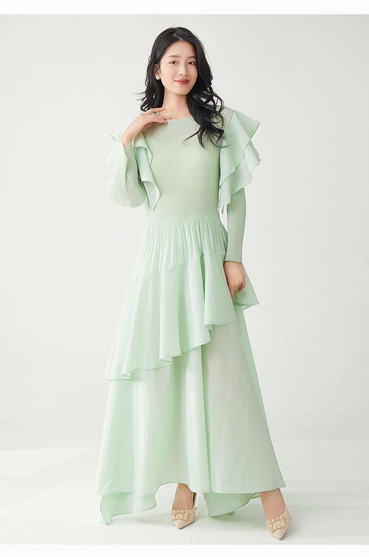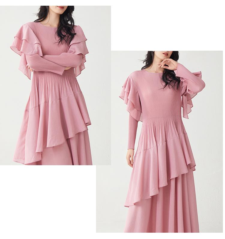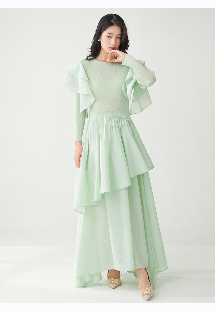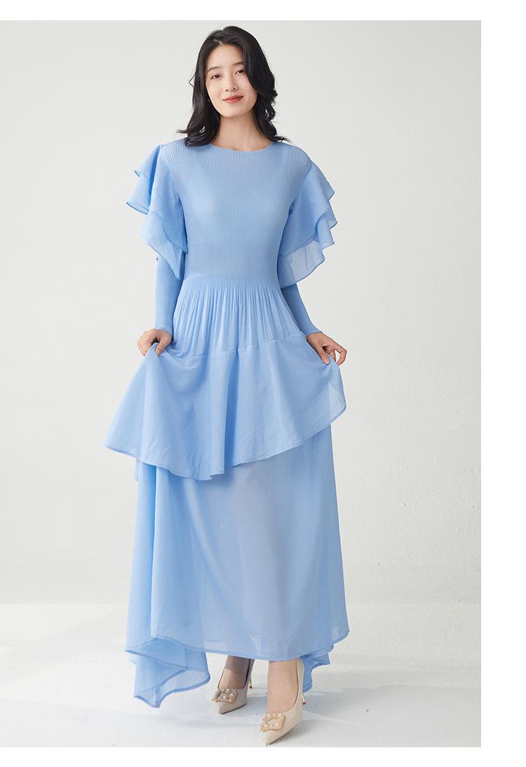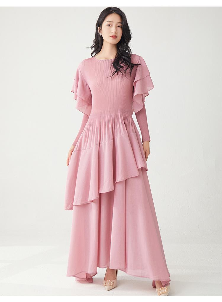 Vestido para Mujer de Talla Grande de Exportación Europea y Americana Vestido de Alta Gama Falda Larga Elegante Vestido Miyake Plisado para Mujer