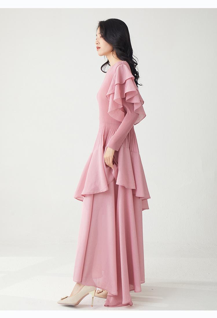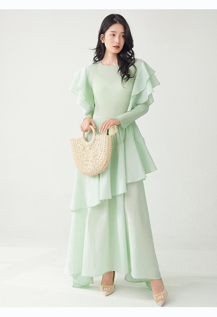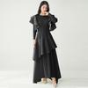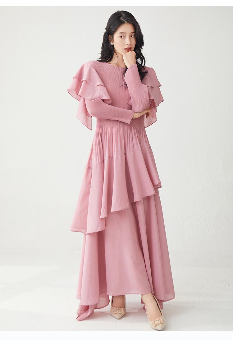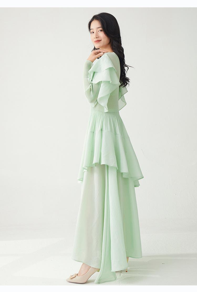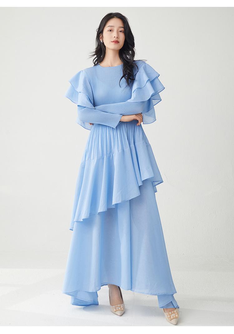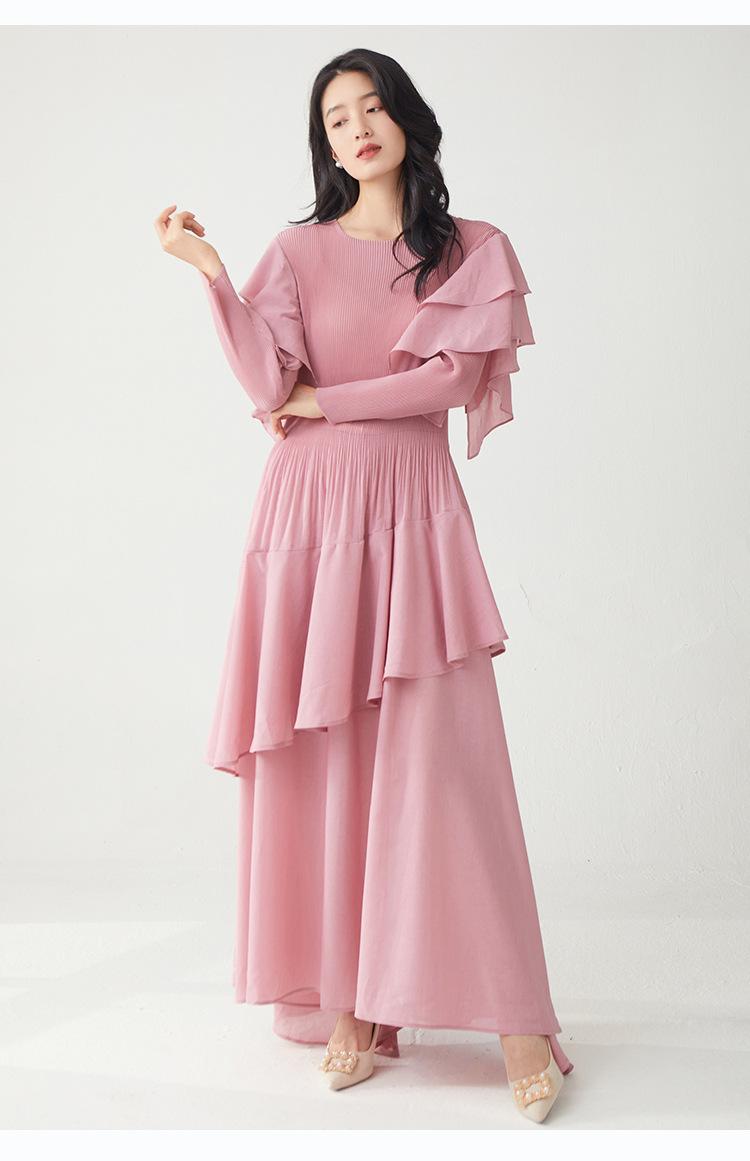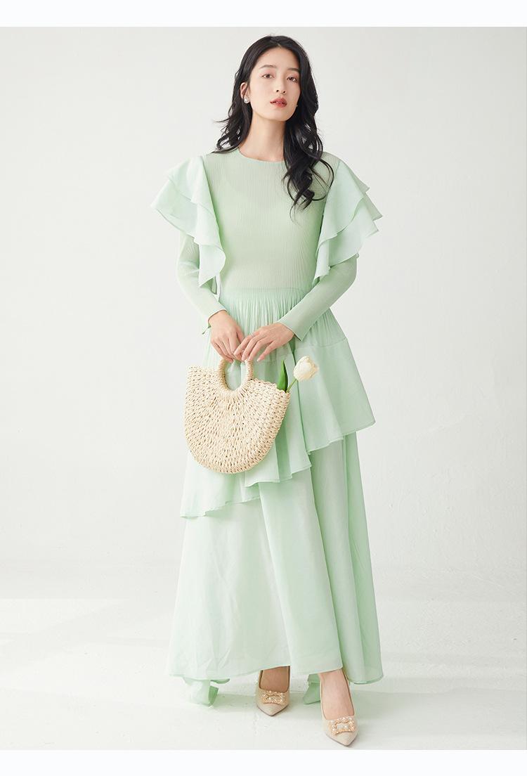 Vestido para Mujer de Talla Grande de Exportación Europea y Americana Vestido de Alta Gama Falda Larga Elegante Vestido Miyake Plisado para Mujer