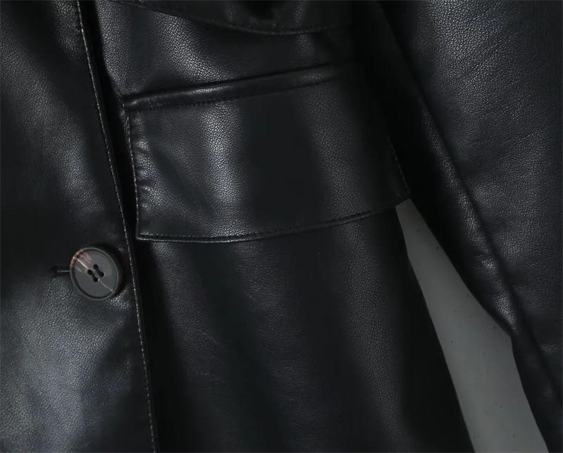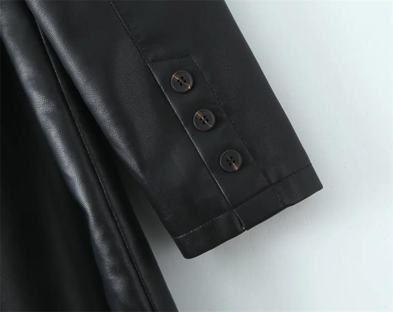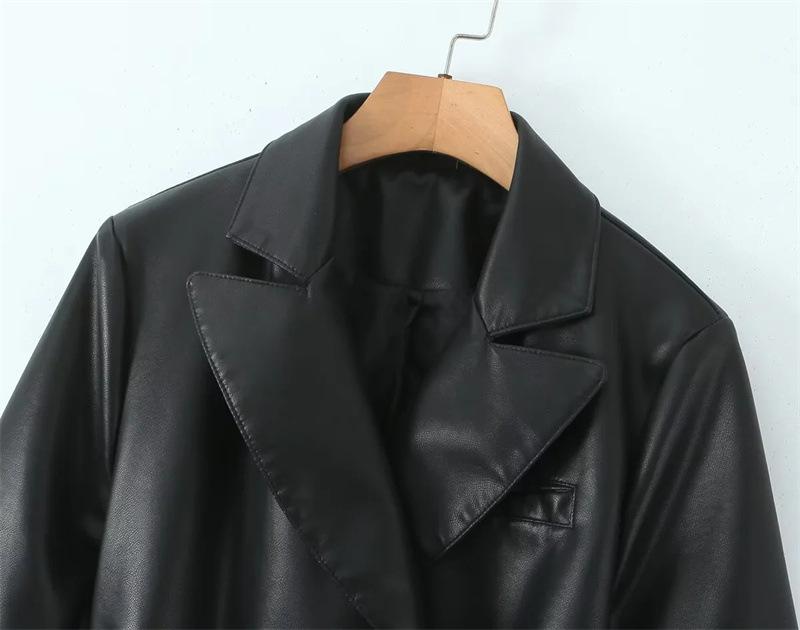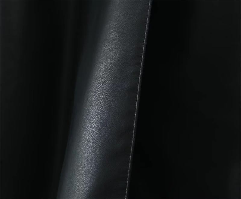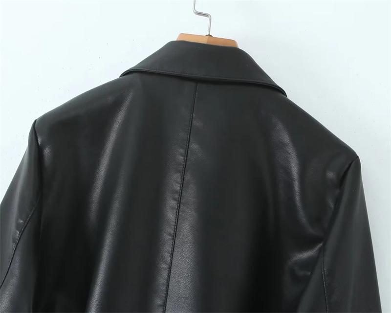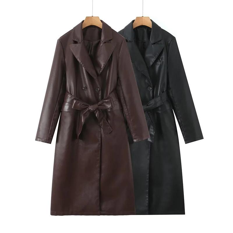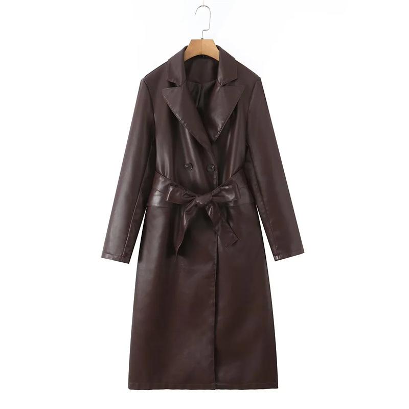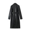 Abrigo de cuero para motocicleta retro estilo británico de primavera y otoño 2025, largo medio con cinturón en la cintura, abrigo adelgazante cortavientos para mujer