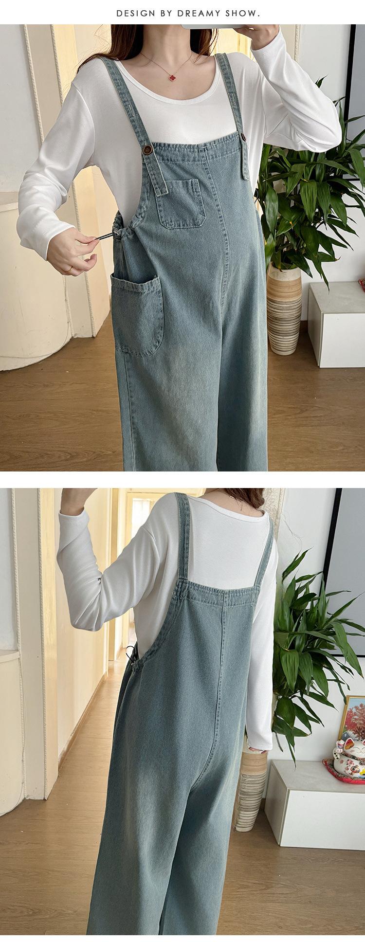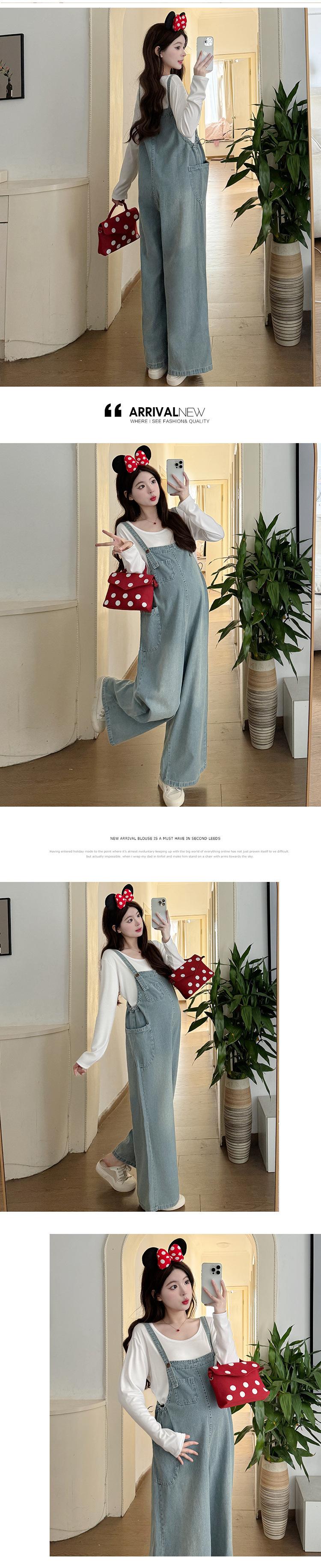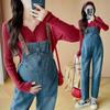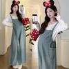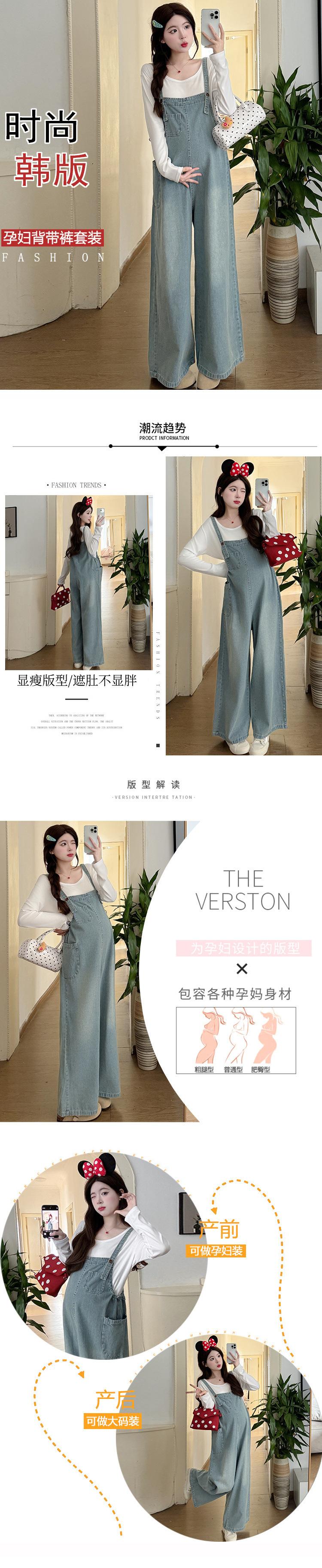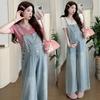 Foto real en stock 2025 primavera nueva ropa de maternidad coreana casual peto de mezclilla modal camiseta traje