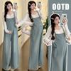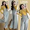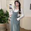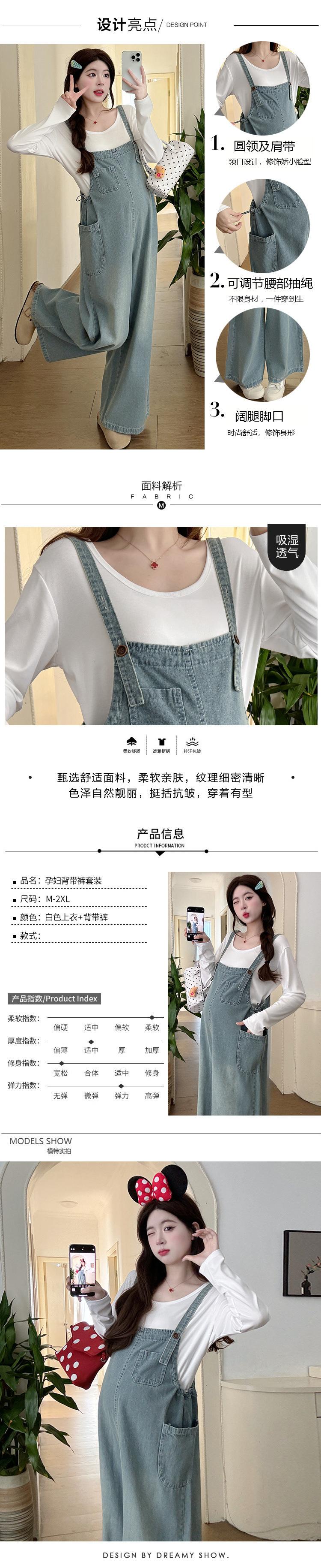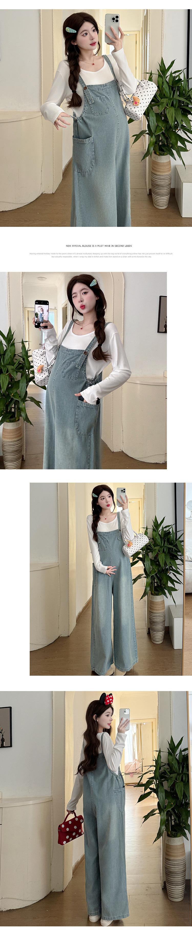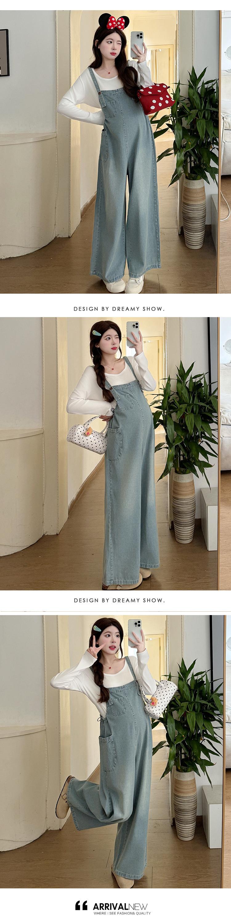 Foto real en stock 2025 primavera nueva ropa de maternidad coreana casual peto de mezclilla modal camiseta traje
