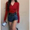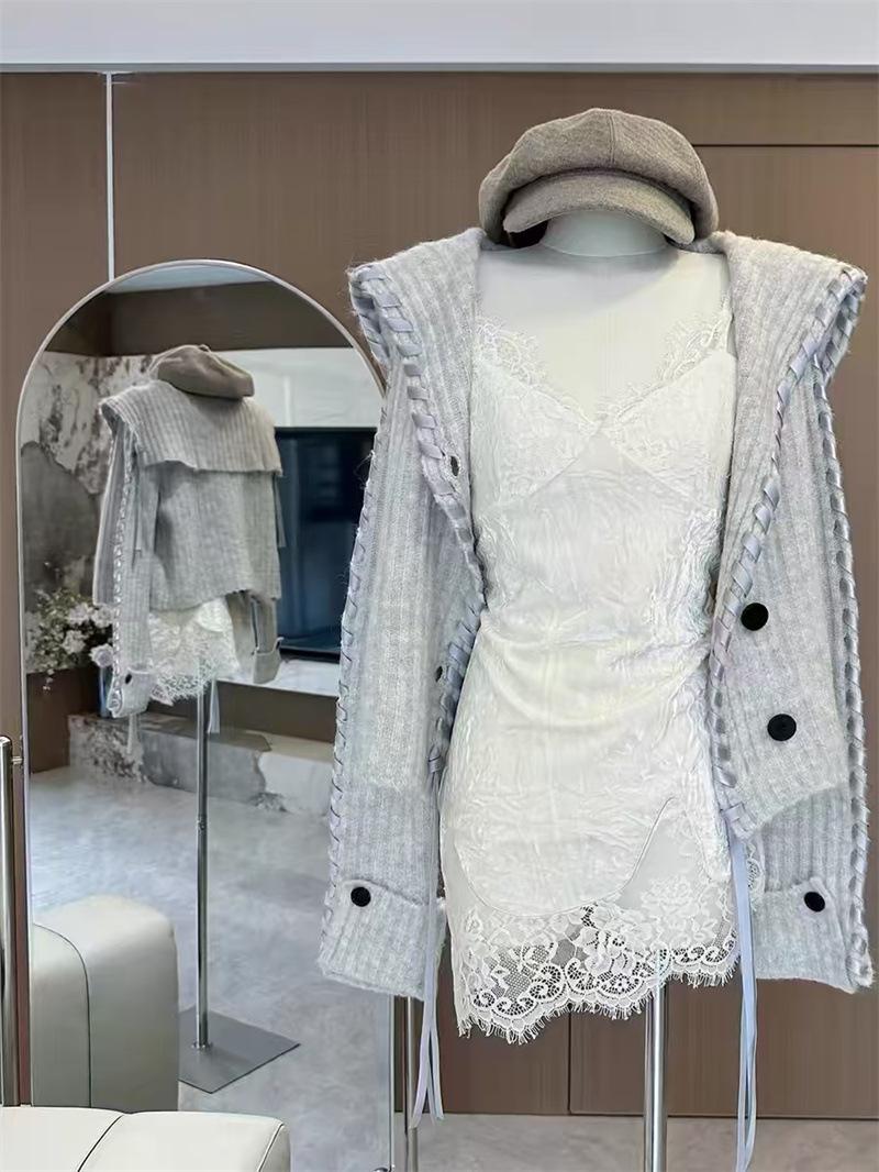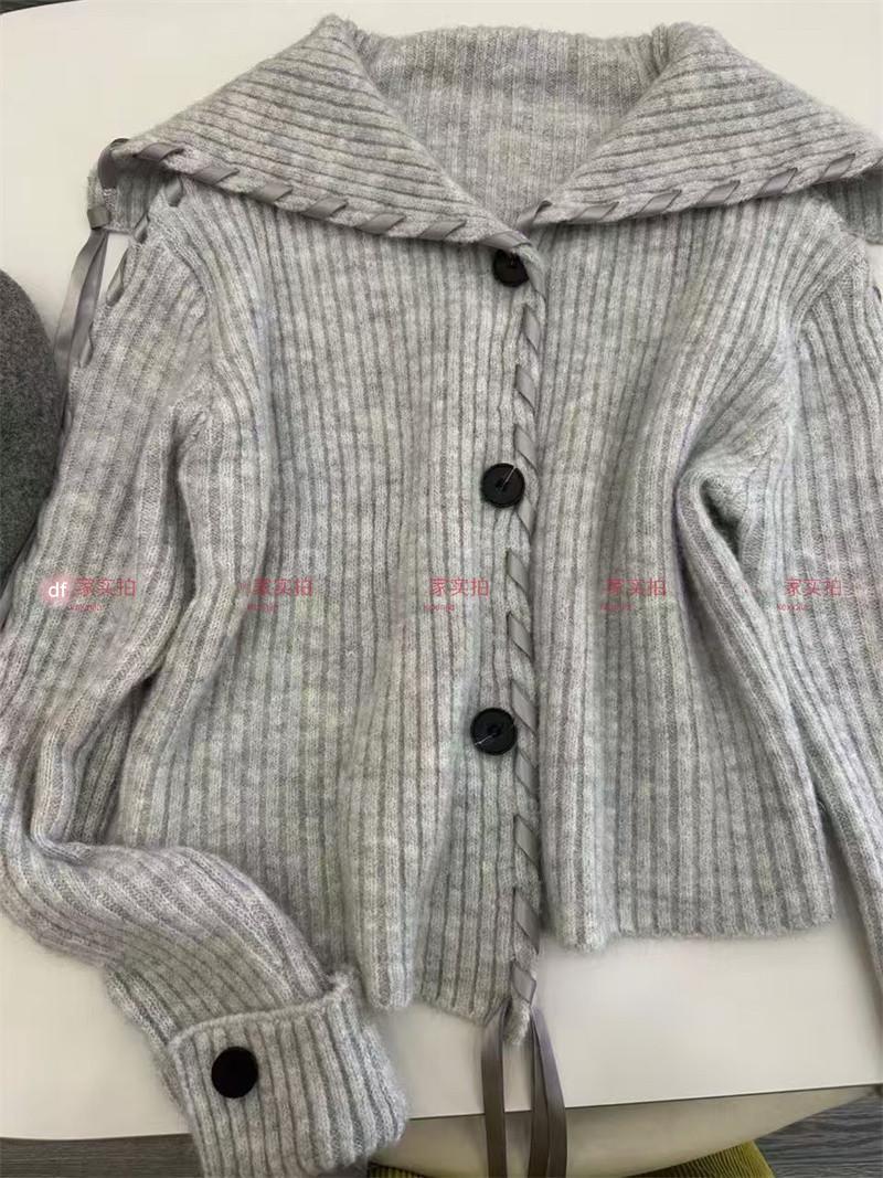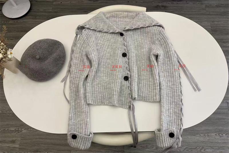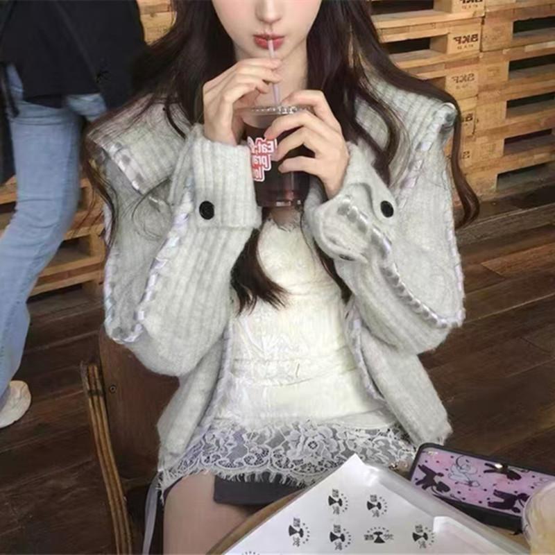 Estilo Americano Estilo Deseo Puro Tejido de Punto de Cinta Hecho a Mano para Mujer Nuevo Sentido del Diseño de Nicho Casual Color en Contraste Abrigo Suéter Corto