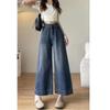 Pantalones vaqueros vintage lavados 2025 para mujer, holgados, adelgazantes, de pierna recta y ancha, pantalones casuales para mujer, pantalones largos azules