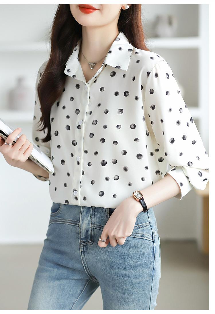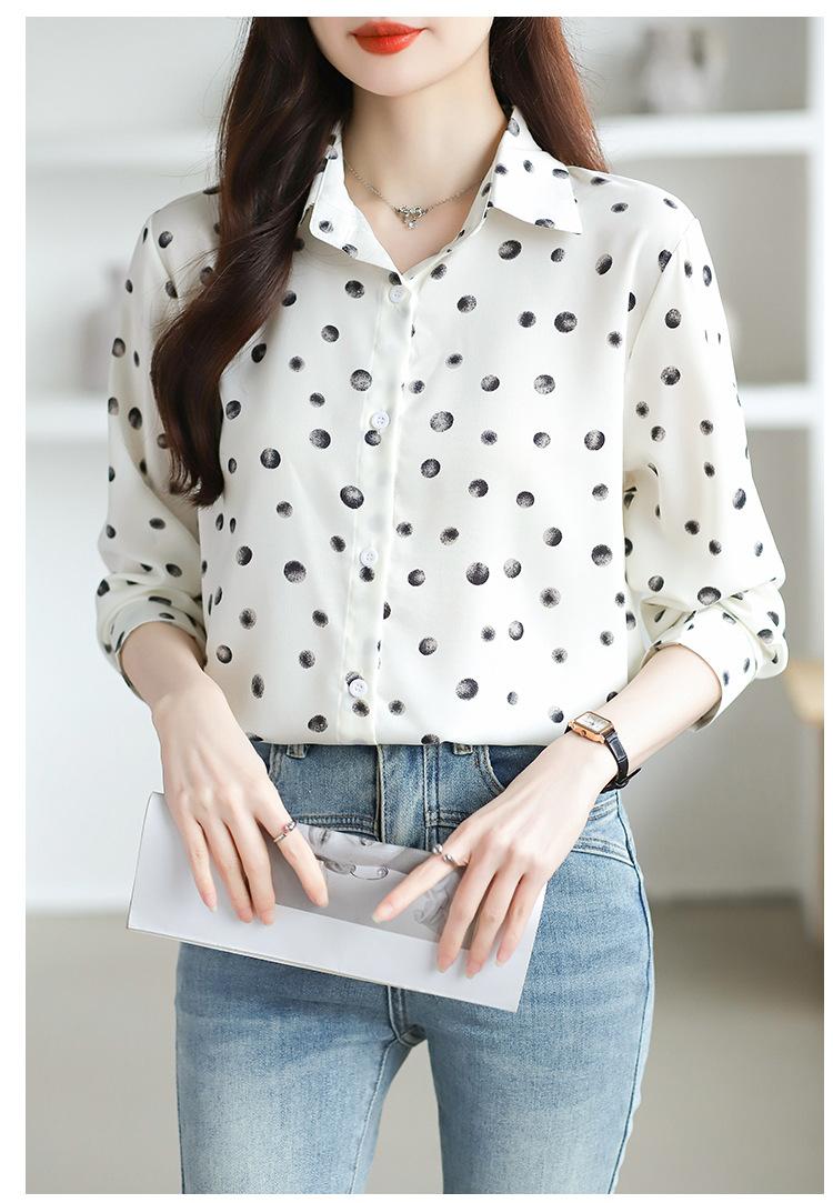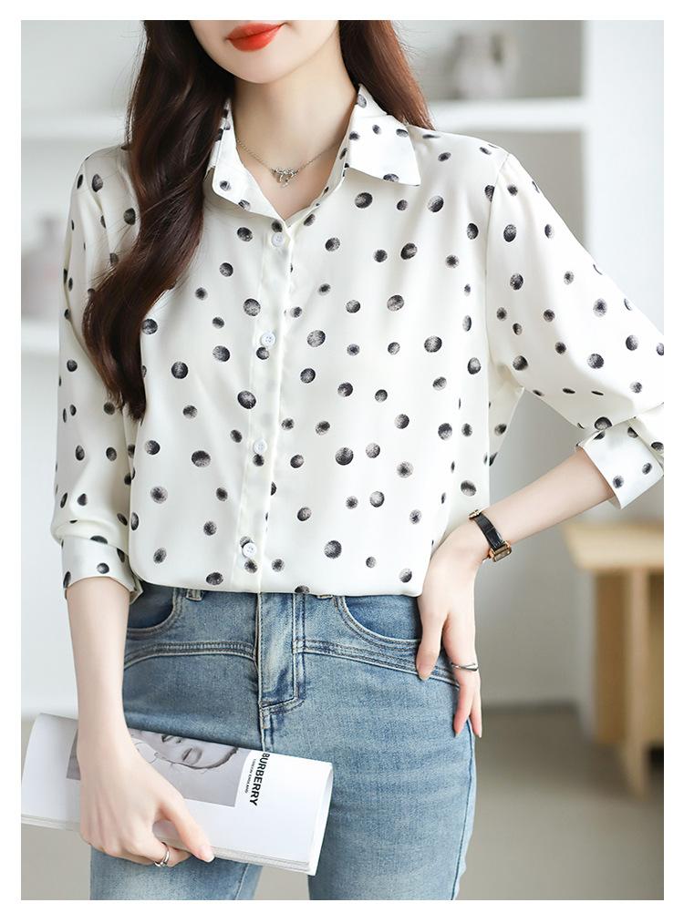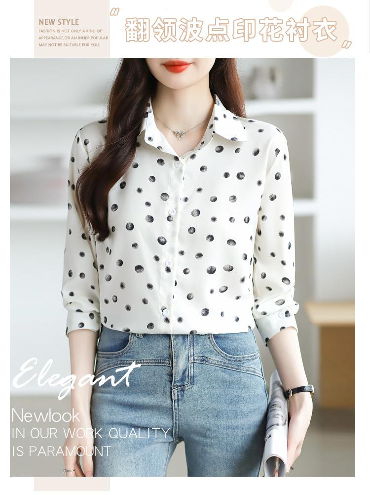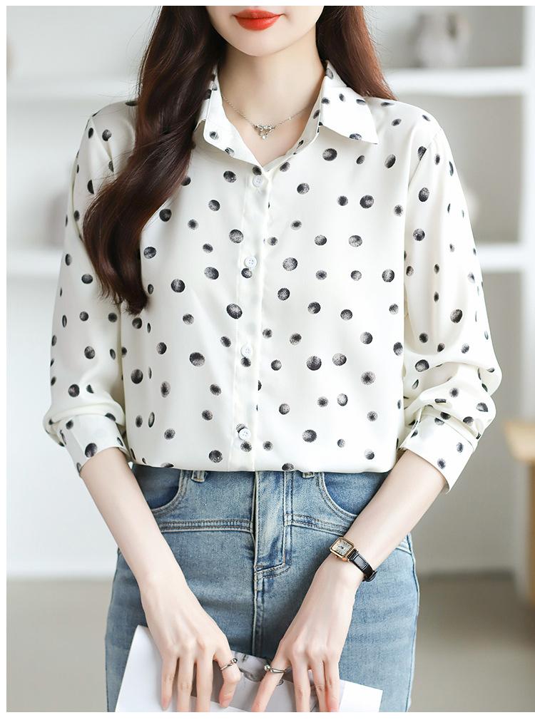 Camisa tipo polo de gasa con cuello de solapa y manga larga para mujer, estilo occidental, estilo Hong Kong, primavera de 2025