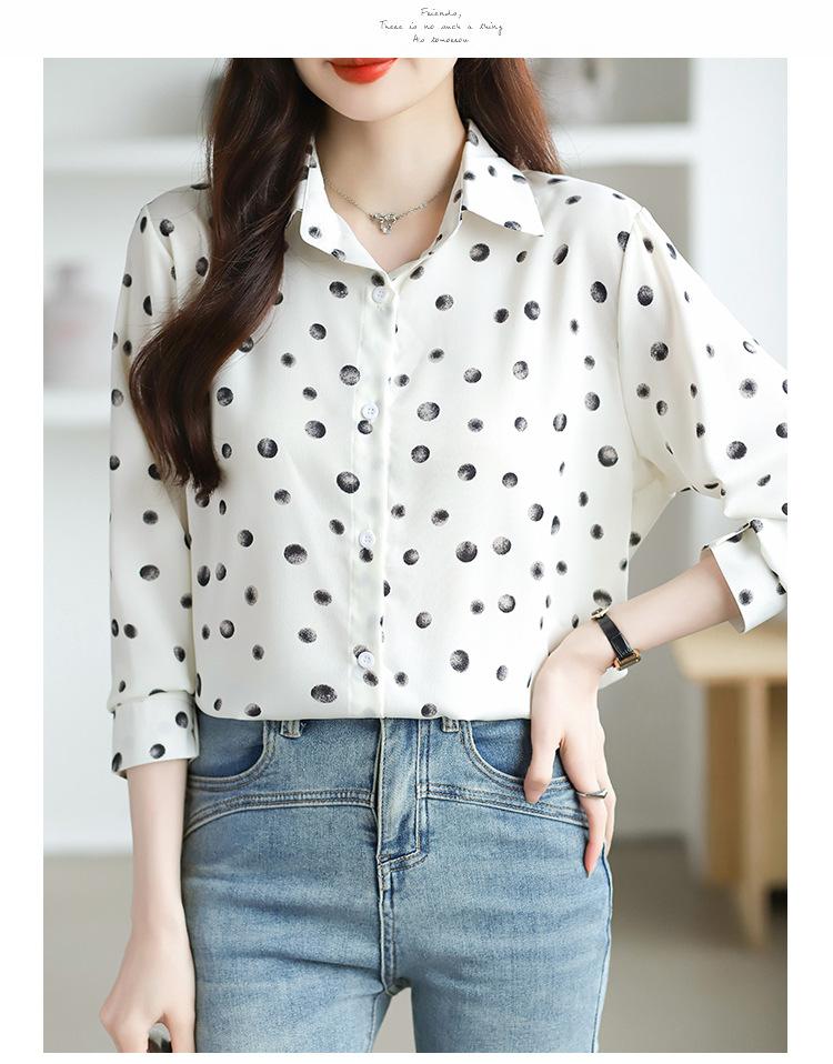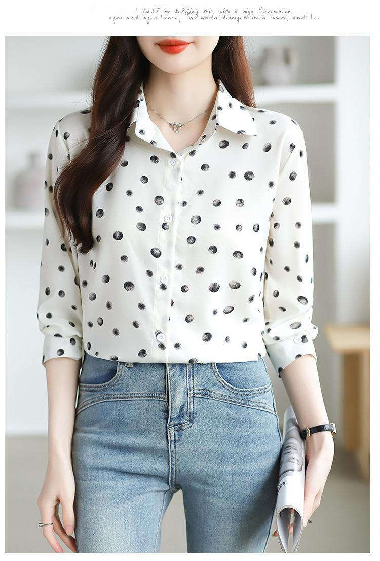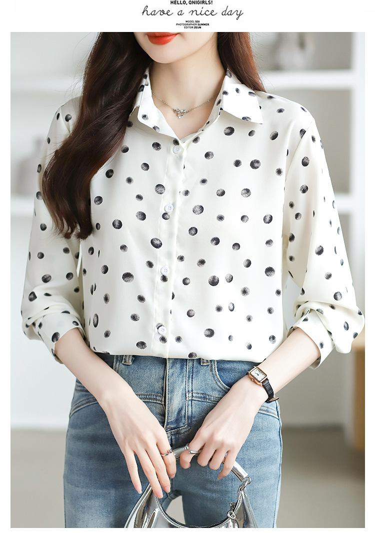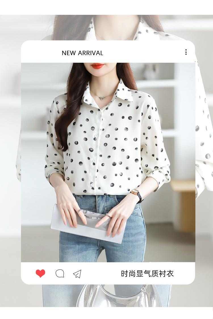 Camisa tipo polo de gasa con cuello de solapa y manga larga para mujer, estilo occidental, estilo Hong Kong, primavera de 2025