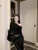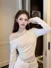 Camiseta de manga larga con hombros descubiertos y costuras de encaje, estilo sexy y adelgazante, para chica sexy de otoño