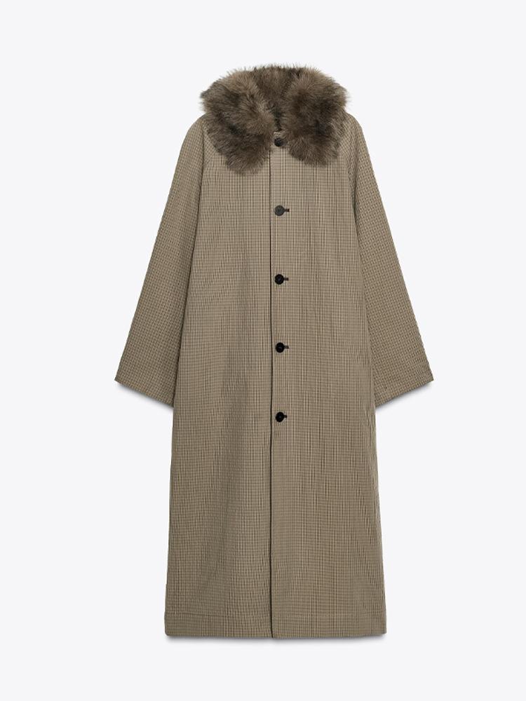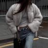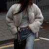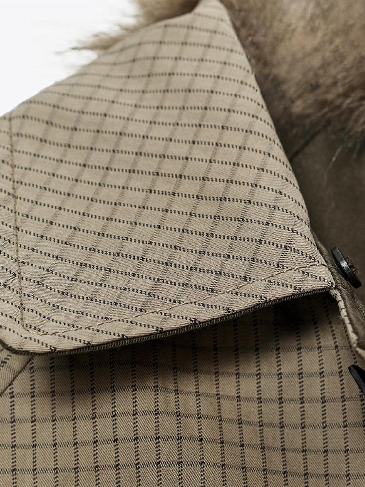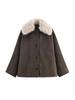 Transfronterizo 2025 Primavera/Verano Nuevo Abrigo Reversible Casual Versátil con Cuello de Piel Desmontable para Mujer