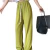 Pantalones anchos Sandy Leaf para mujer, de seda helada, con cordón, plisados, de cintura alta, rectos, holgados, informales, adelgazantes, 2025