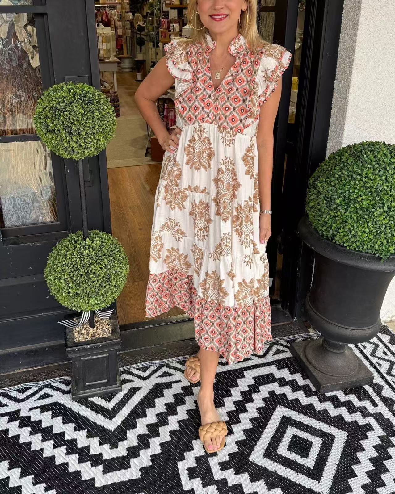 Vestido con dobladillo irregular estampado de talla grande, nueva moda de primavera y verano de Amazon Independent Station para Europa y Estados Unidos, 2025